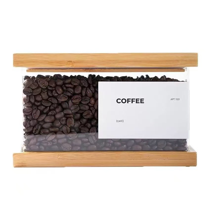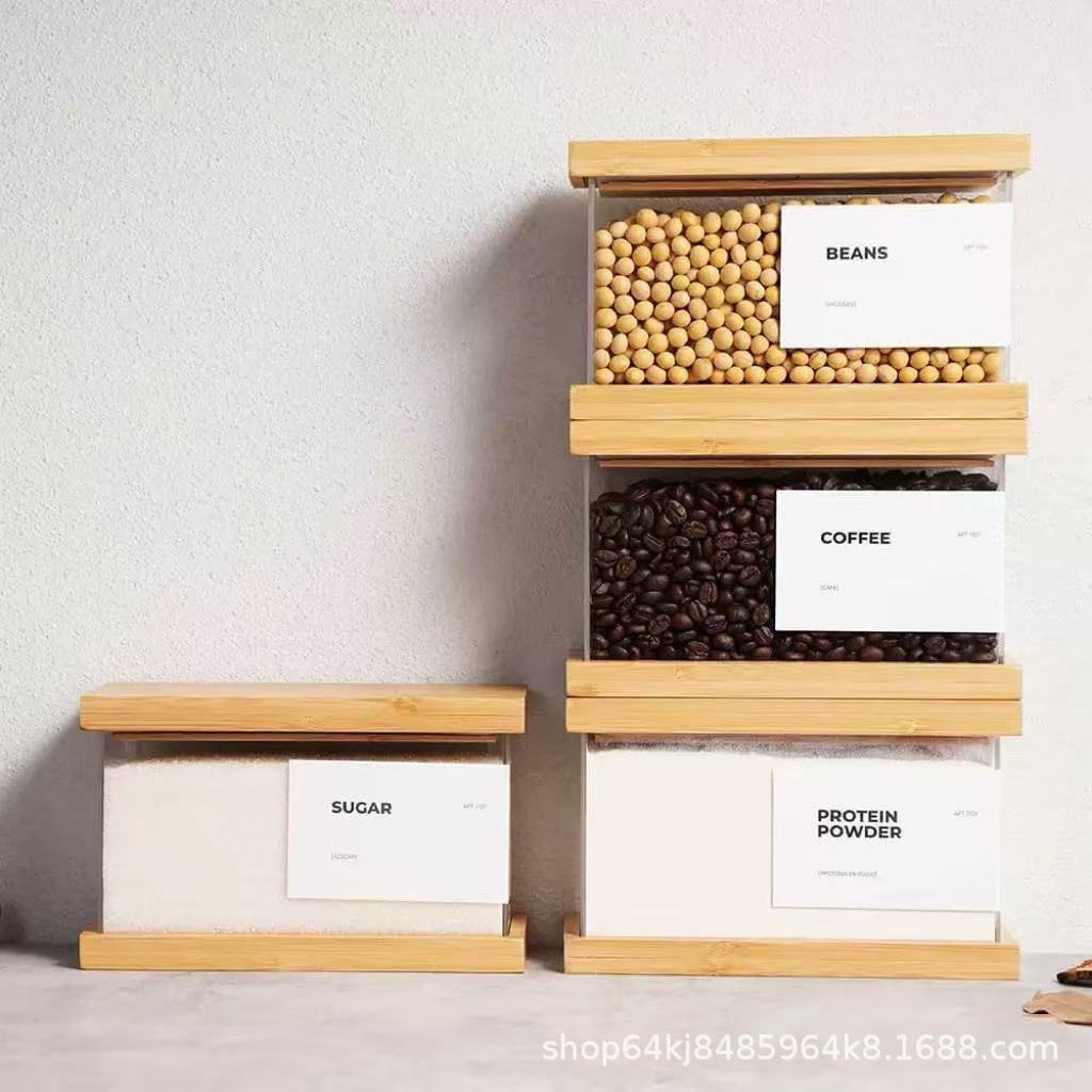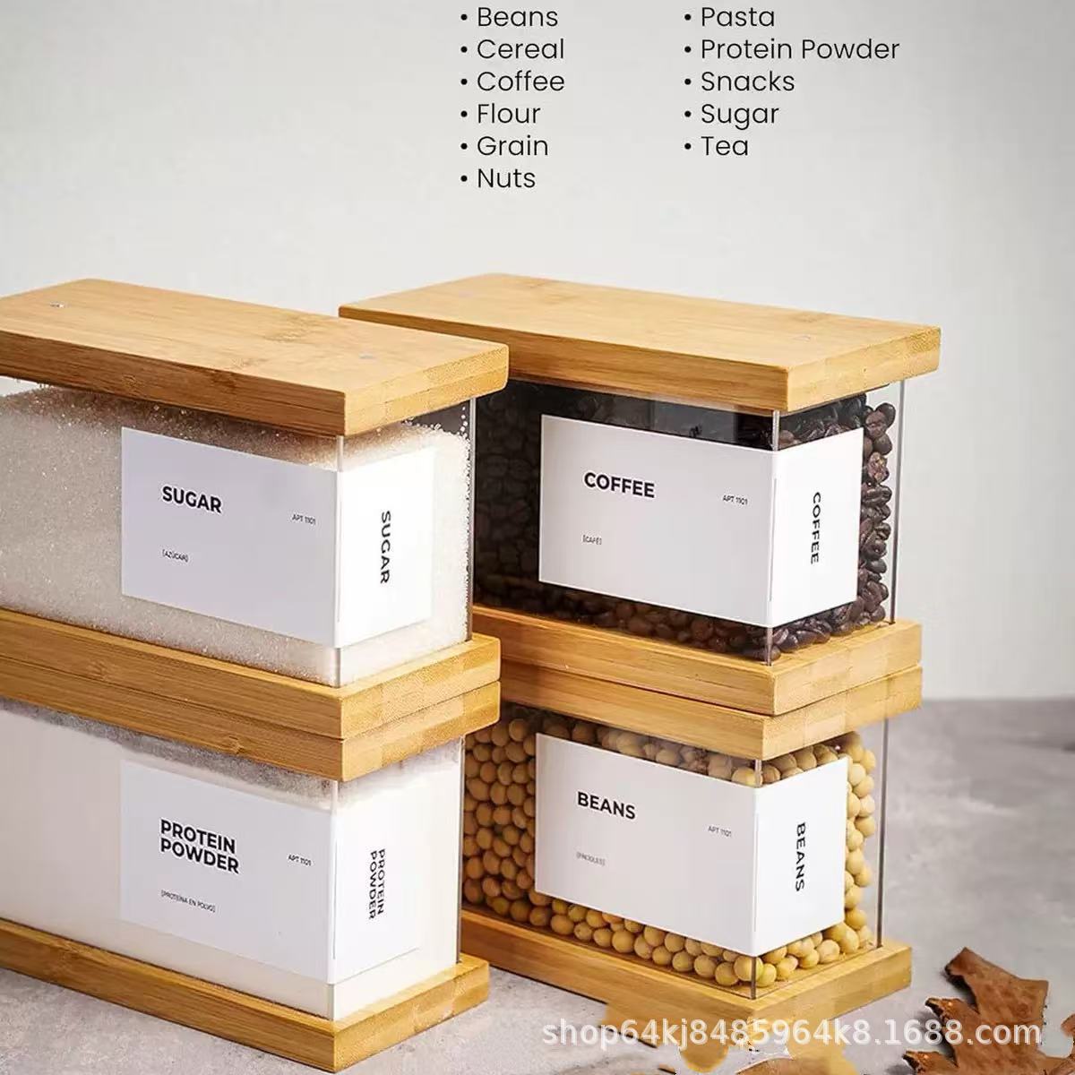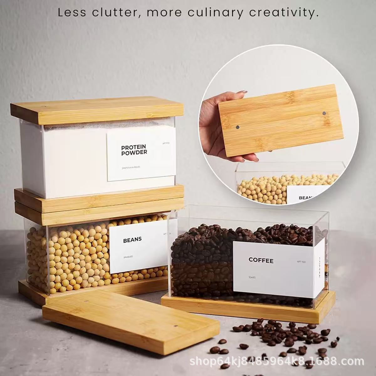 Бамбуковый прозрачный акриловый контейнер для хранения зерна, деревянный кухонный контейнер для распределения зерна, квадратный контейнер для хранения зерна