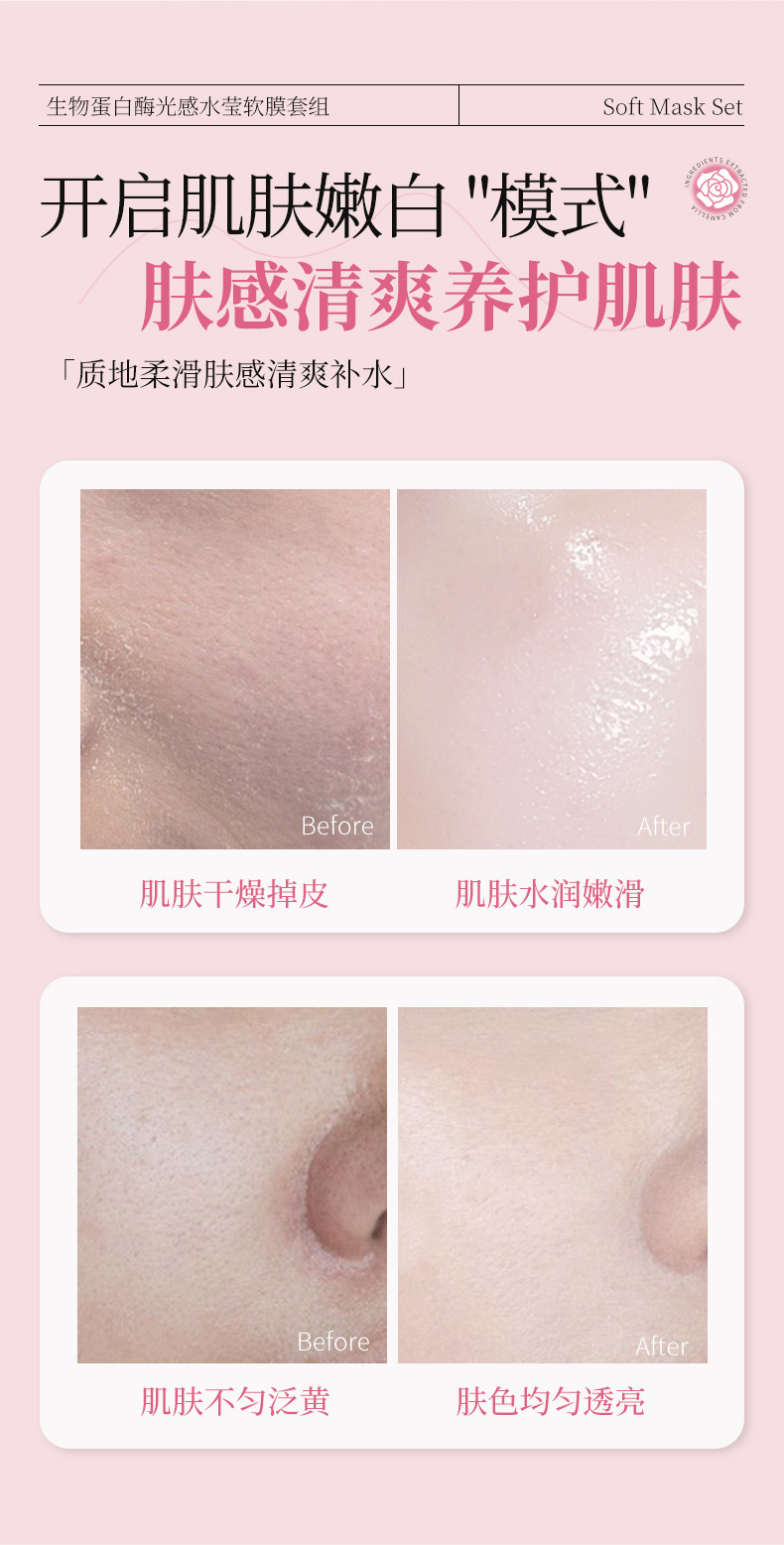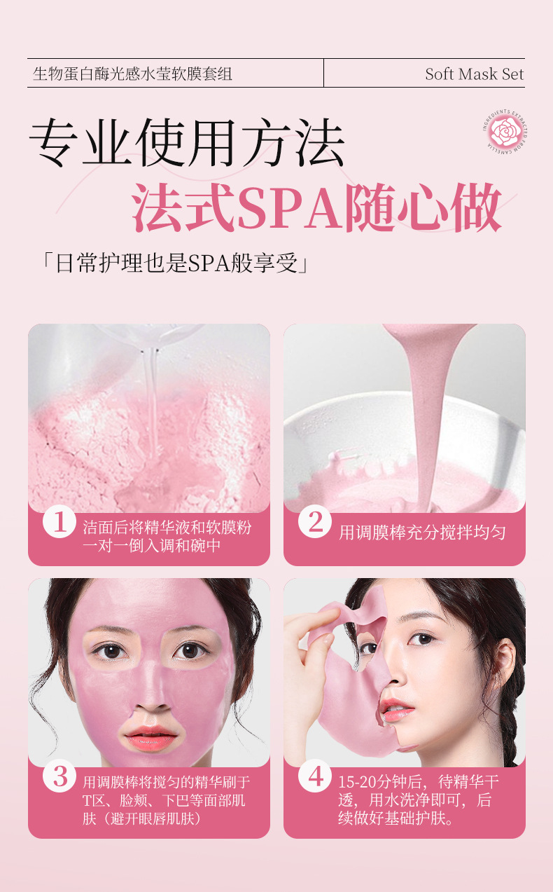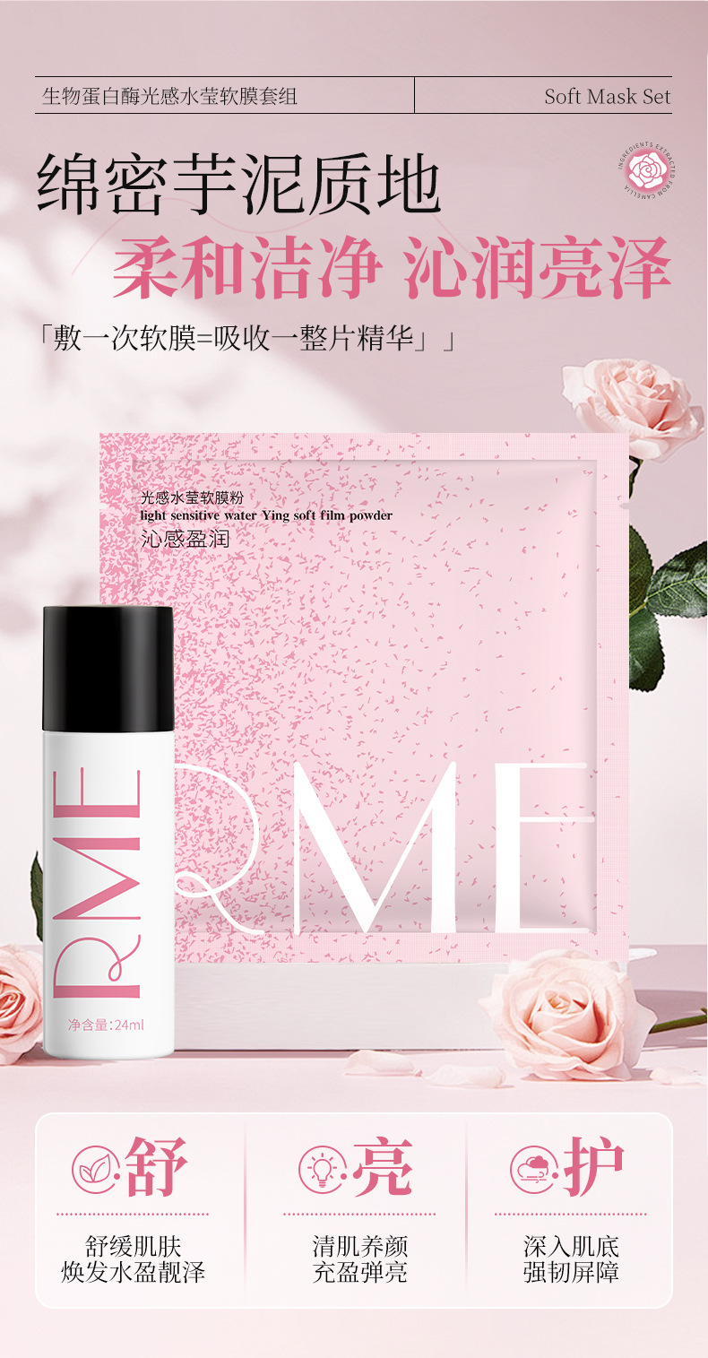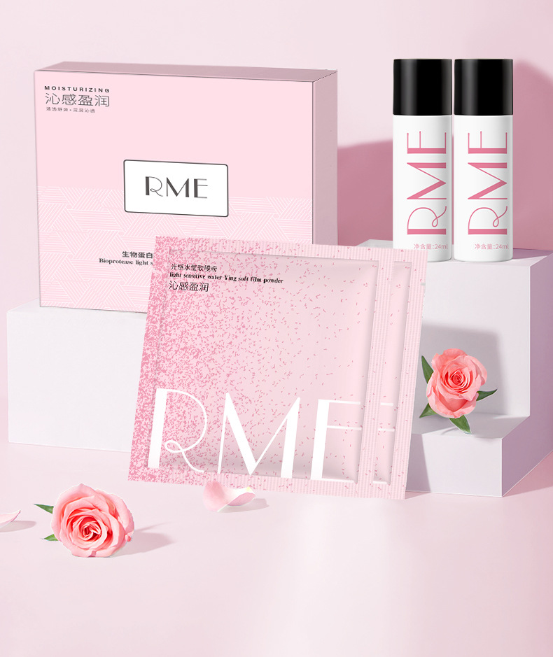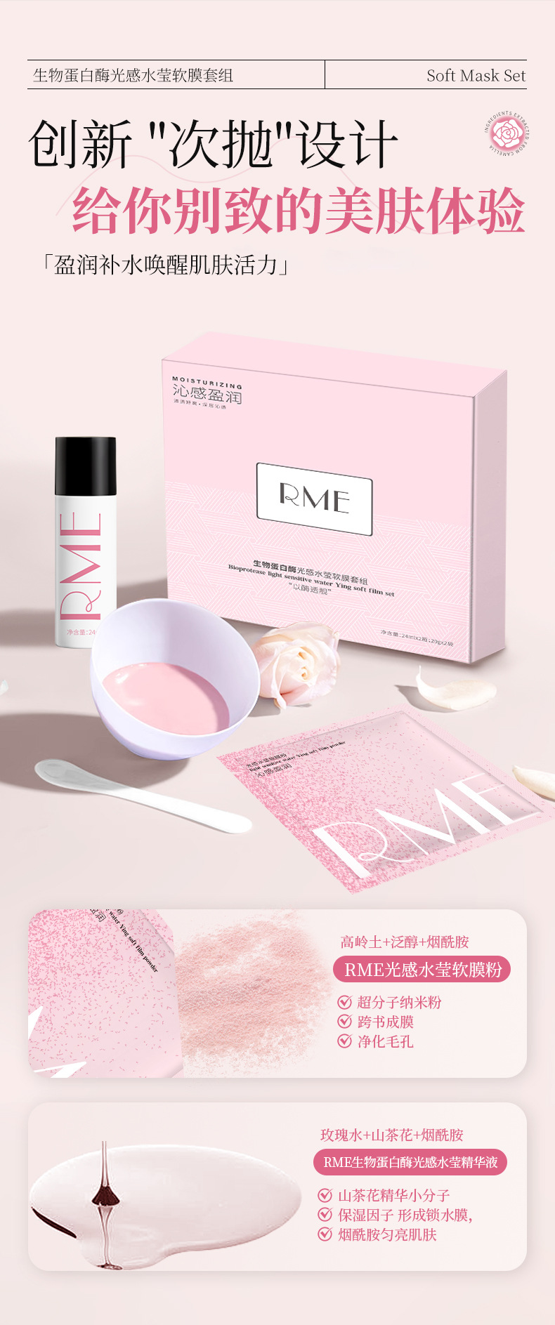Набор мягких масок RME с биологической протеазой, светочувствительной, светящейся в воде, 24 мл x 2 бутылки/20 г x 2 пакета; Набор мягких масок + миска для маски
