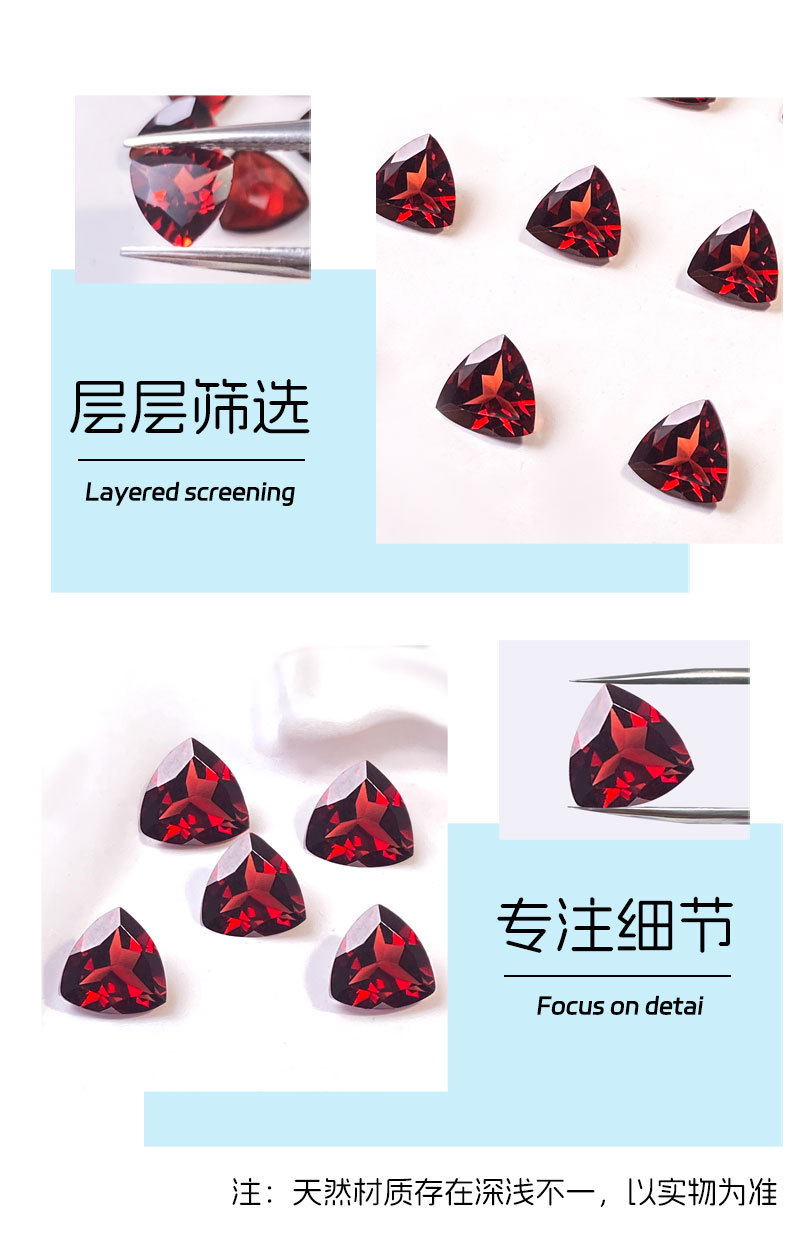 Серьги-гвоздики с натуральным гранатом кабошоном, треугольные, инкрустированные, с драгоценными камнями, напрямую от производителя.