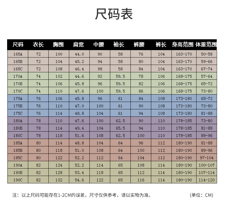 165А (50-58kg ); 165Б (59-66kg ); 165С (67-74kg ); 170А (57-64kg ); 170Б (65-72kg ); 170С (73-80kg ); 175А (65-72kg ); 175Б (73-80kg ); 175С (81-88kg ); 180А (73-80kg ); 180Б ( 81-88kg ); 180С (89-96kg ); 185А (81-88kg ); 185Б (89-96kg ); 185С (97-104kg ); 190А (100-107kg ); 190Б (107-114kg ); 190С (114-120kg )