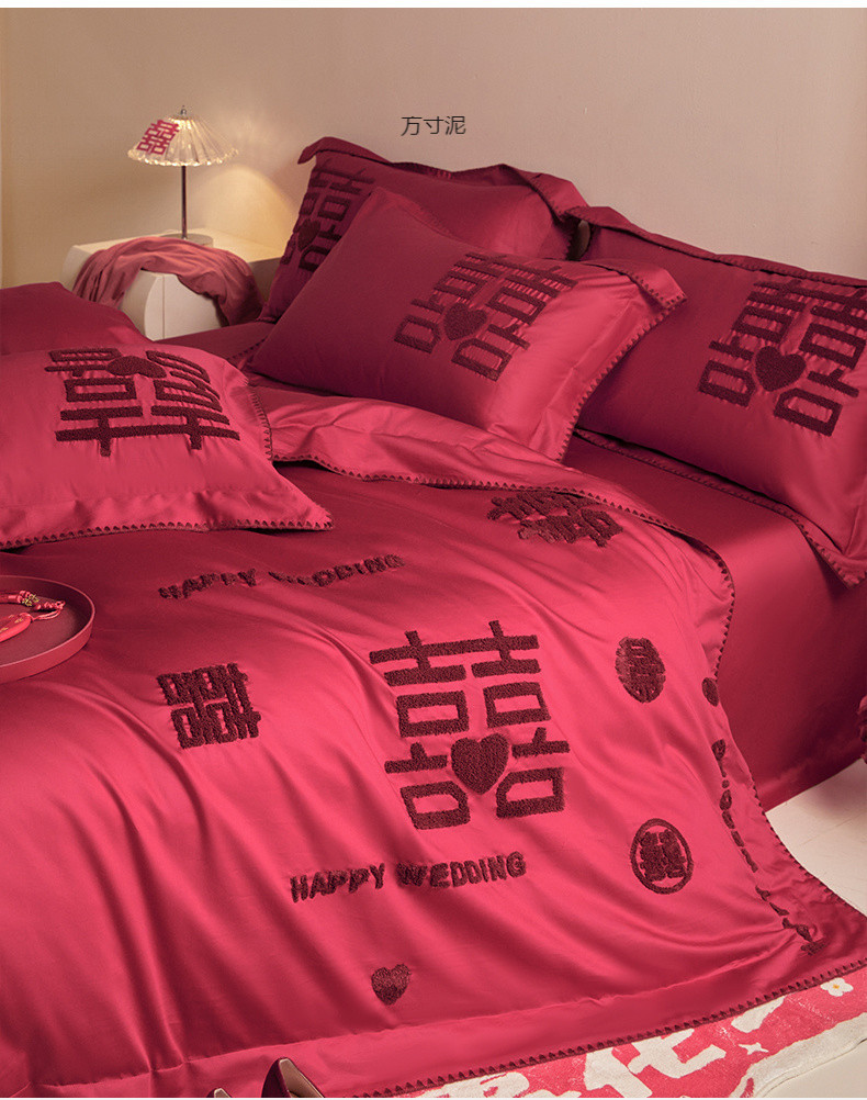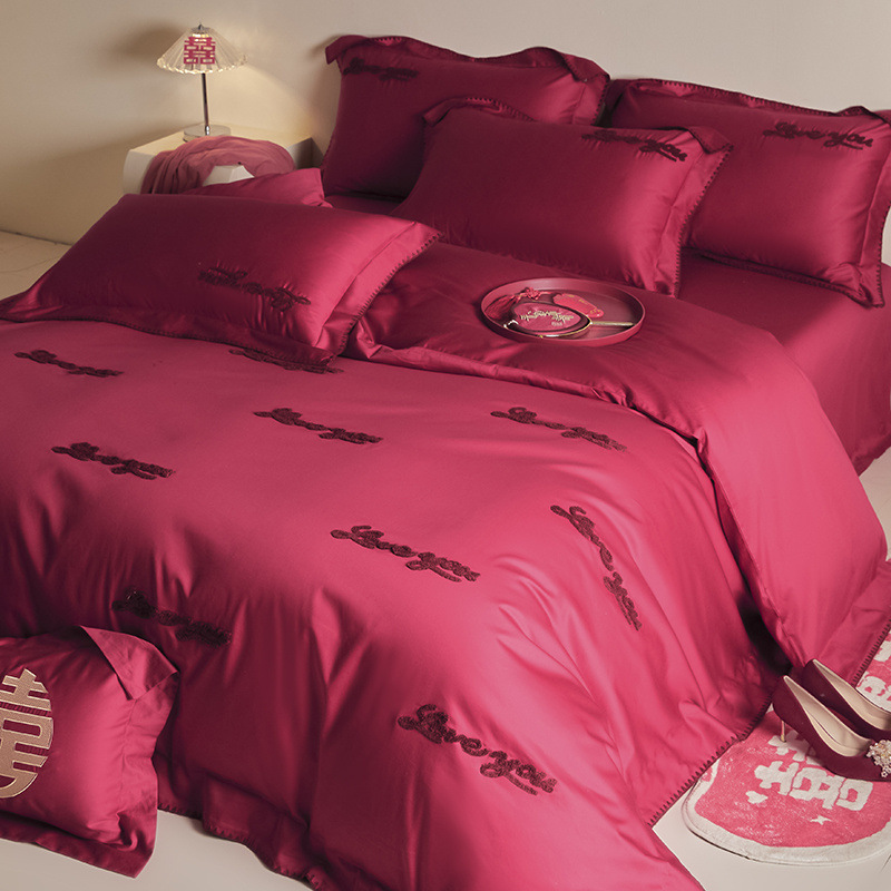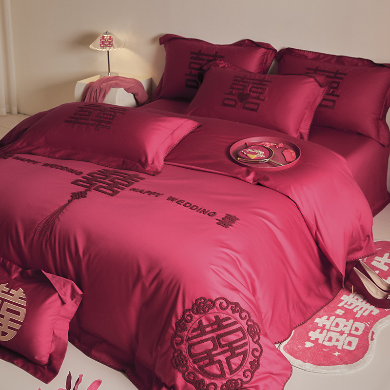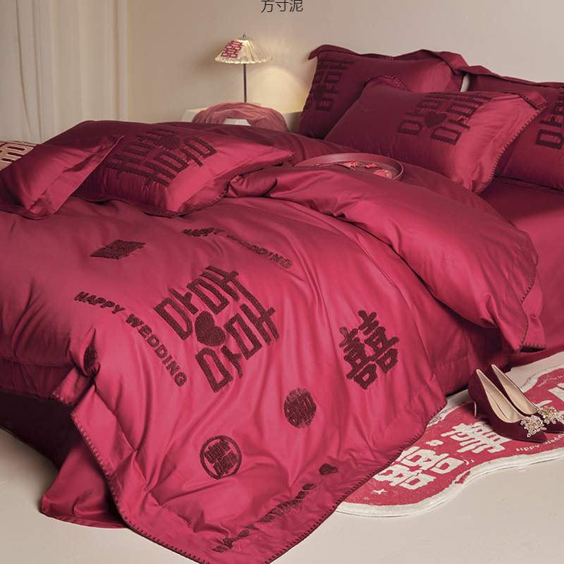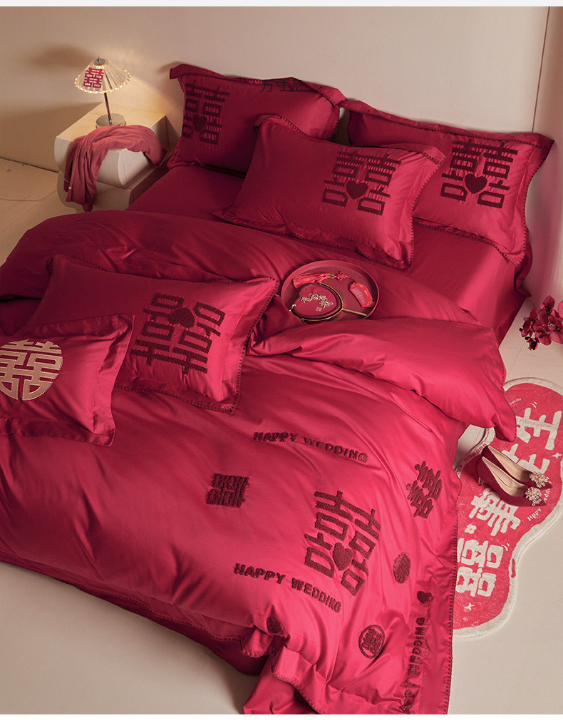 Новый китайский стиль свадьбы двойное счастье 100s набор из четырех частей красный двойное счастье одеяло простыни свадебные постельные принадлежности для внешней торговли оптом