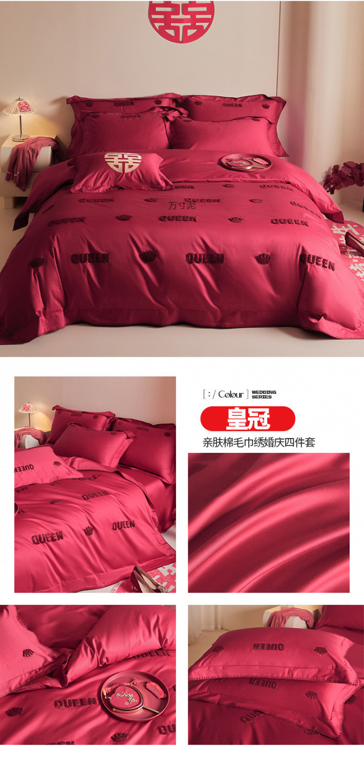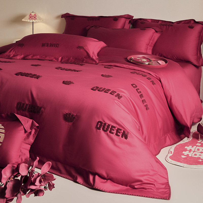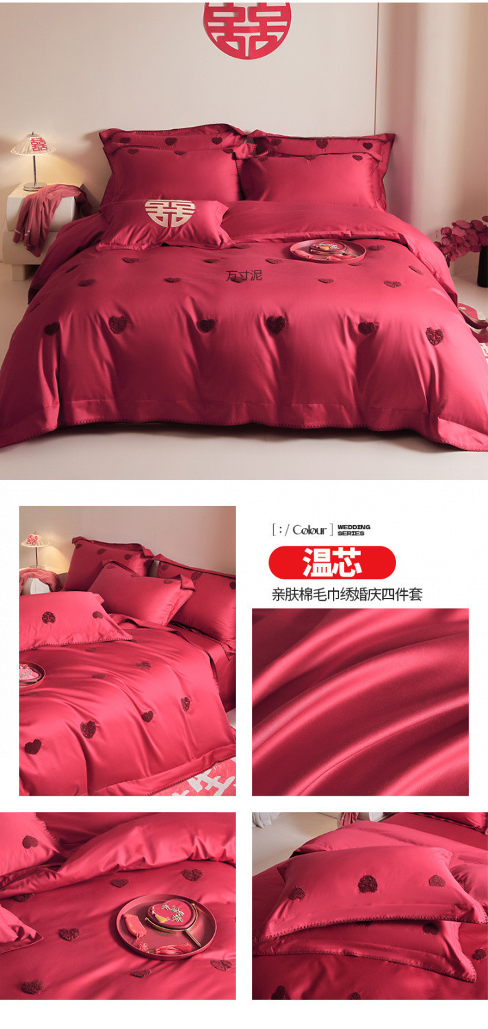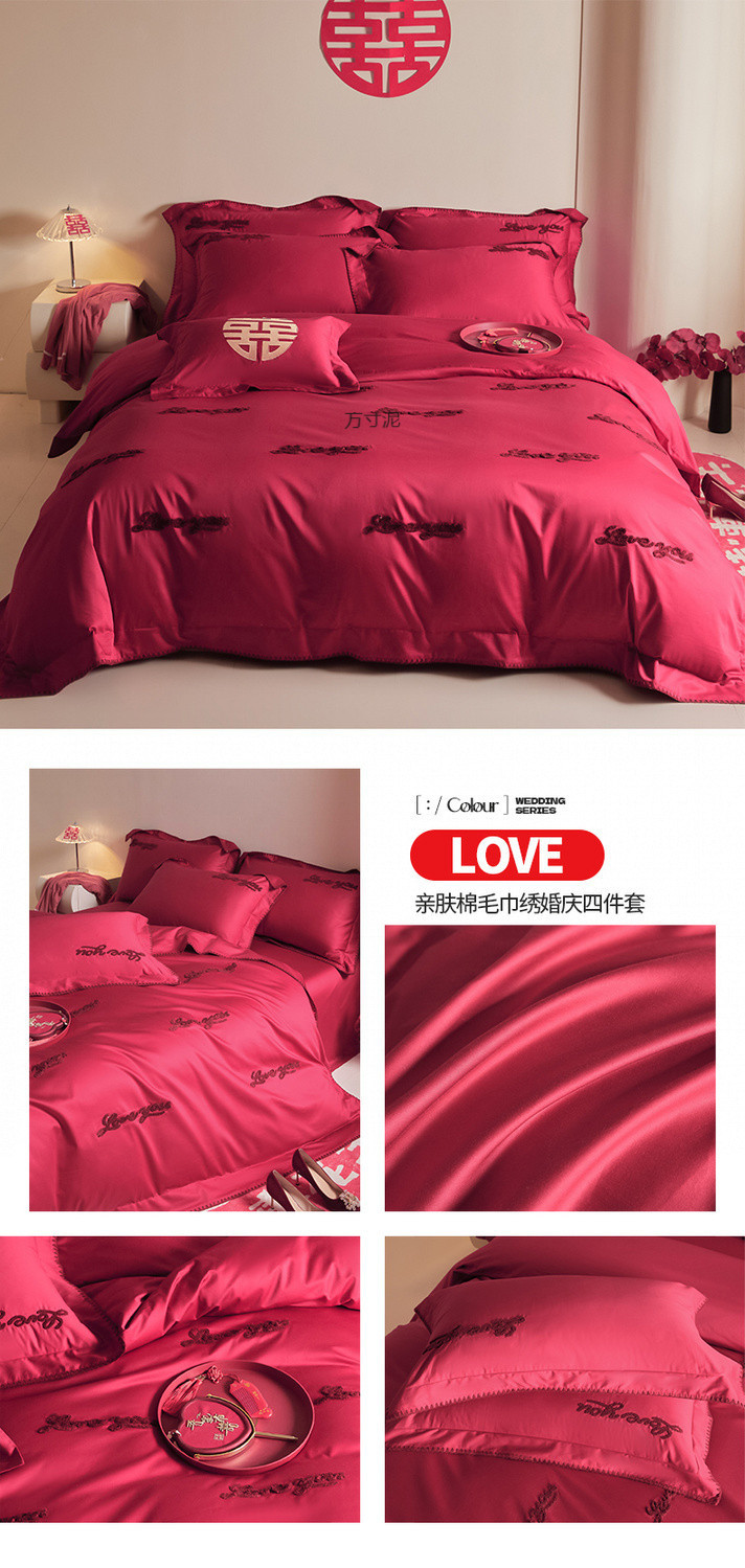 Новый китайский стиль свадьбы двойное счастье 100s набор из четырех частей красный двойное счастье одеяло простыни свадебные постельные принадлежности для внешней торговли оптом