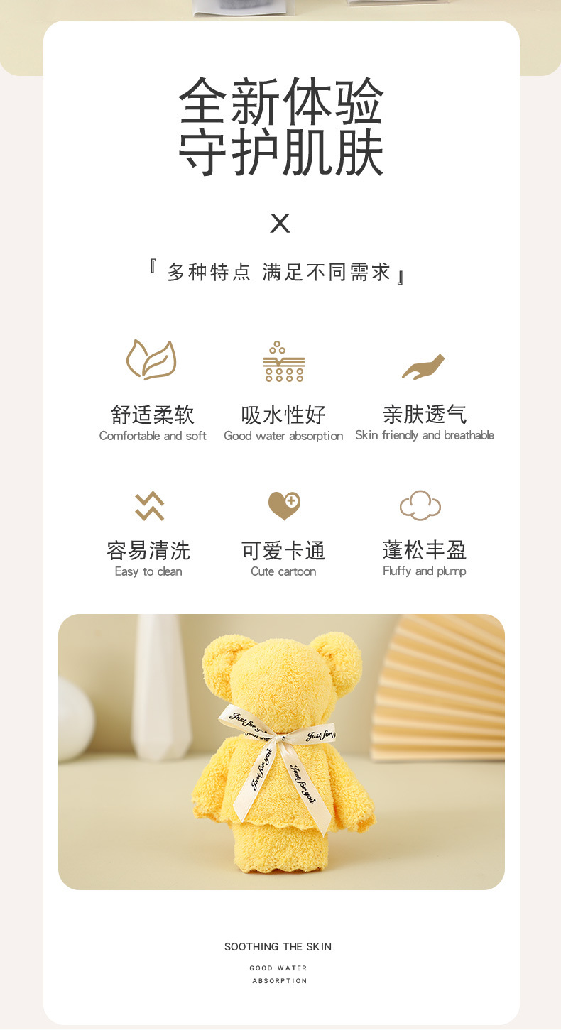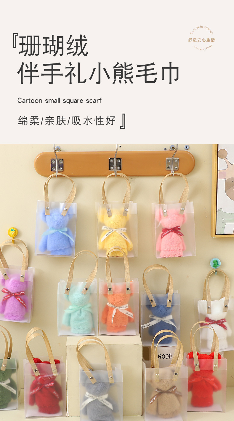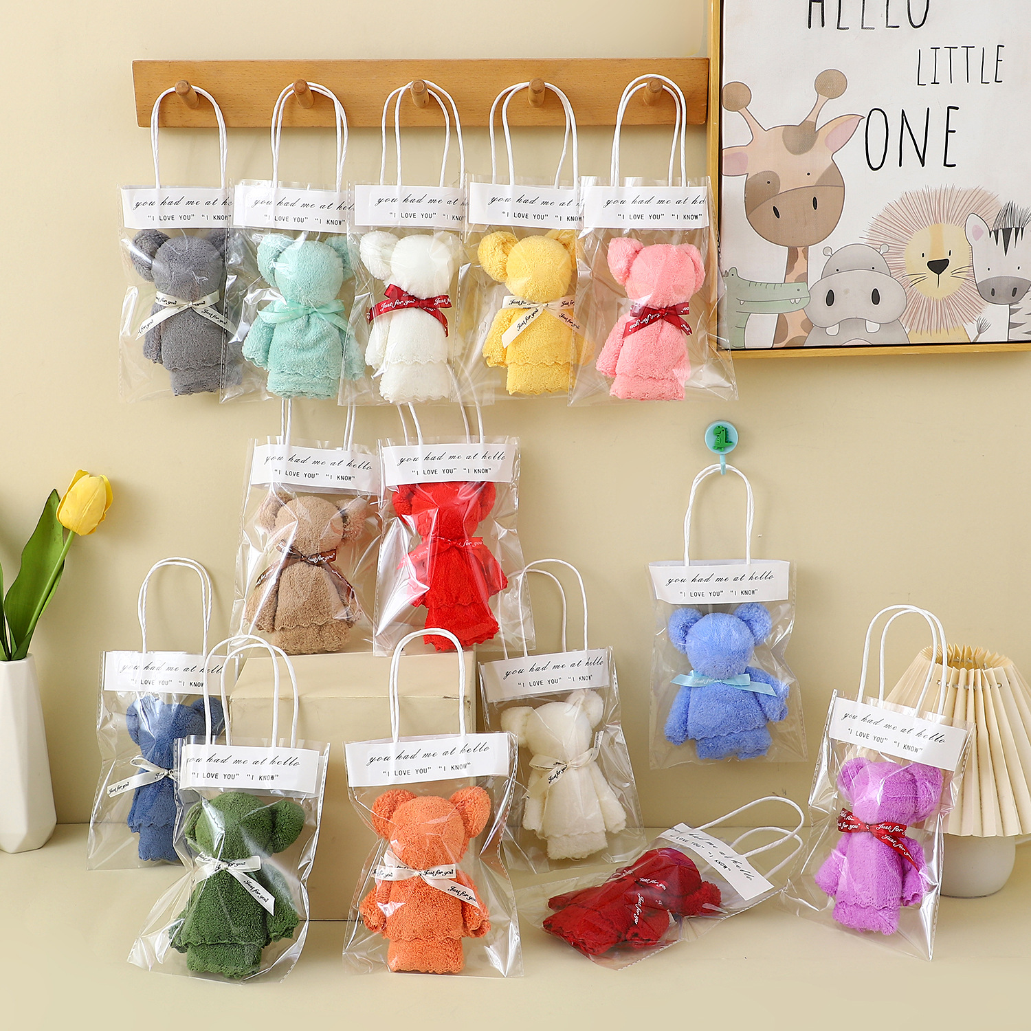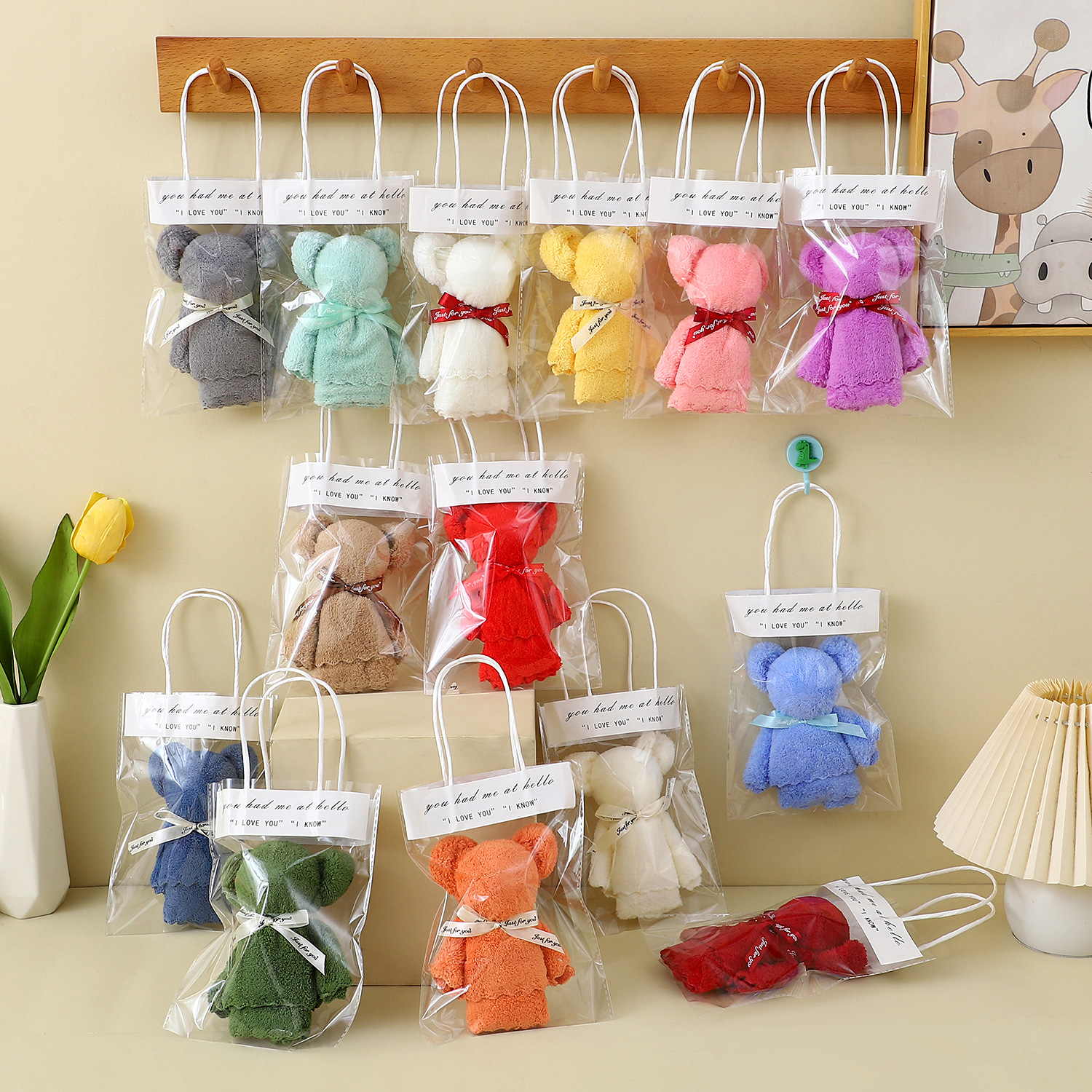 Сувенирное полотенце из кораллового флиса в форме медведя, квадратное, для подарка на свадьбу, день рождения, ответный подарок, праздничное, креативное, впитывающее полотенце