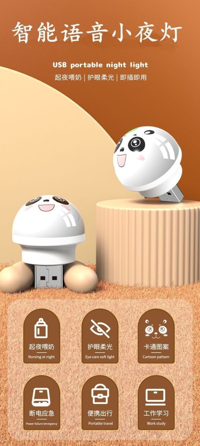 [Мягкий свет защиты глаз] Голосовое управление ночник Panda интеллектуальное управление звуком USB домашний свет энергосберегающий атмосферный светильник