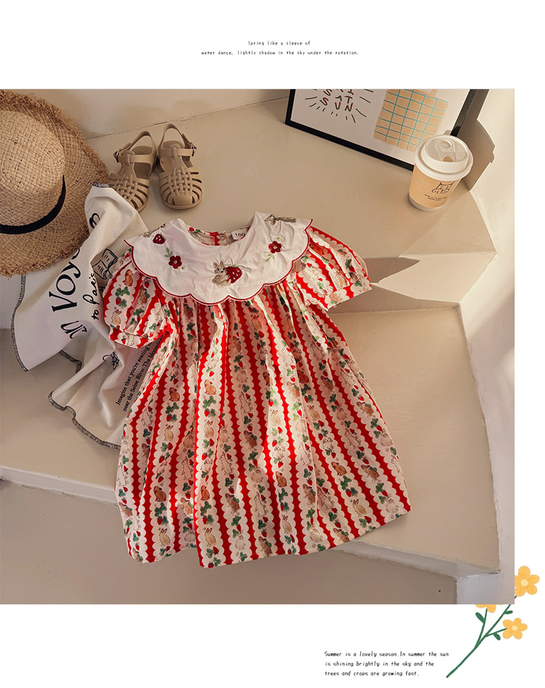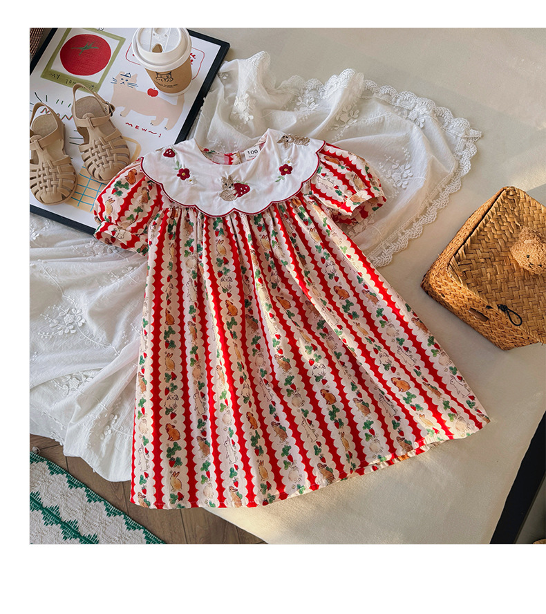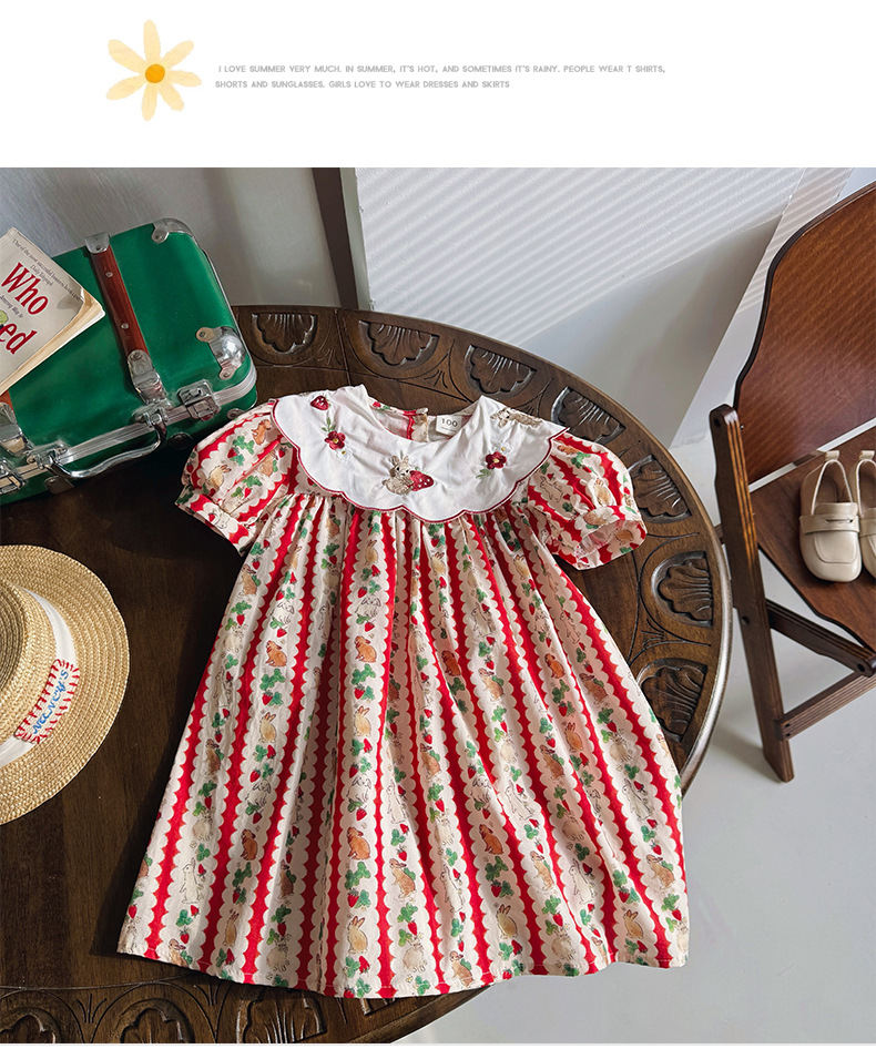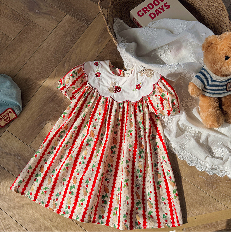 Новое летнее платье 2026 года для девочек: с цветочным принтом, вышивкой кролика на воротнике, пышными рукавами, милое детское платье-принцесса в корейском стиле