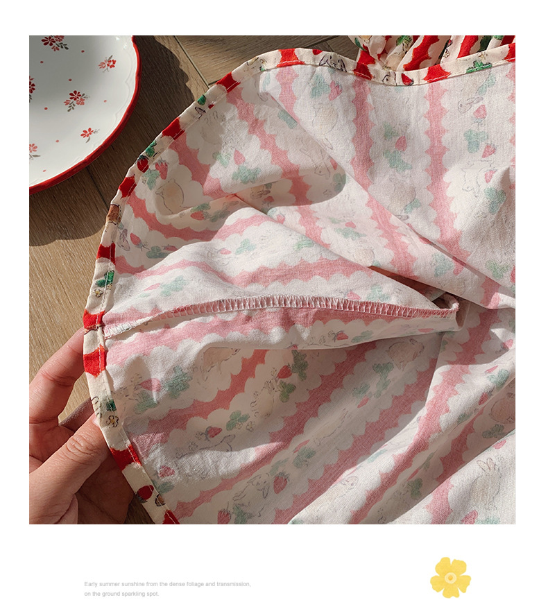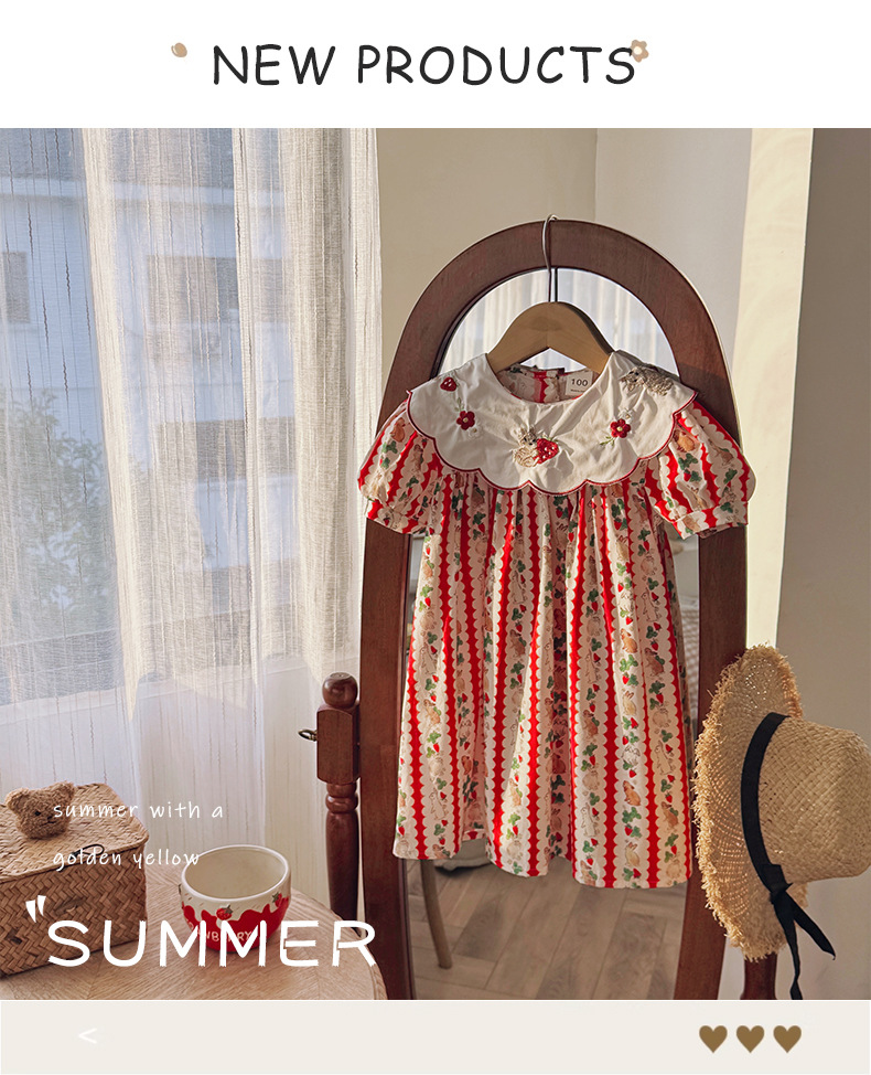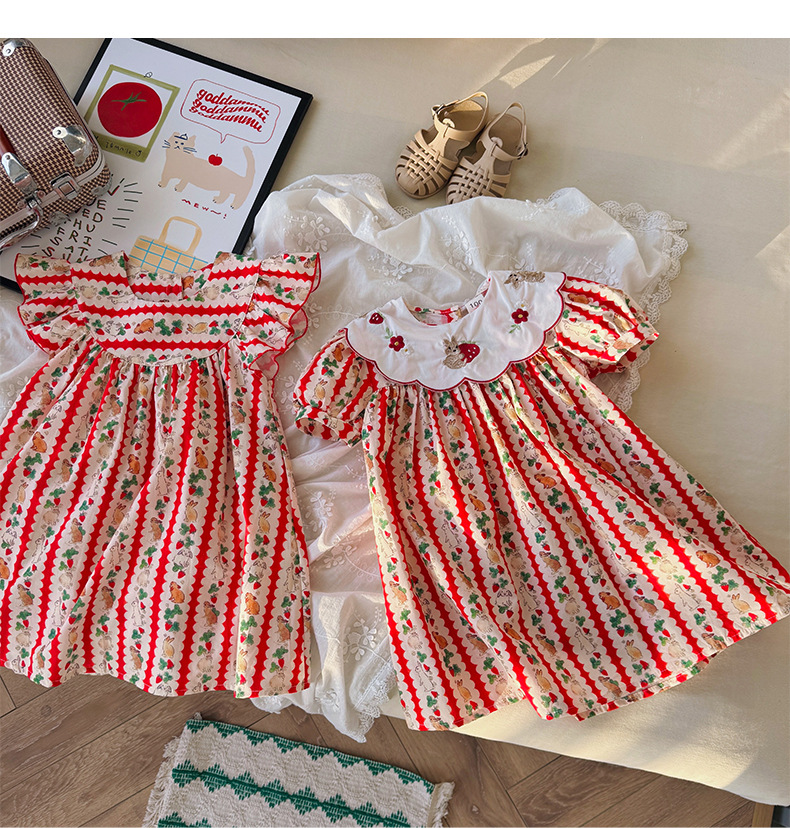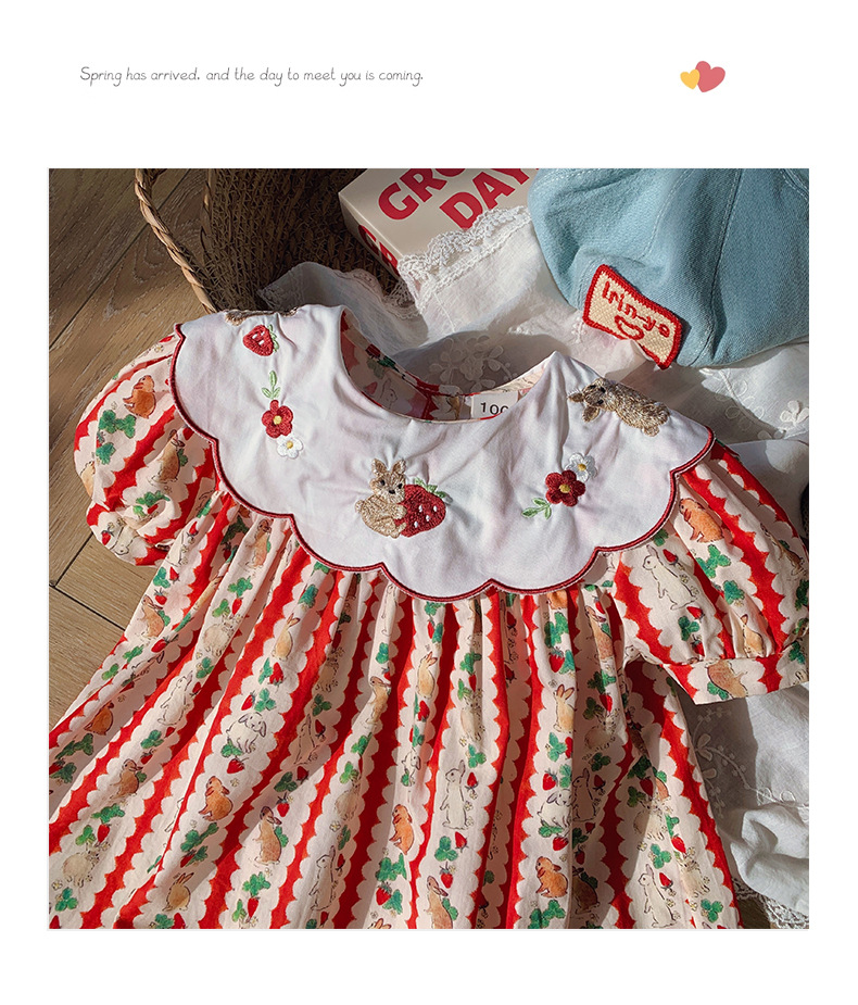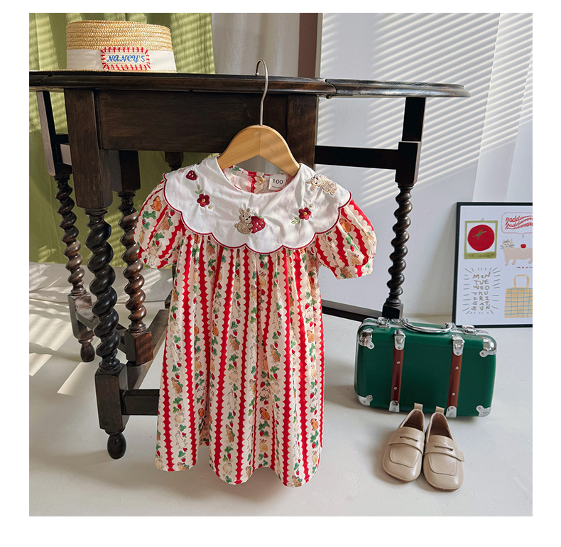 Новое летнее платье 2026 года для девочек: с цветочным принтом, вышивкой кролика на воротнике, пышными рукавами, милое детское платье-принцесса в корейском стиле