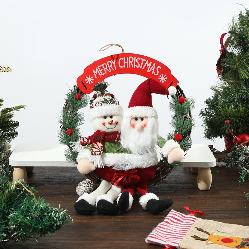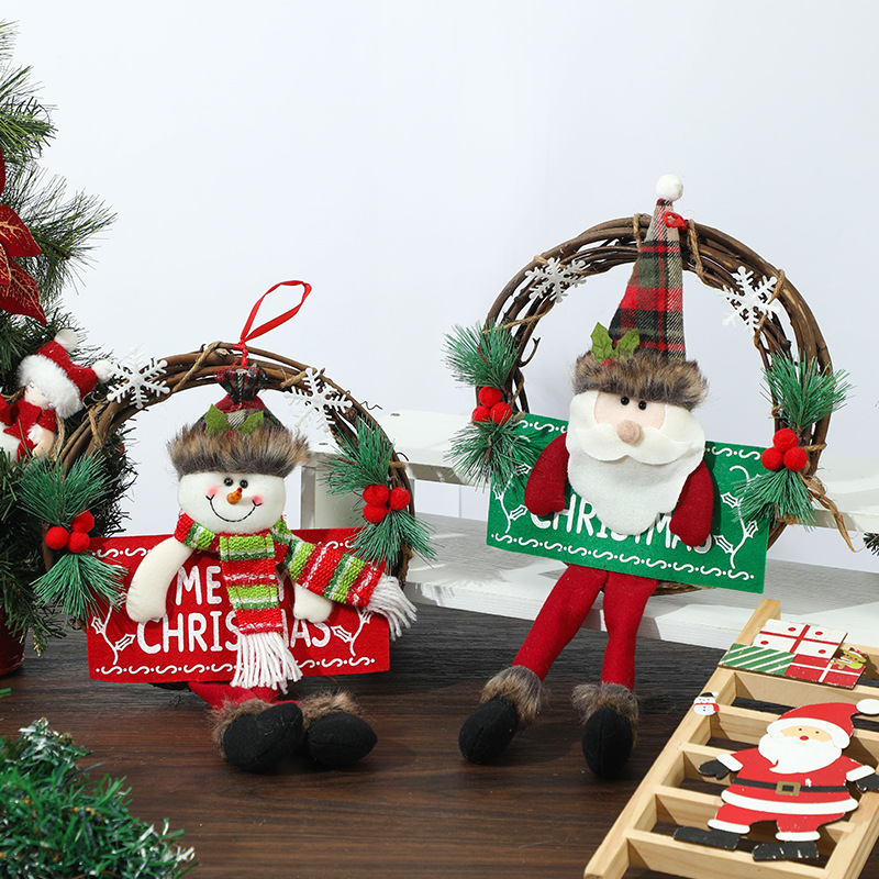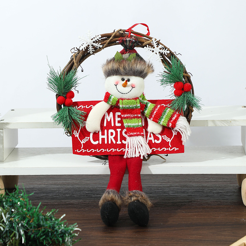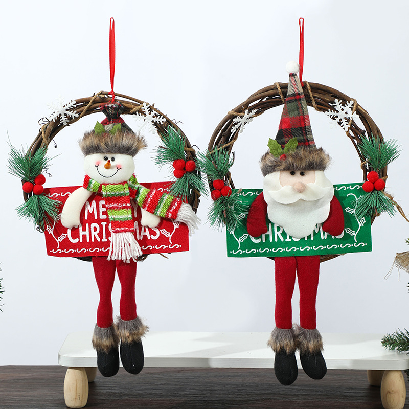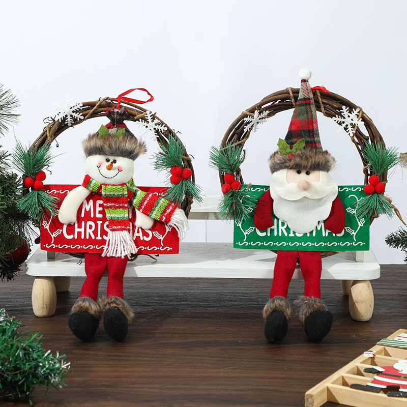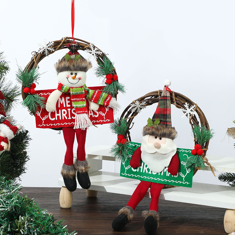 Дед Мороз, снеговик, длинная ножка, гирлянда из ротанга, дверная подвесная кукла, круг из ротанга, украшение, подвеска, принадлежности для украшения окна