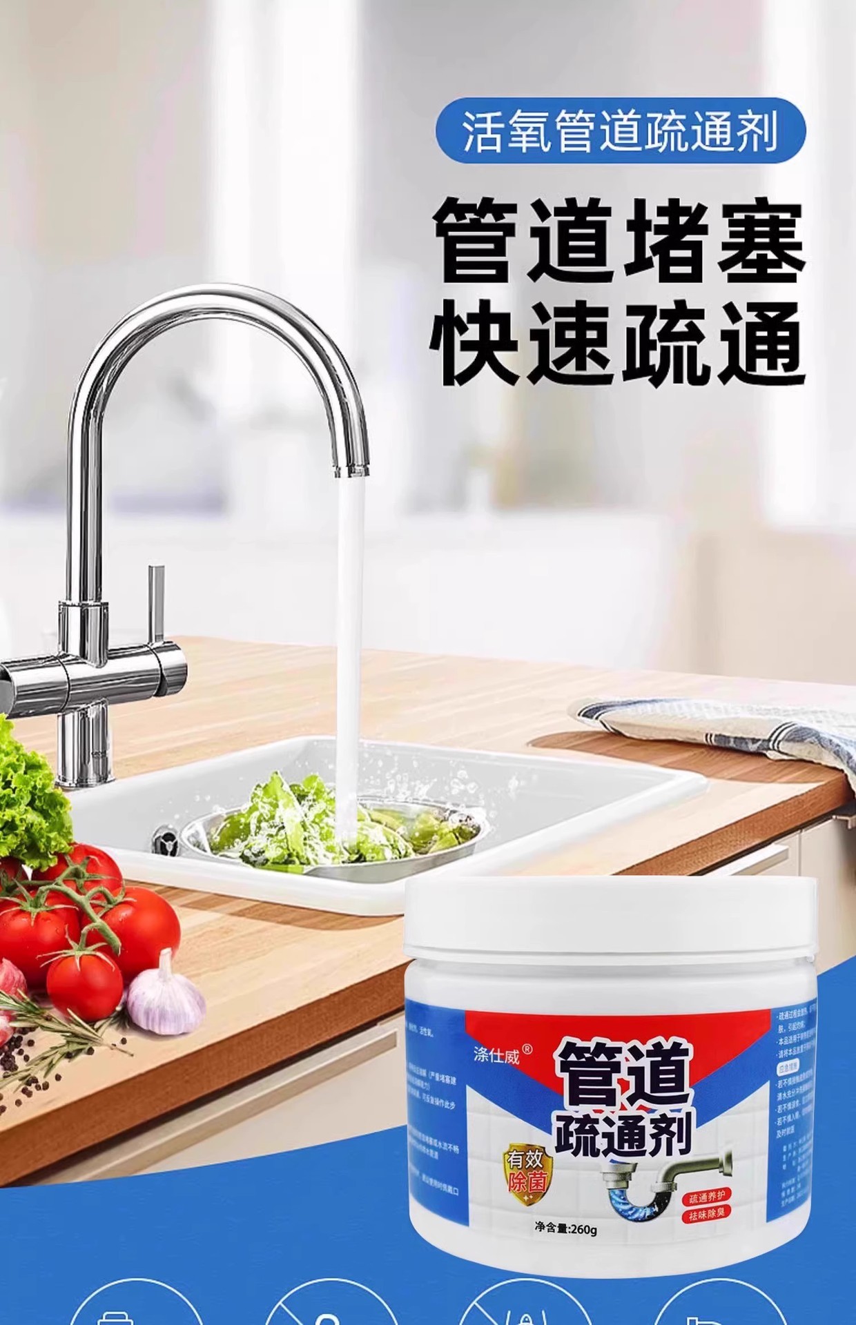 260 г круглой бутылки с драговым средством для труб [высококачественная модель]; 260 г круглой бутылки с дноуглубительным средством для труб [дренажного типа]