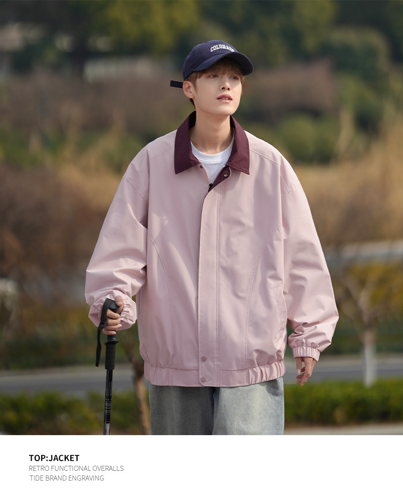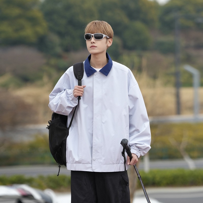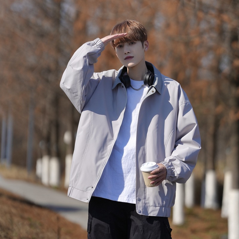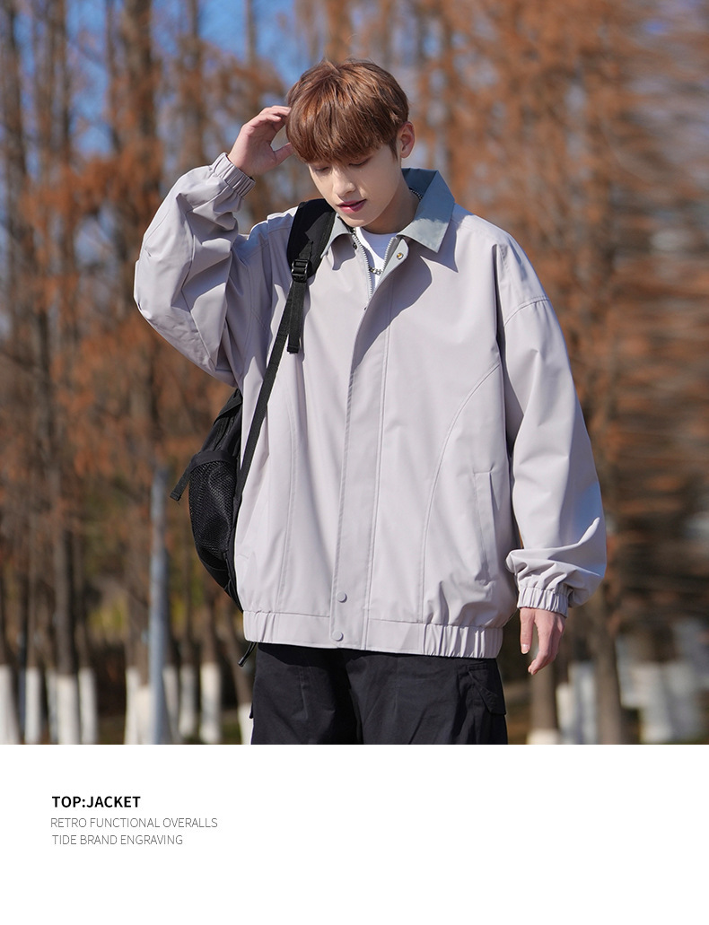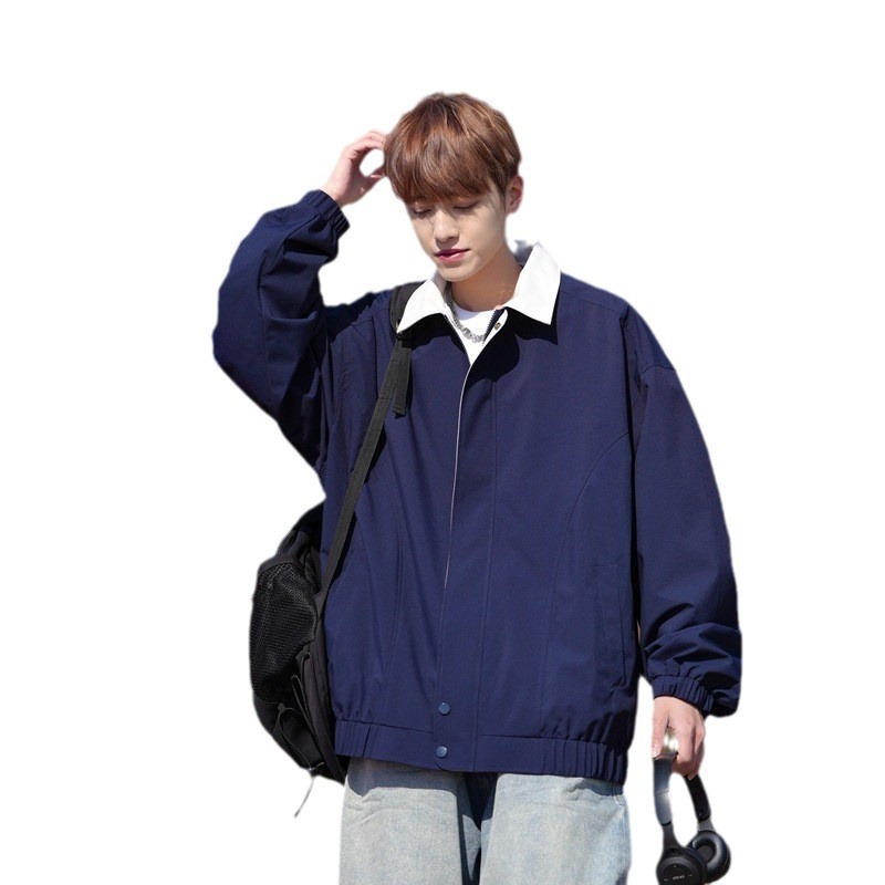 Весенне-осенние новые однотонные повседневные мужские топы в гонконгском стиле с лацканами, модная универсальная свободная куртка для пар