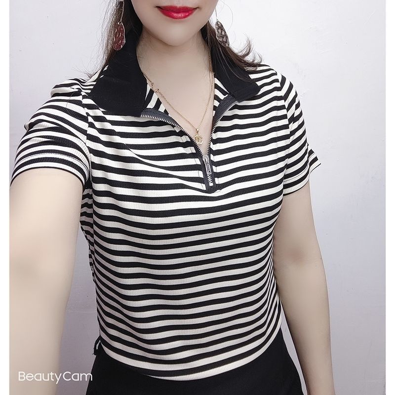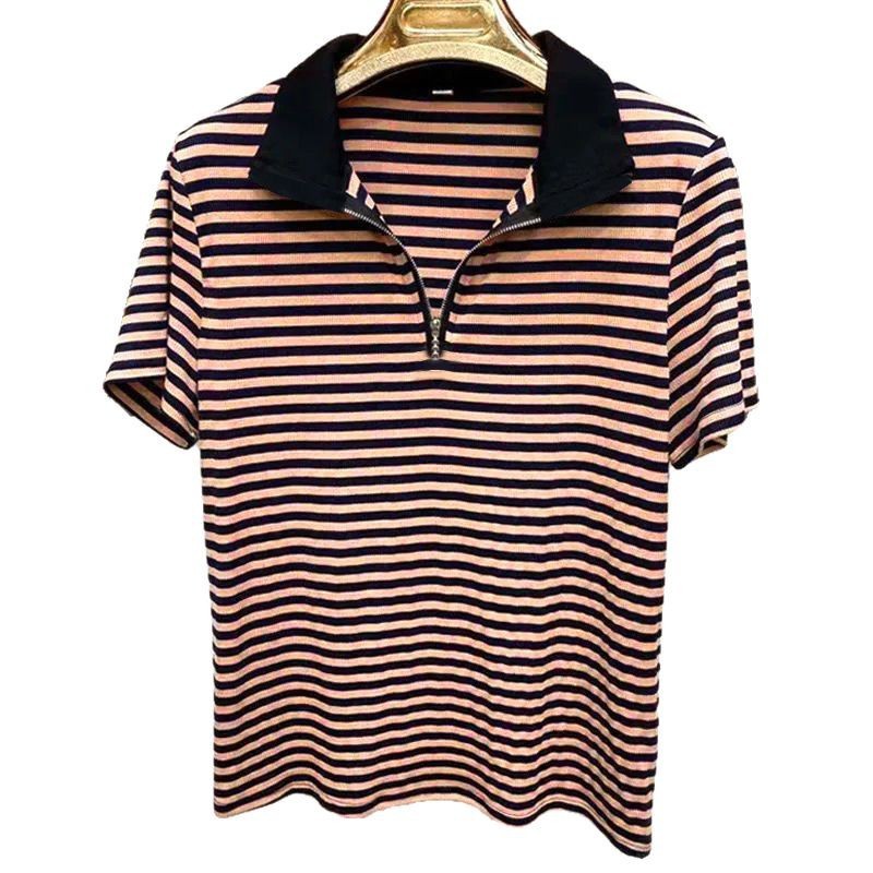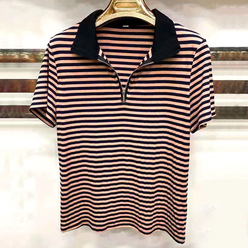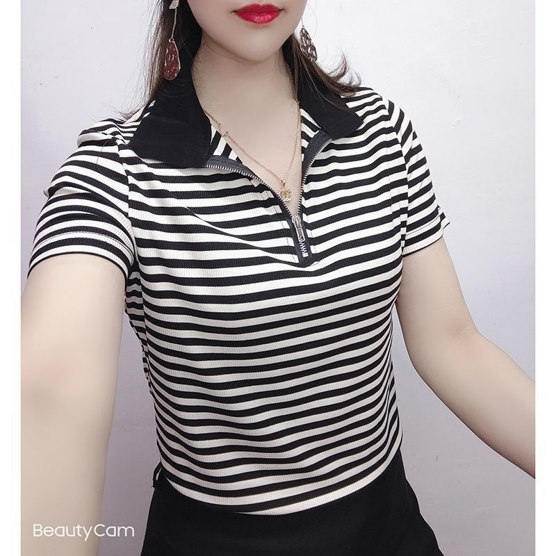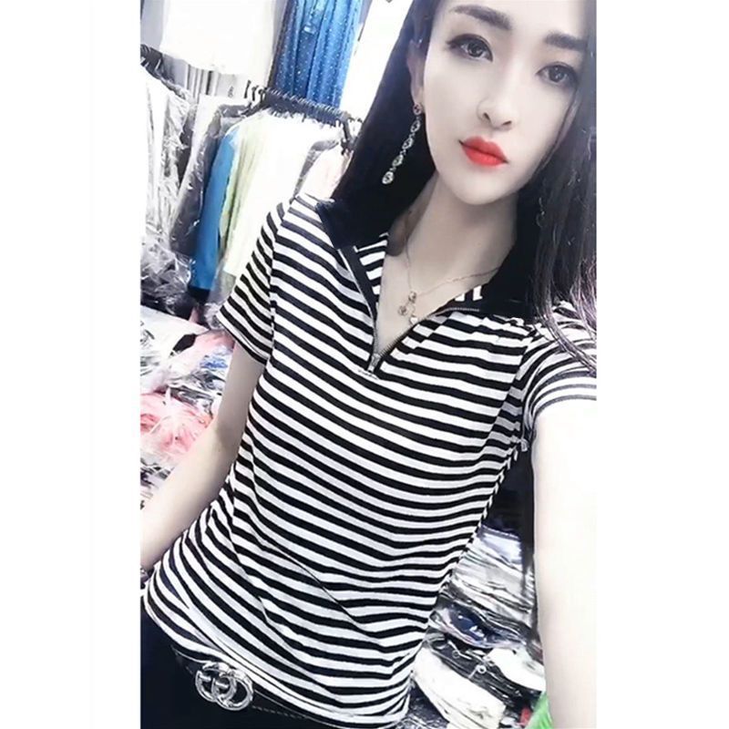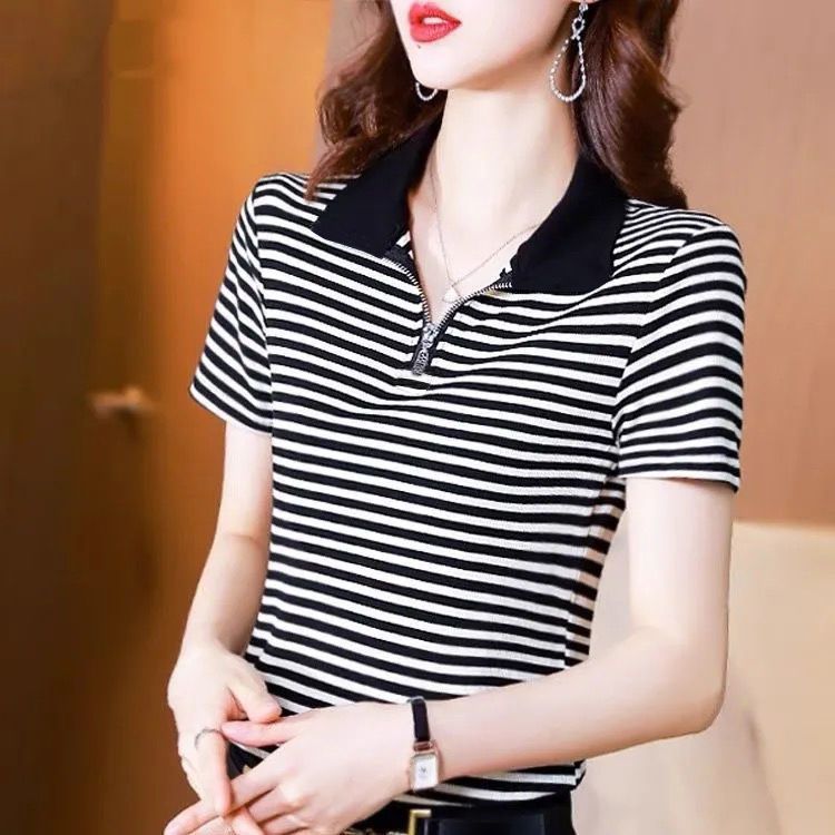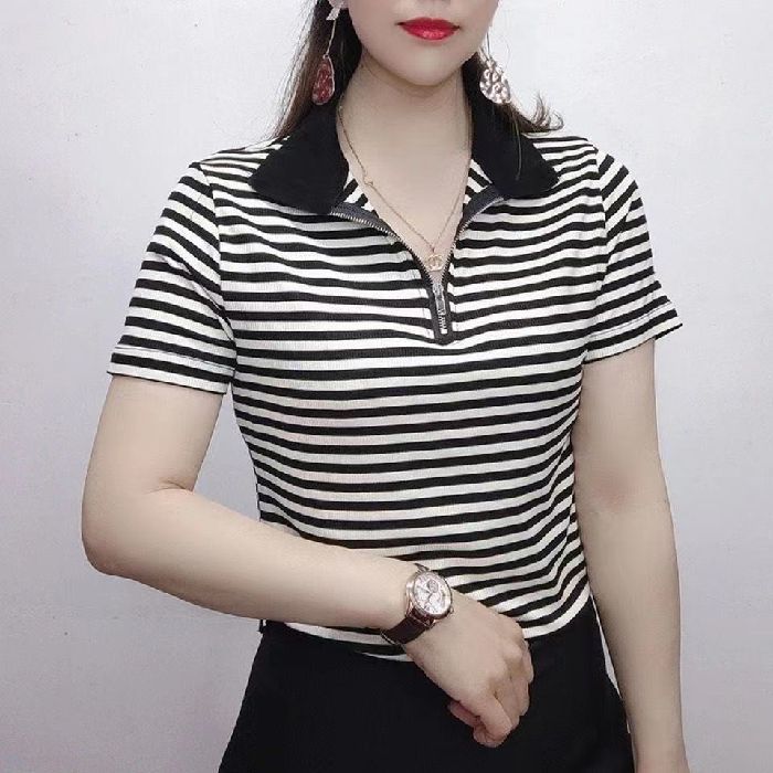 Европейская модная футболка с воротником-стойкой на молнии и короткими рукавами, трансграничная летняя новая женская универсальная тонкая стильная модная футболка