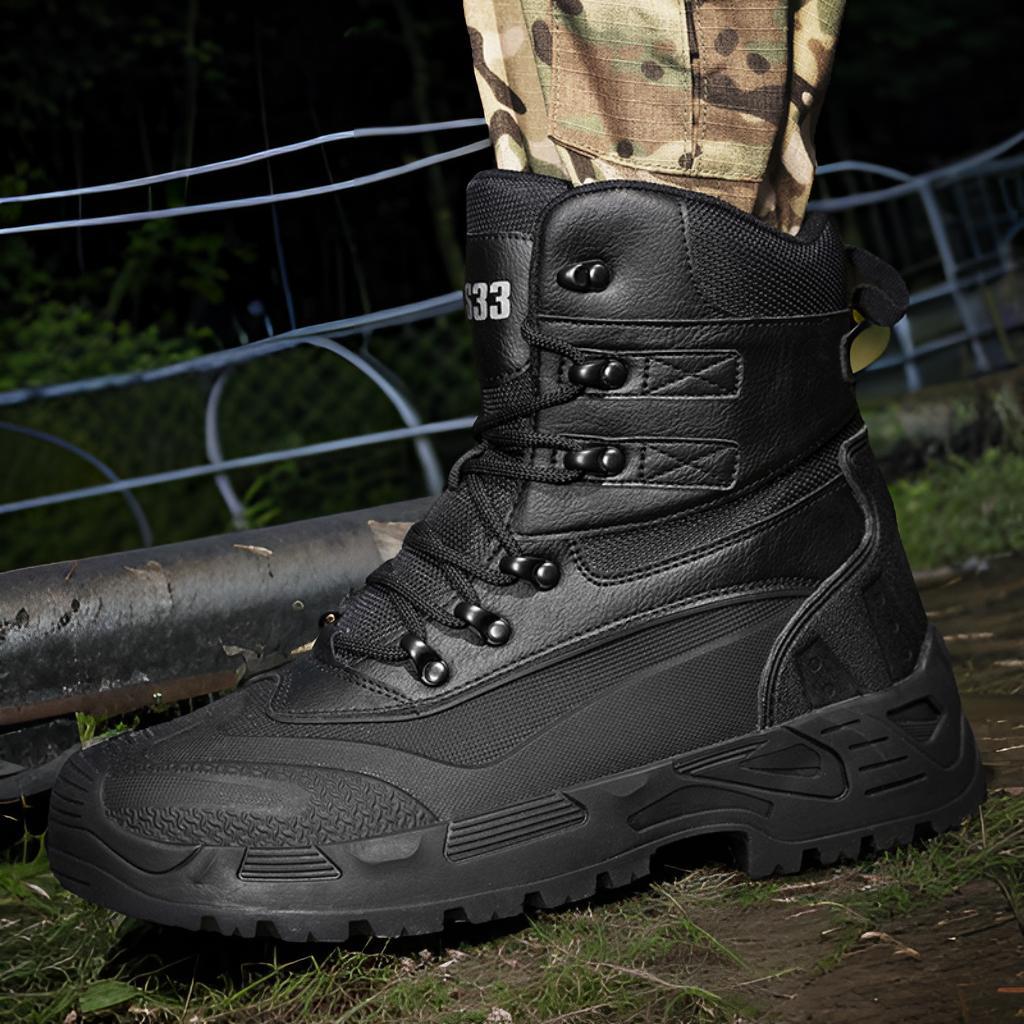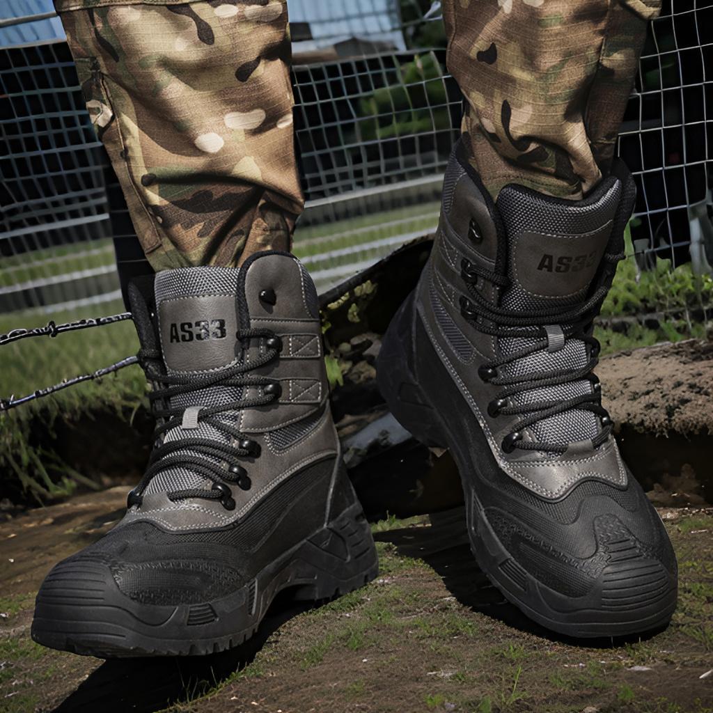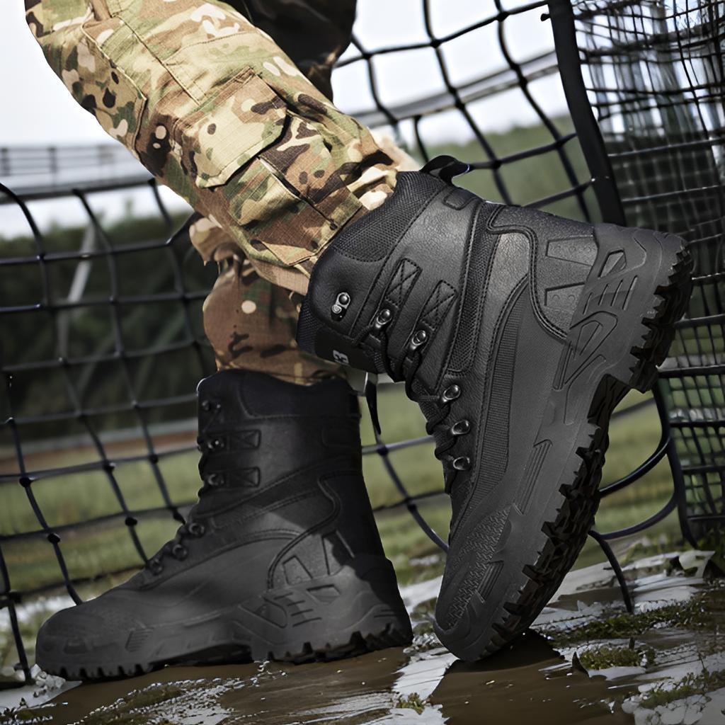 на открытом воздухе; военные ботинки