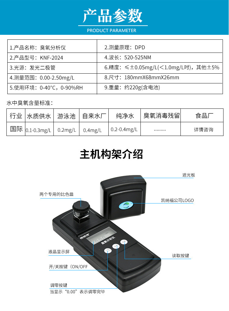 Портативный анализатор озона Kainafu KNF-2024 для анализа качества воды в канализации, бассейнах, водопроводной воде и воде для разведения