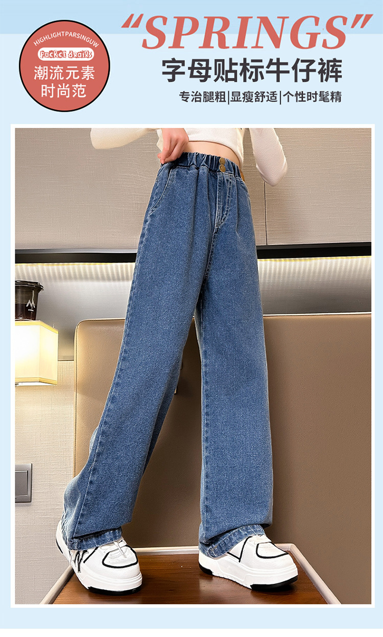 Джинсовые широкие брюки для девочек, 2025, внешняя торговля, повседневные брюки в корейском стиле для детей среднего и старшего возраста, осенне-зимний модный детский стиль