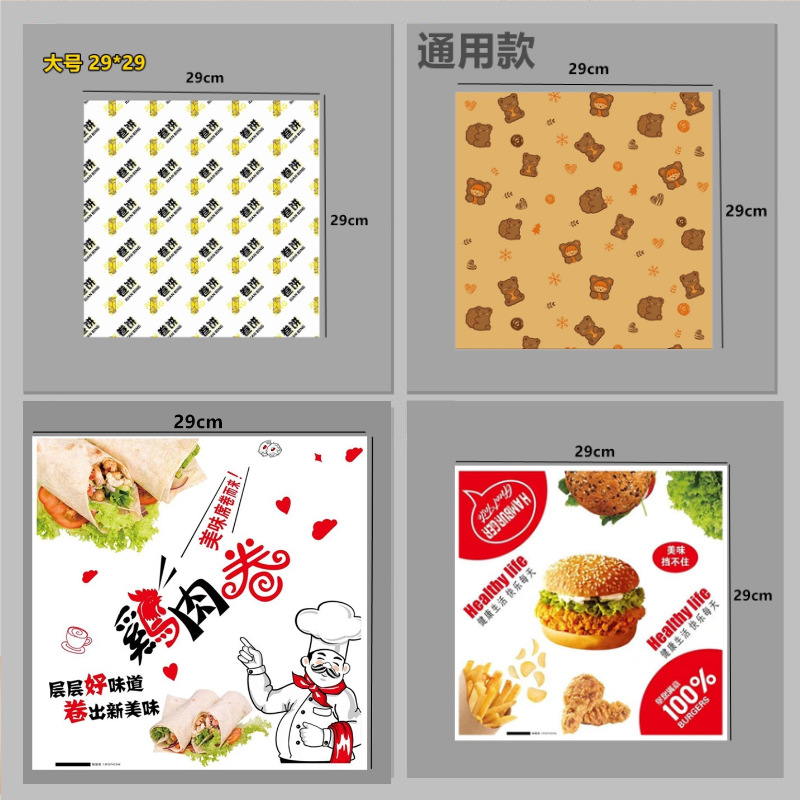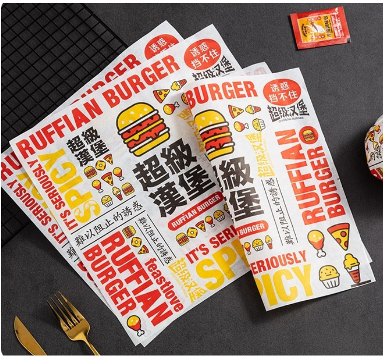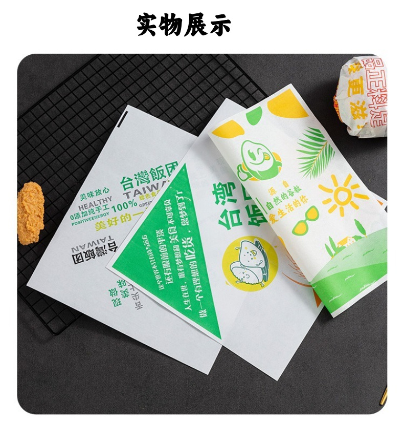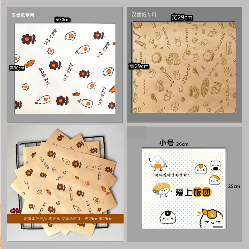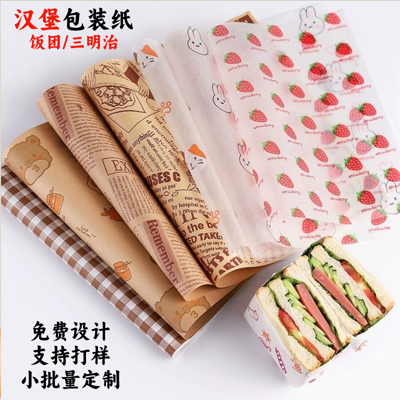 Быстросъемный бумажный пакет для гамбургера, маслостойкий бумажный пакет, рисовый шарик, сэндвич, жиронепроницаемая бумага, оберточная бумага для суши, пищевая жиронепроницаемая бумага