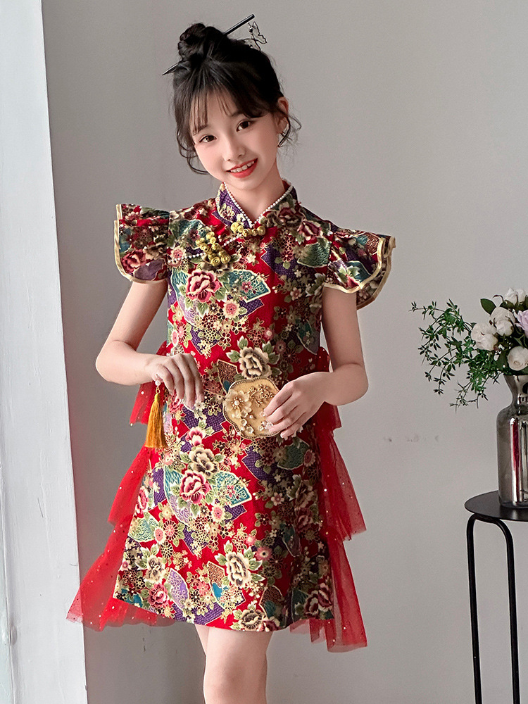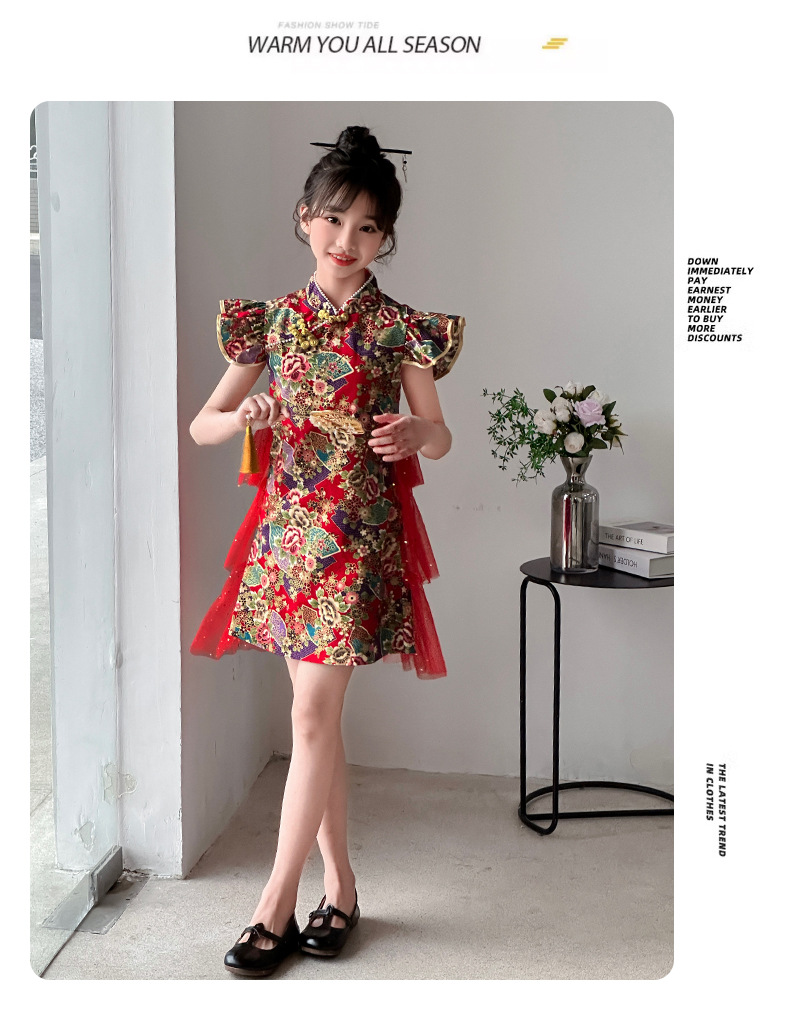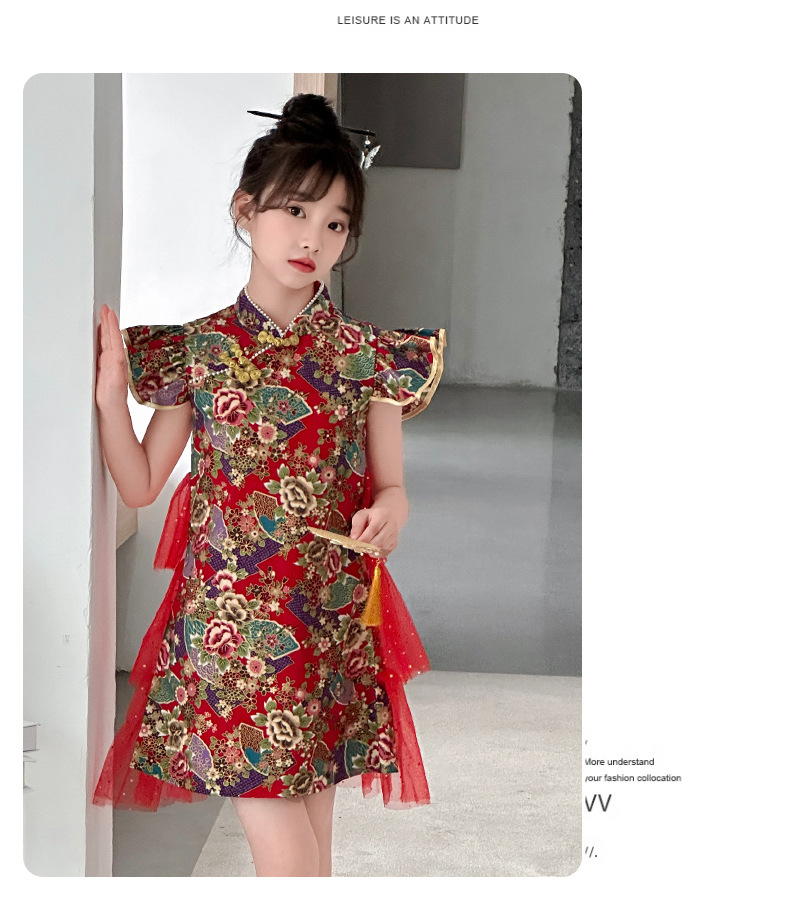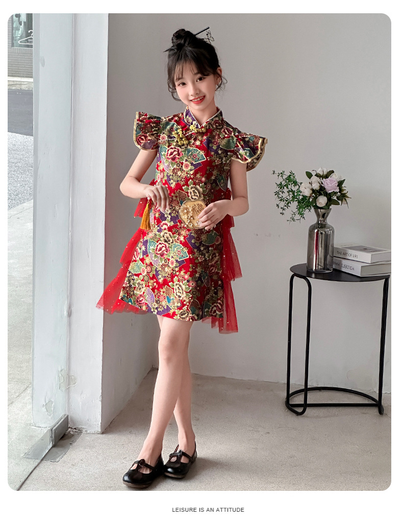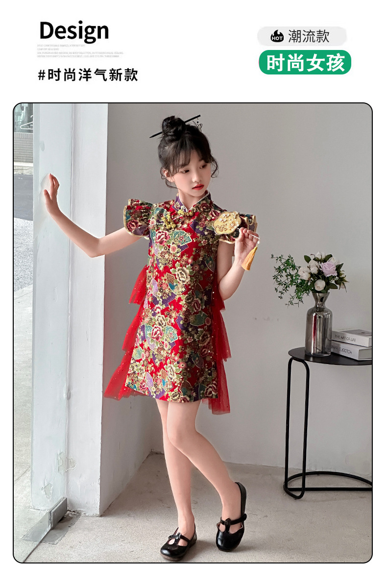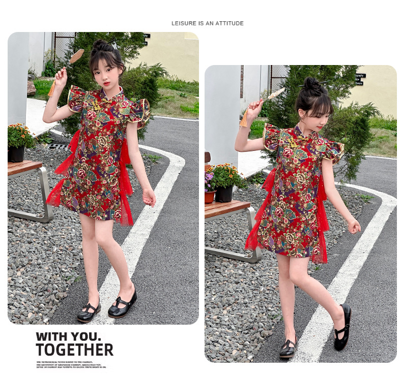 Летнее платье для девочек 2025, новый модный наряд для детей постарше, корейский стиль, повседневный шик, модный детский наряд с коротким рукавом.