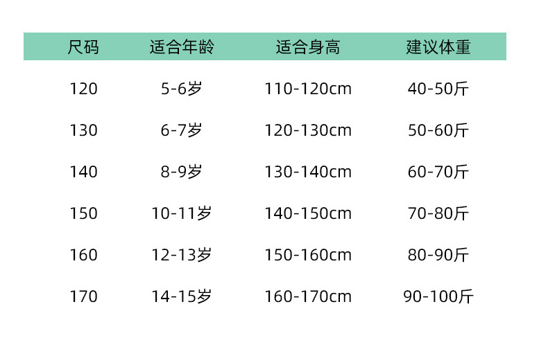 120 см; 130см; 140см; 150 см; 160см; 170см