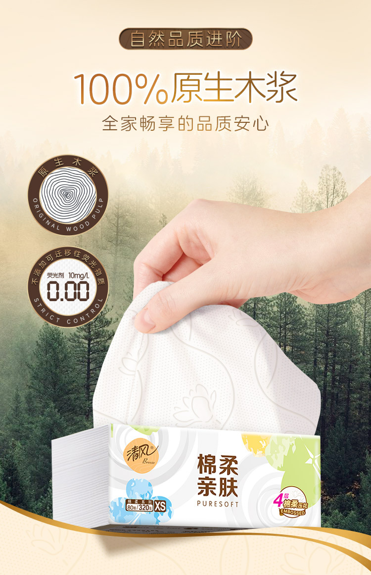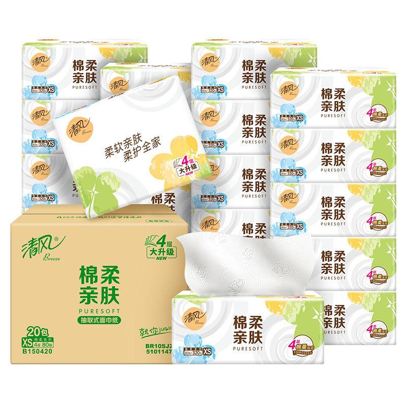 Оригинальная мягкая бумажная салфетка Qingfeng, 320 листов, 20 упаковок, 4-слойные бумажные полотенца, доступная бытовая туалетная бумага, салфетки для лица