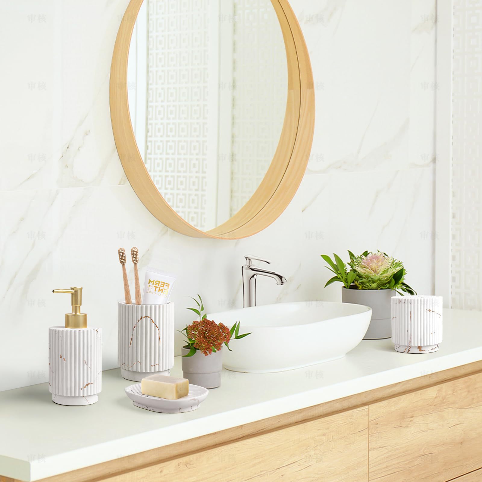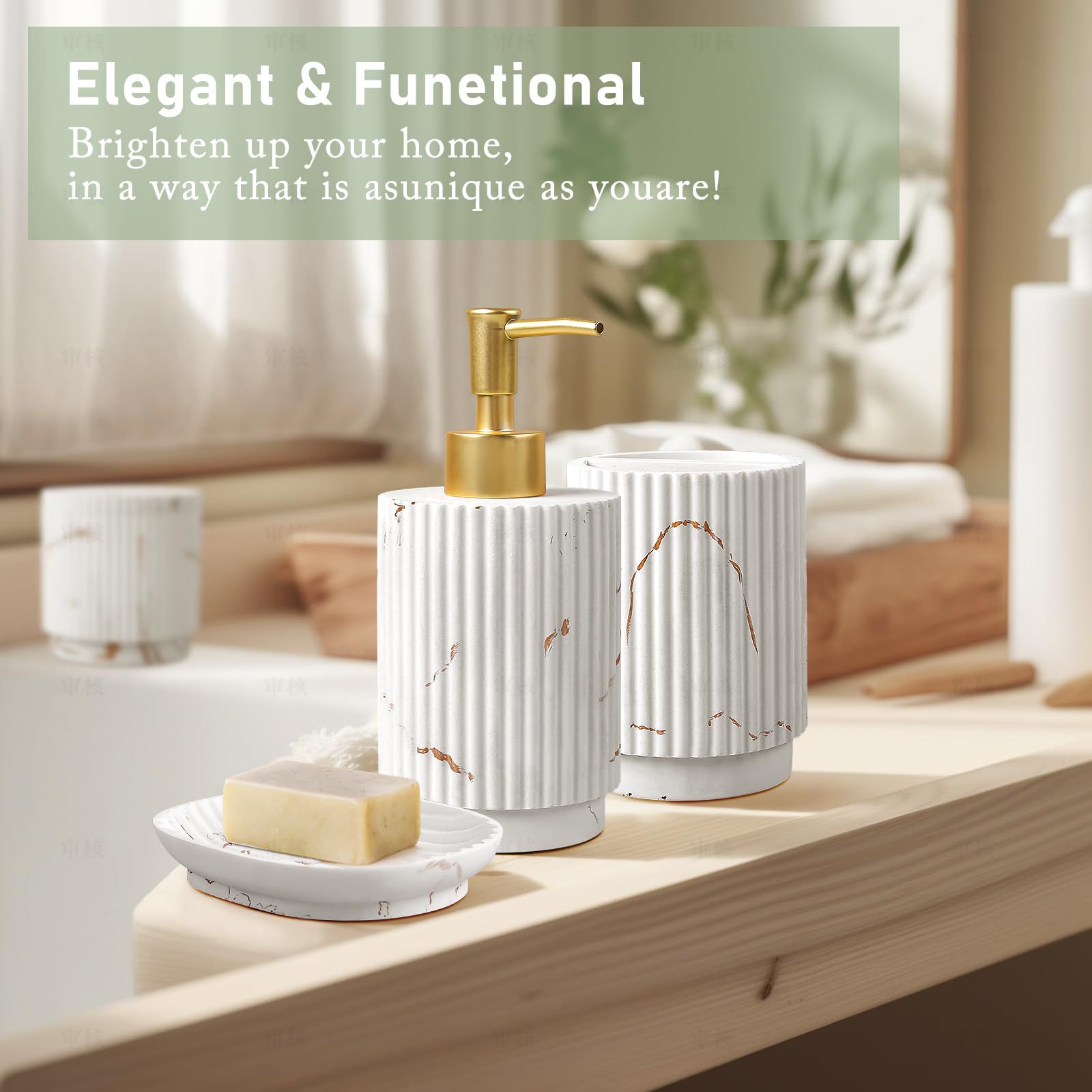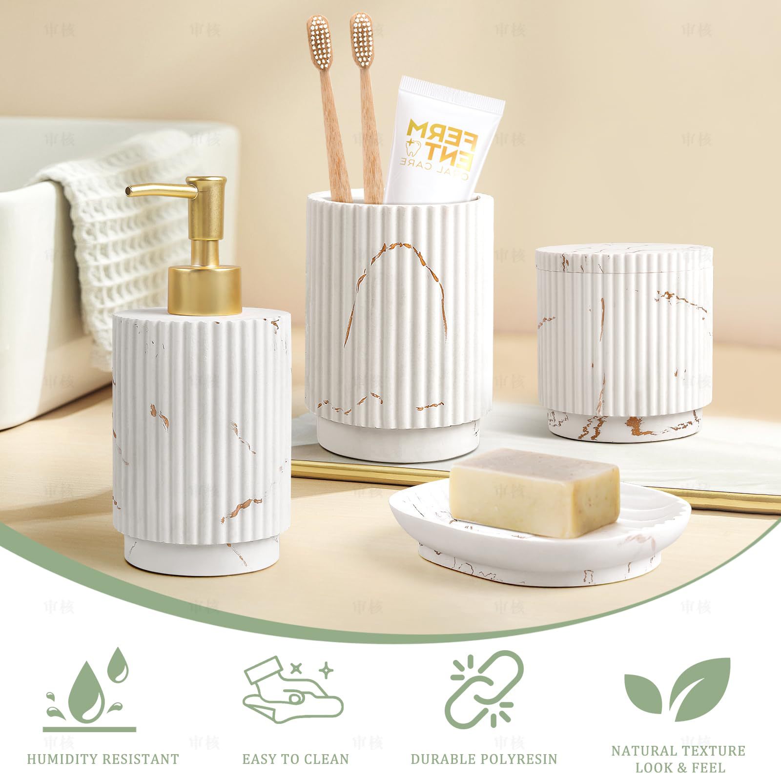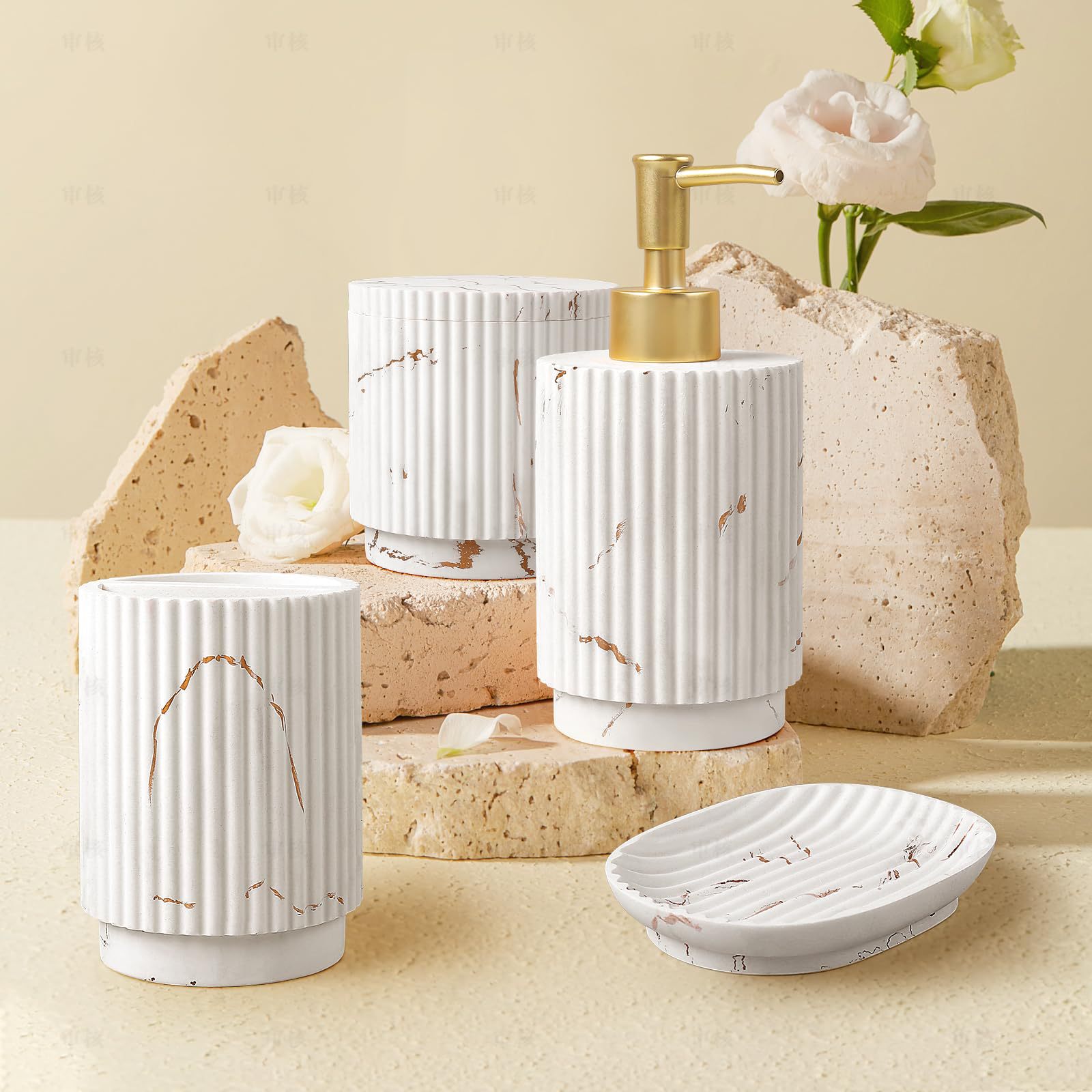 Набор для ванной комнаты Amazon Nordic из керамики, простой домашний/гостиничный, с вертикальным рисунком, включает флакон для лосьона, стакан для ополаскивателя и мыльницу.