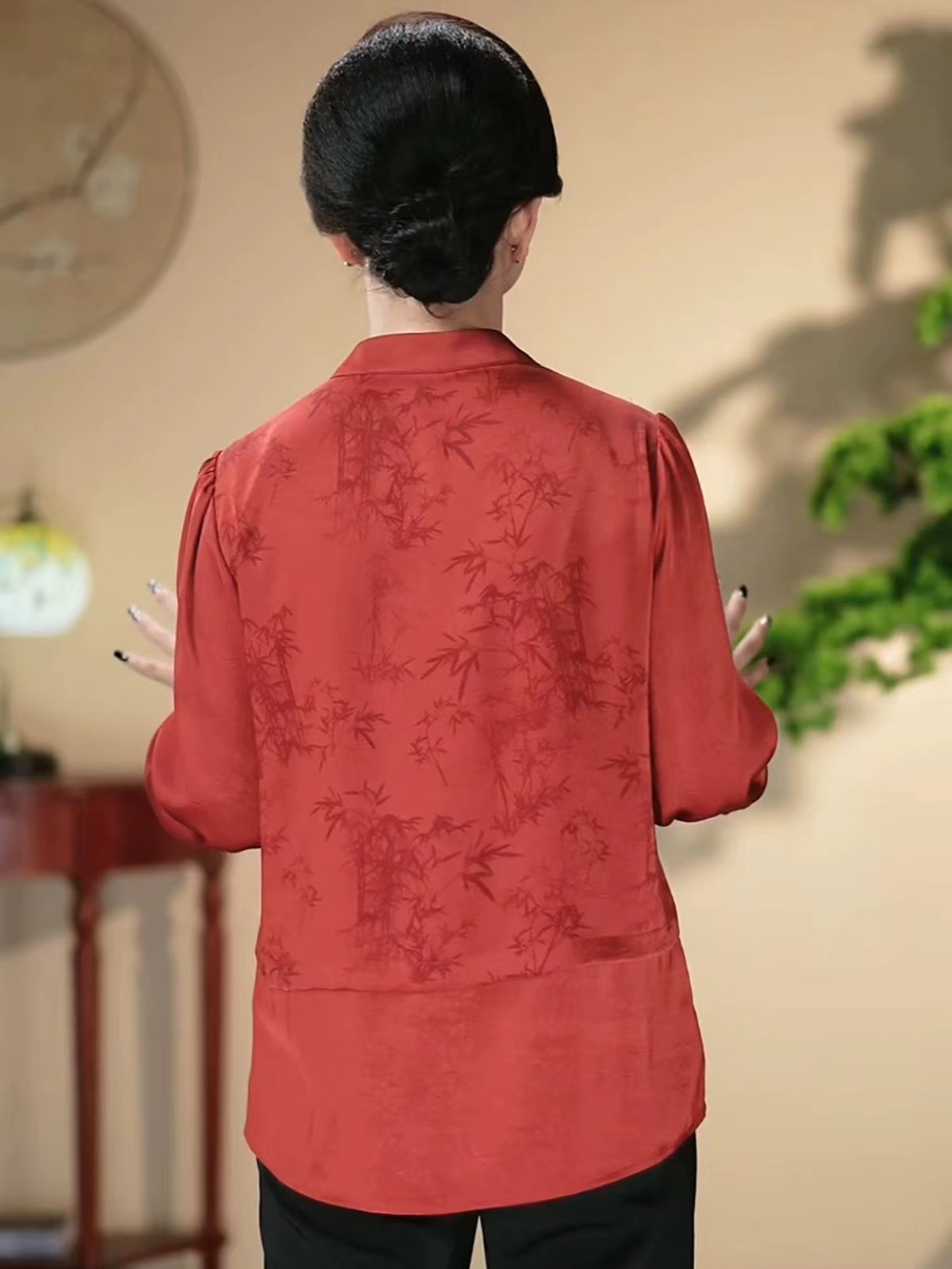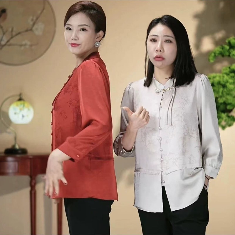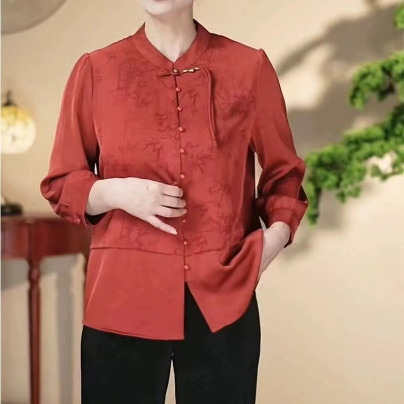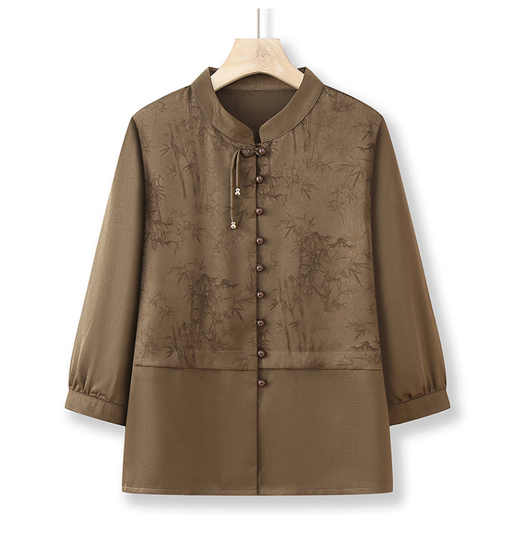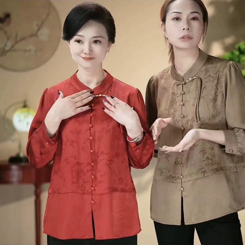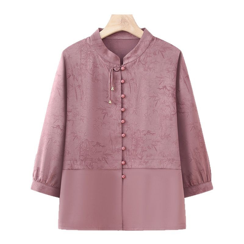 Летняя одежда для мам 2025: новая стильная модная рубашка с рукавом три четверти для женщин среднего и пожилого возраста, новый топ в китайском национальном стиле для женщин.