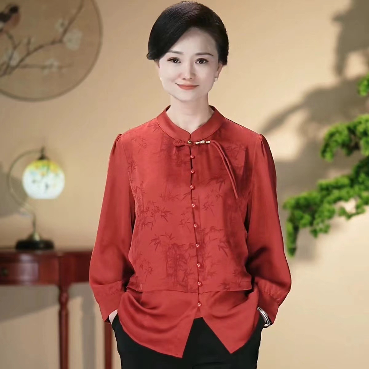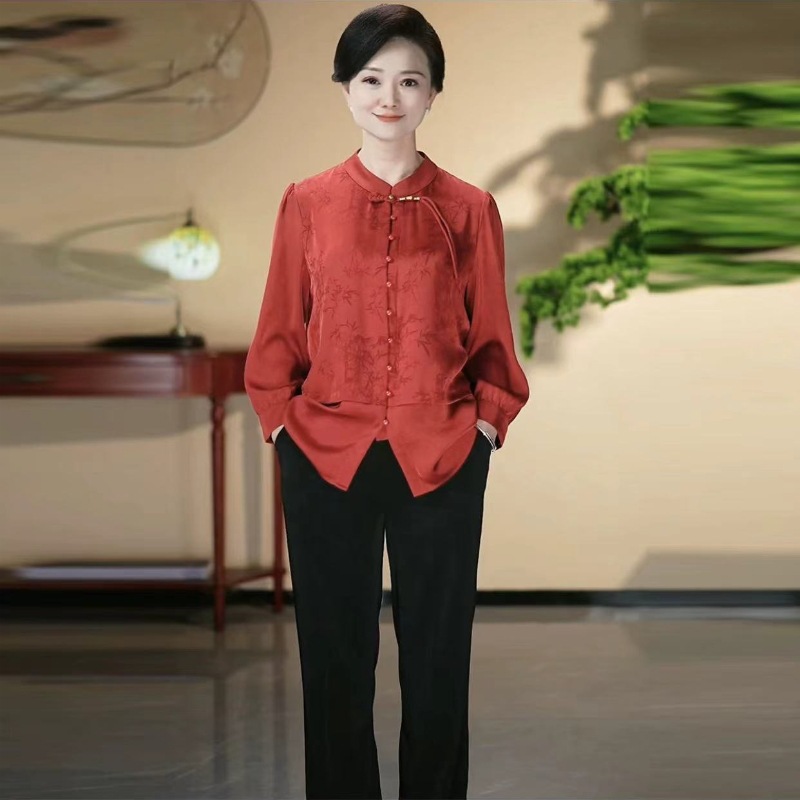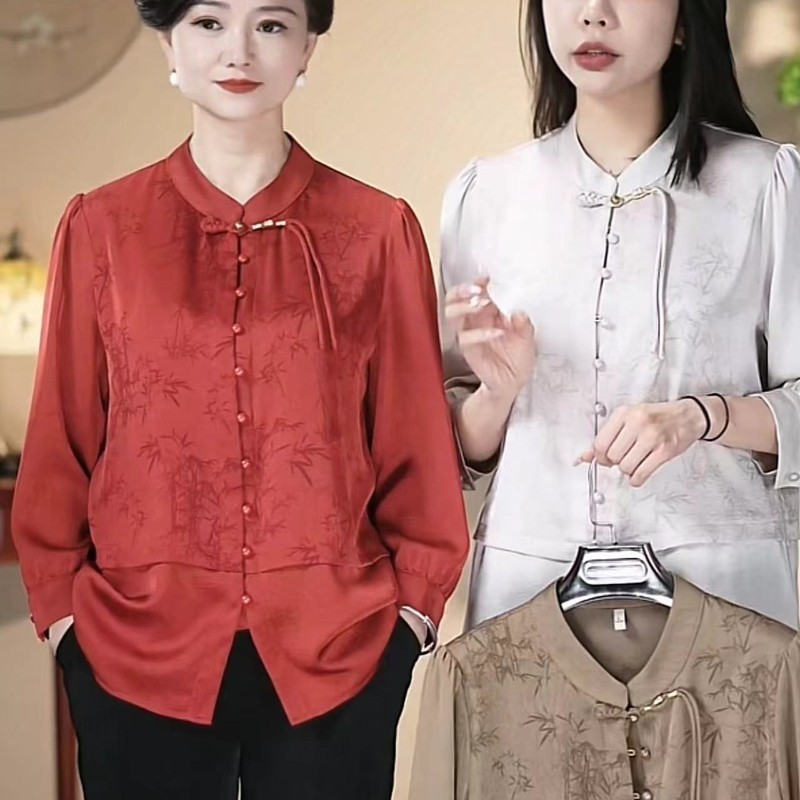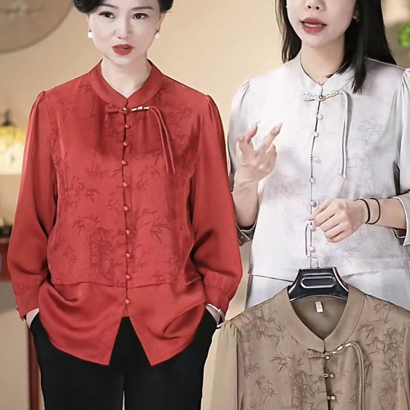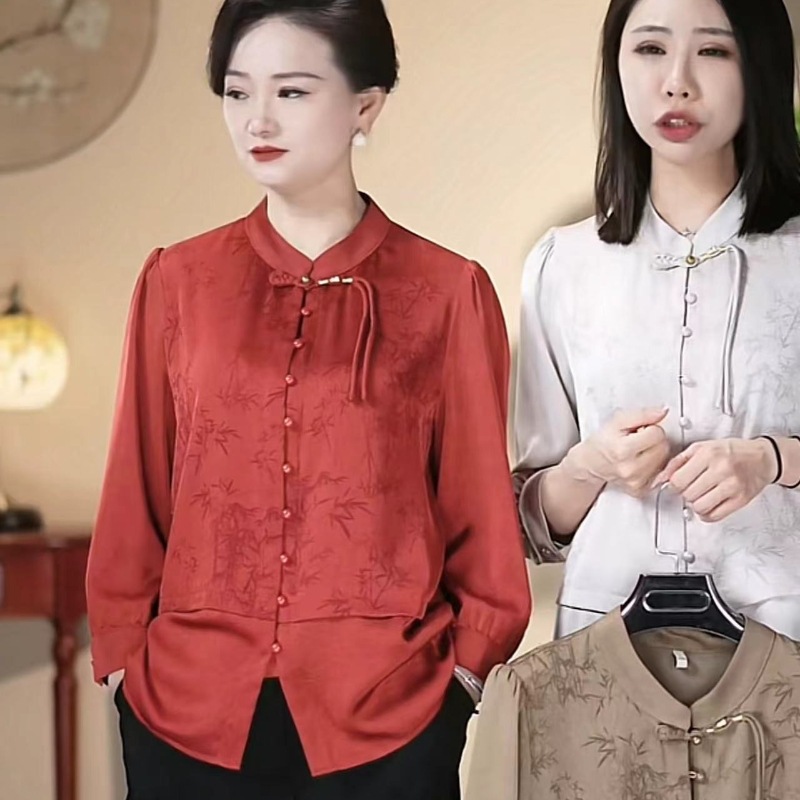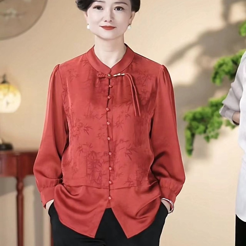 Летняя одежда для мам 2025: новая стильная модная рубашка с рукавом три четверти для женщин среднего и пожилого возраста, новый топ в китайском национальном стиле для женщин.
