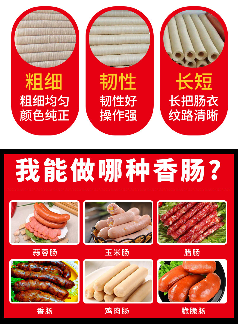 Оптовый производитель протеиновых оболочек 16-28 мм из коллагена для начинки, приготовления на пару, варки, колбас, гриль-колбас и колбас с воздушной сушкой.