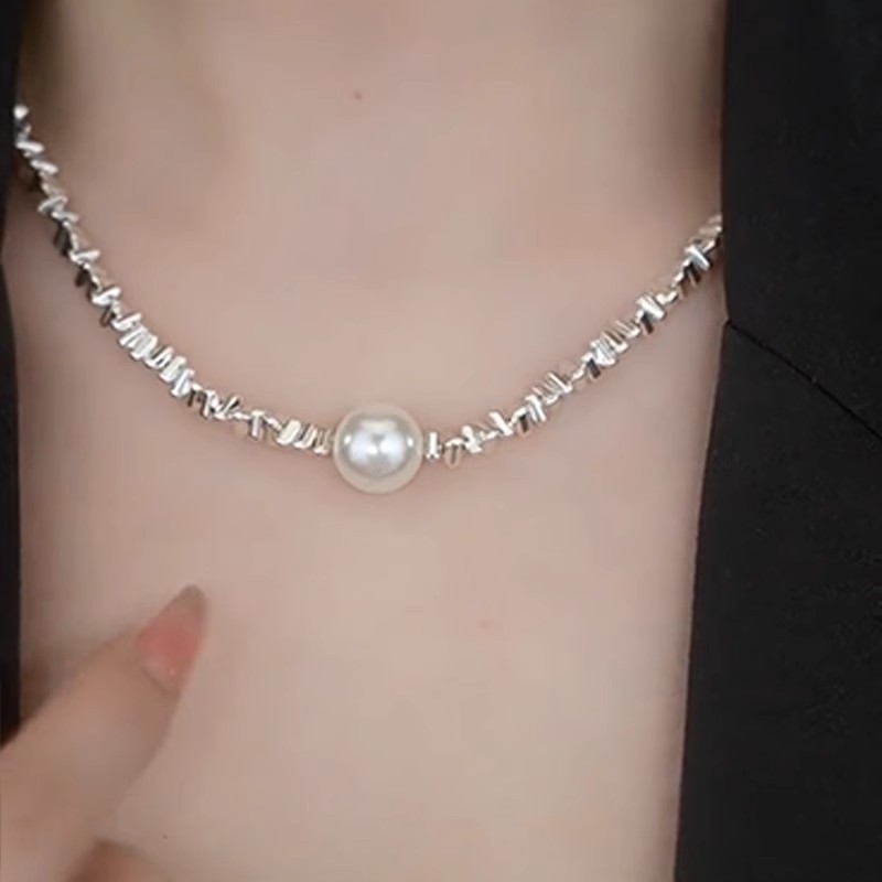 Ожерелье с одной жемчужной подвеской 2025 новый темпераментный ключица цепь треугольник серебряная личность дикая цепь шеи