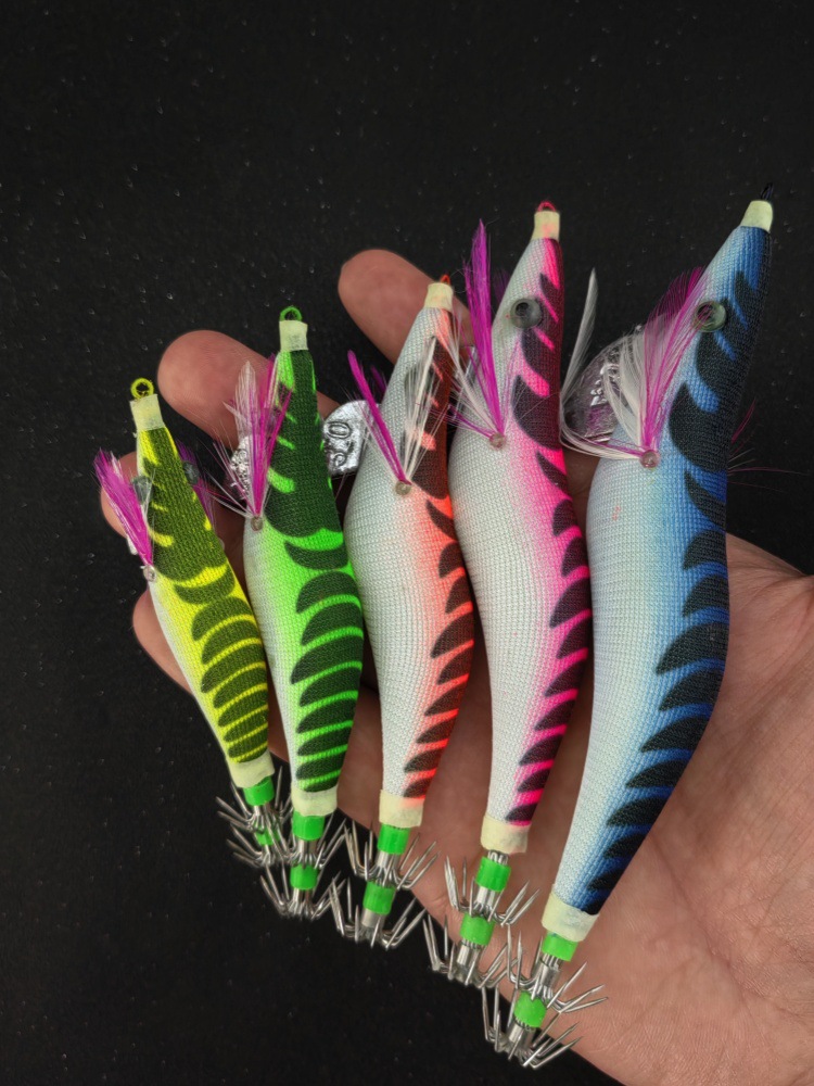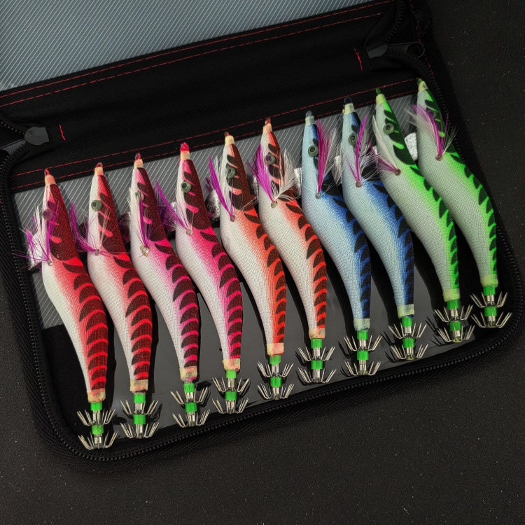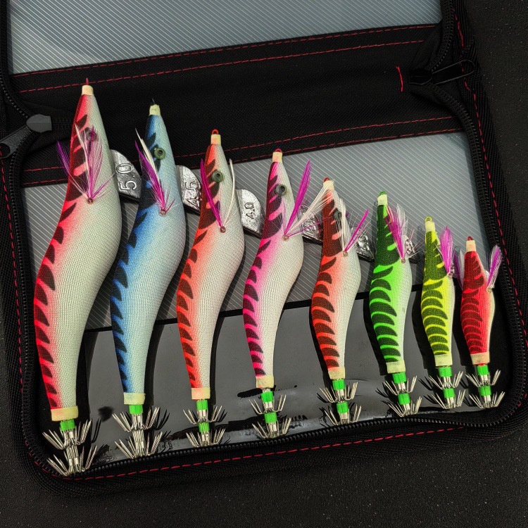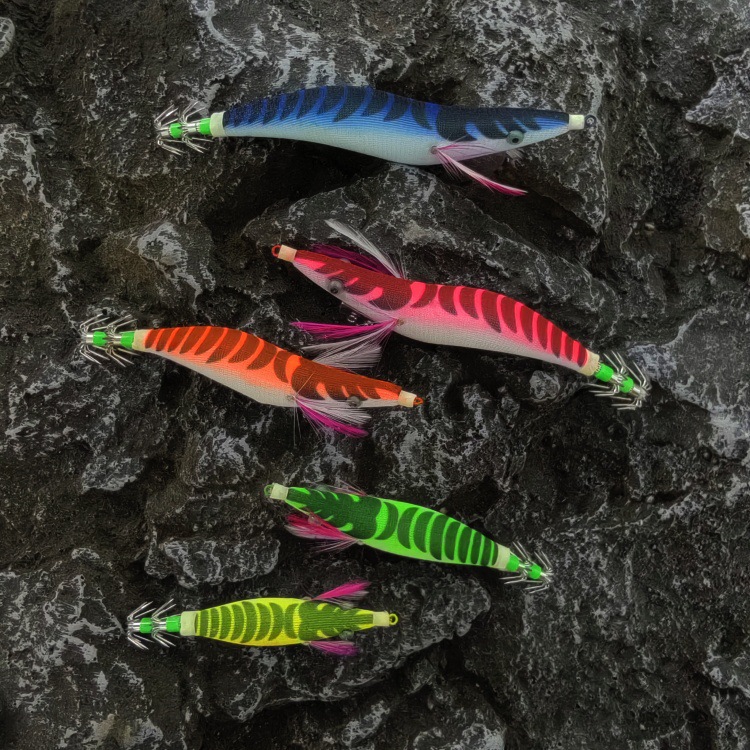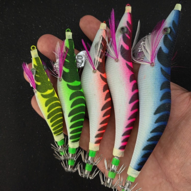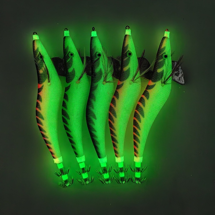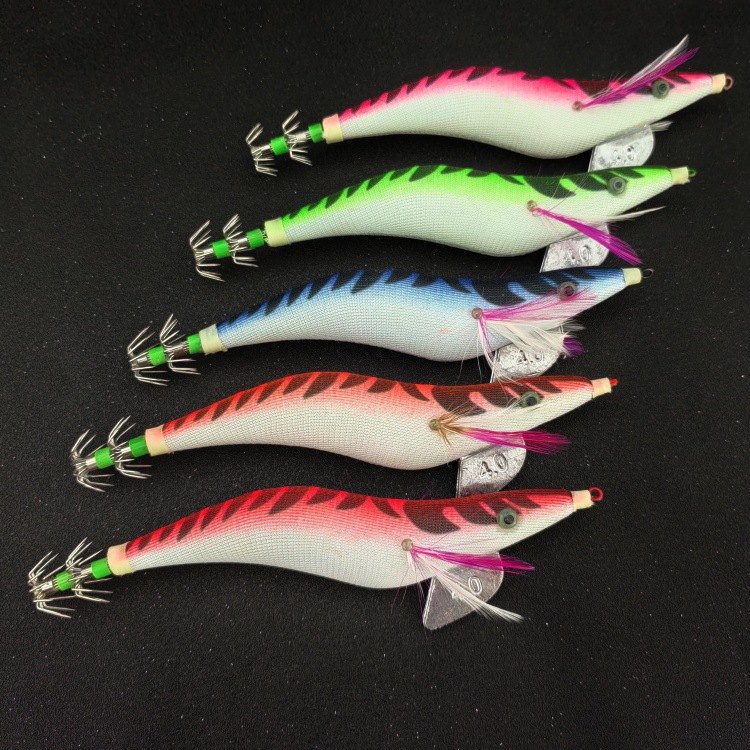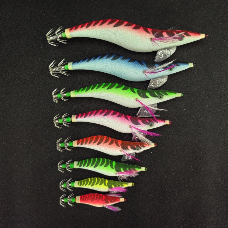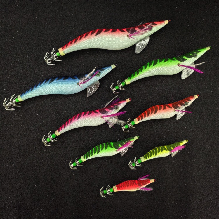 Несколько спецификаций светящихся деревянных крючков для кальмаров, больших креветок, морской рыбалки, кальмаров, деревянных креветок, большой хвост, чернильная приманка для кальмара