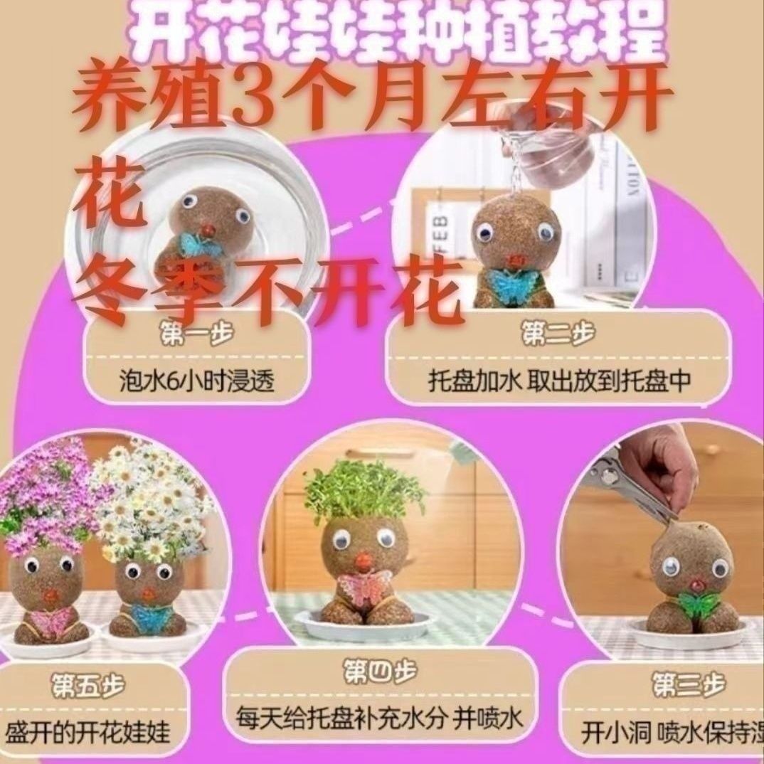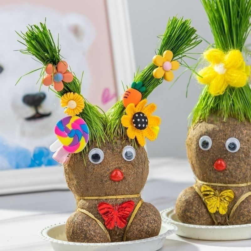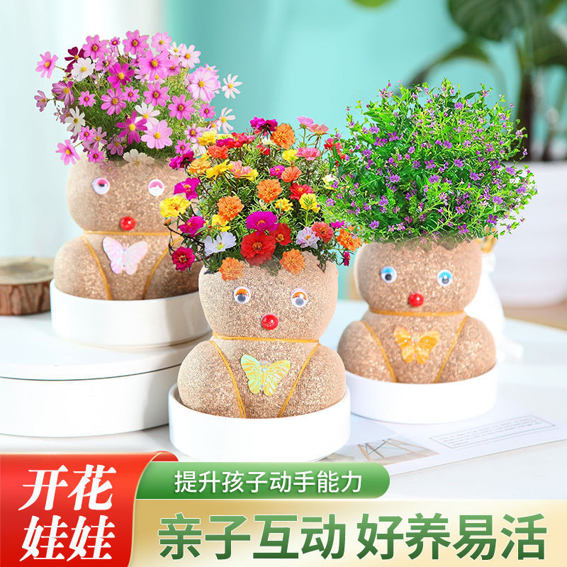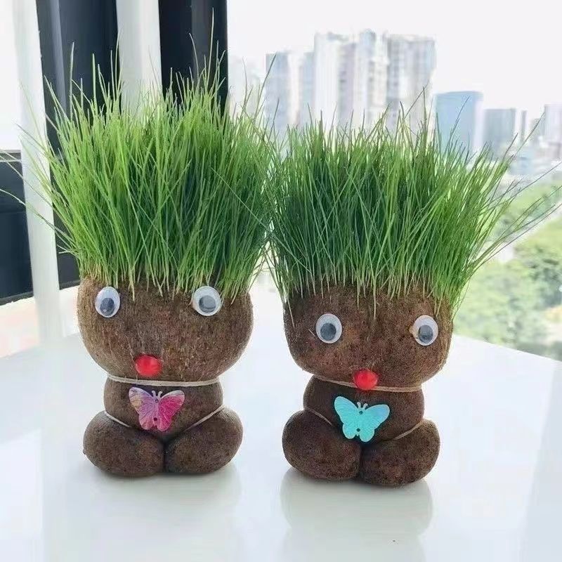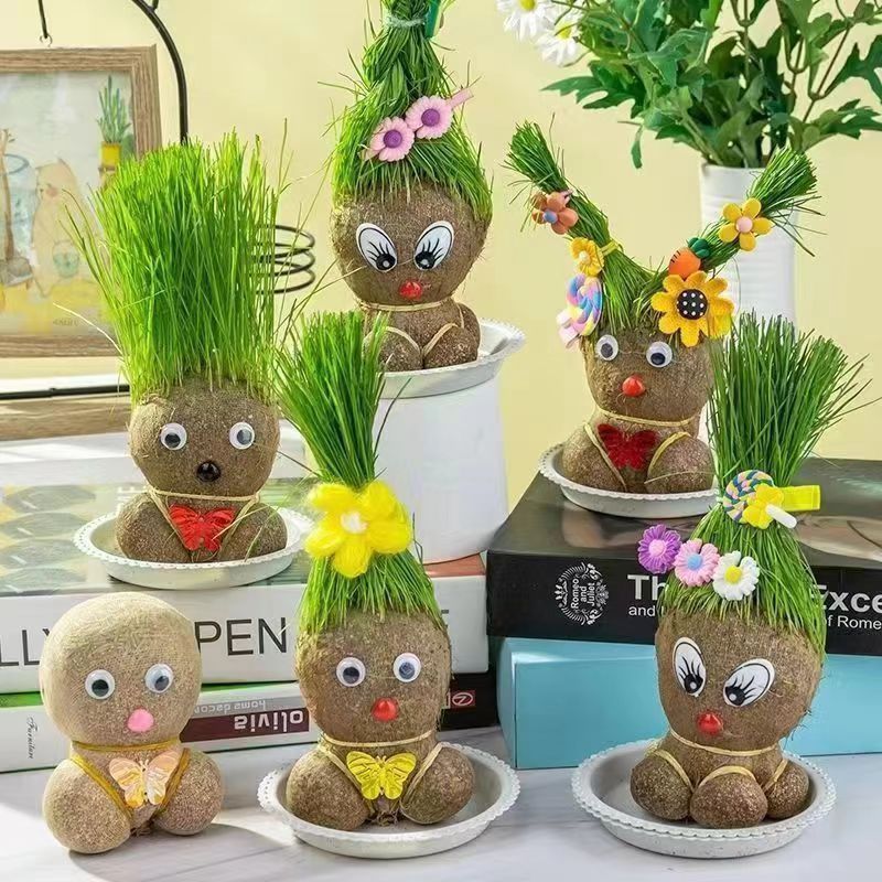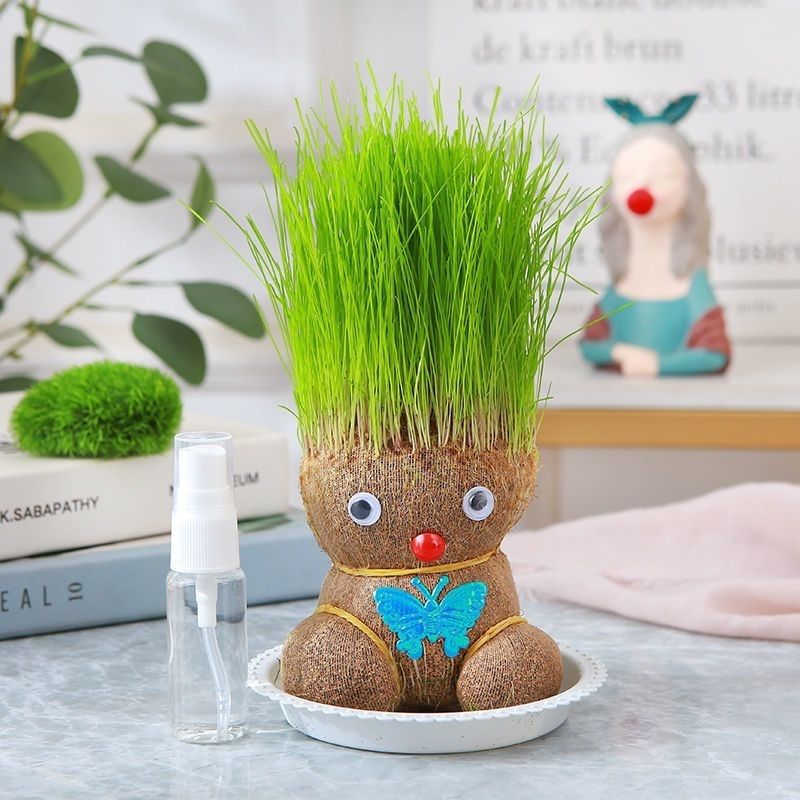 Кукла с травяной головой и травой на голове, маленькое горшечное растение, полив, длинные волосы, посадка травы для детей, цветение интернет-знаменитостей в детском саду