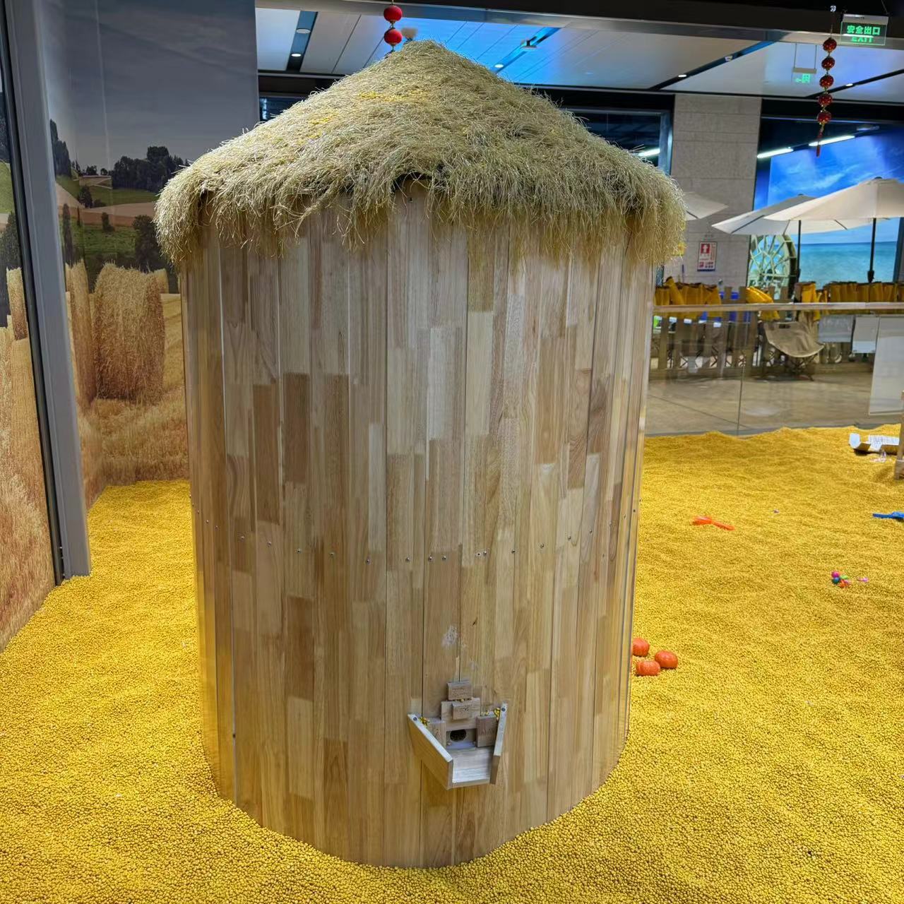 Игровая зона для детей в торговом центре «Райский склад зерна», оборудование для симуляции зернового песка, игровой комплекс.