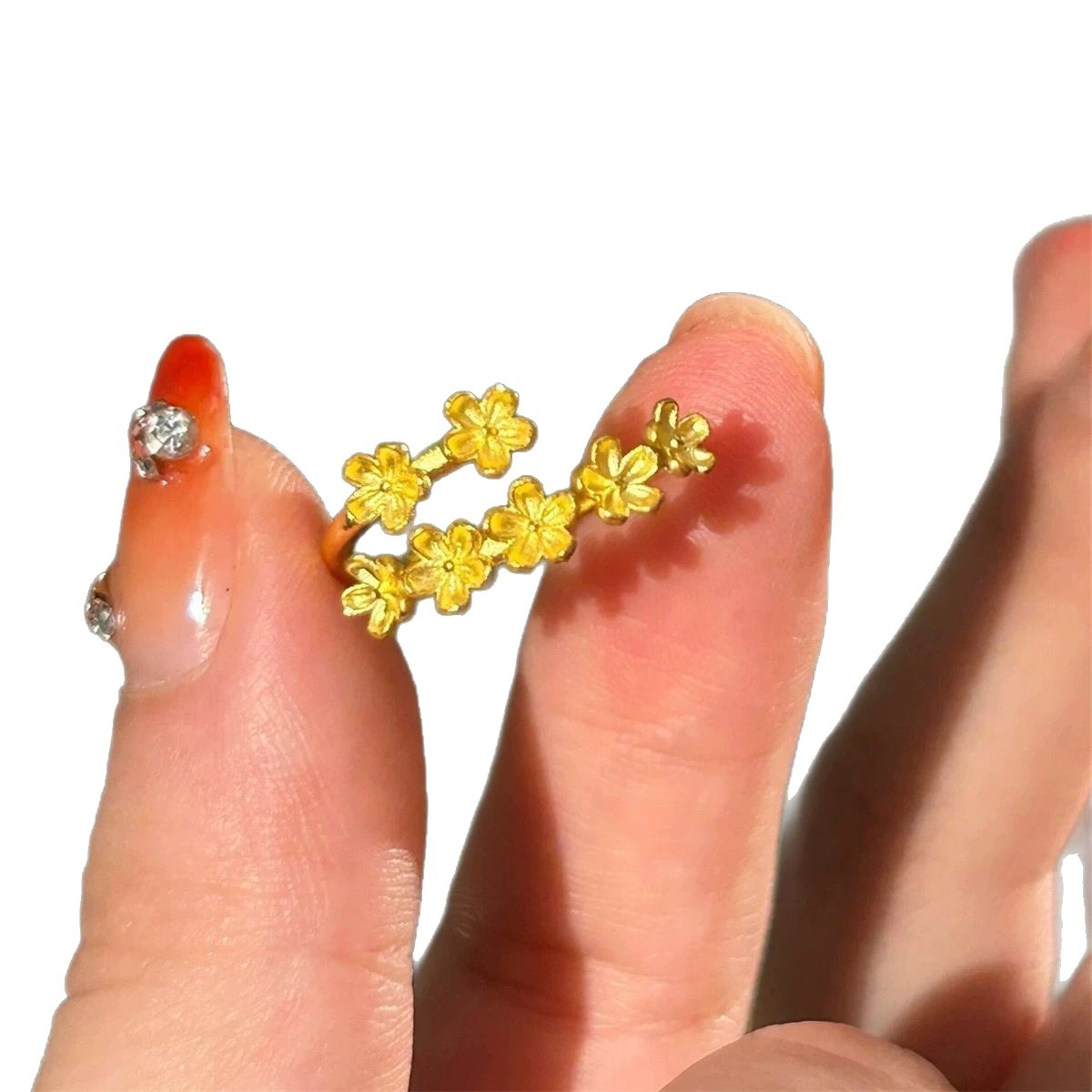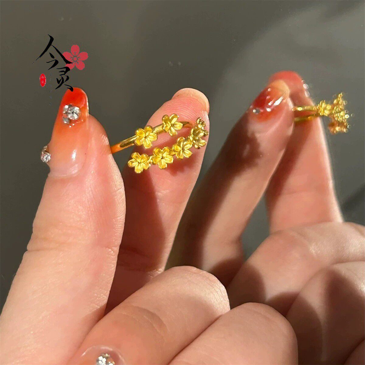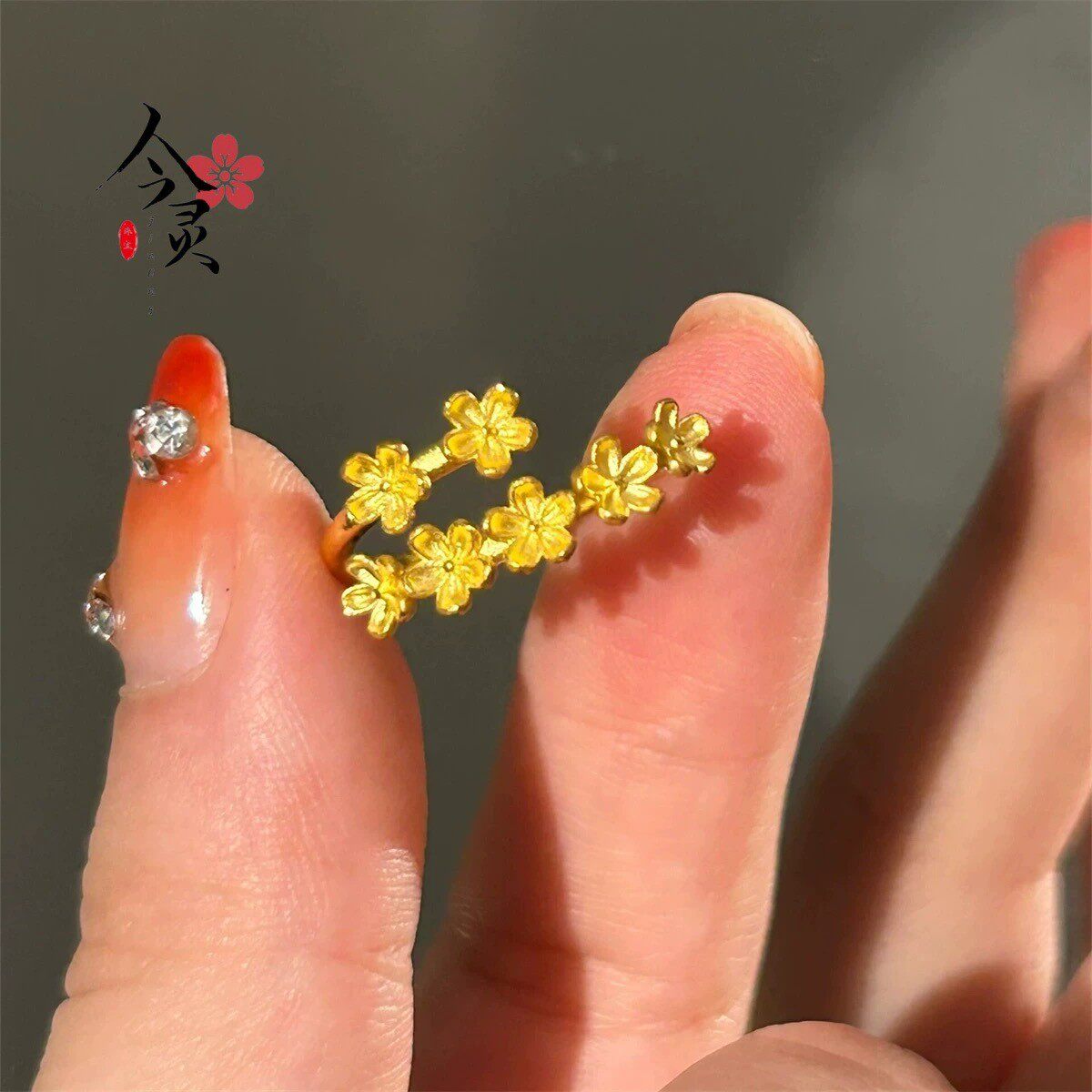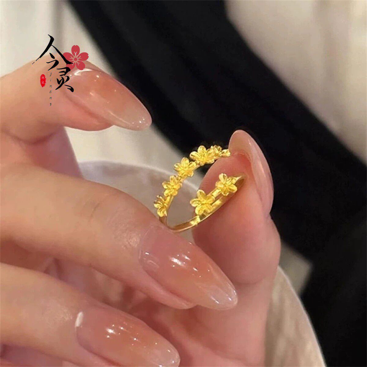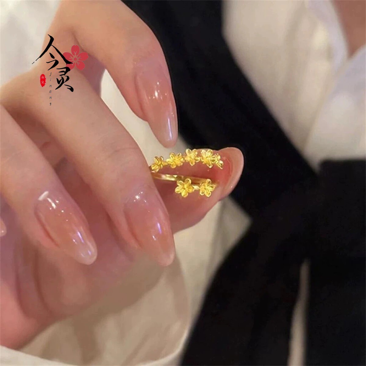Цветочный песок, золото, гравировка, золотой османтус, модный новый стиль для поездок на работу, защита от аллергии на кольца, элегантный вьетнамский стиль