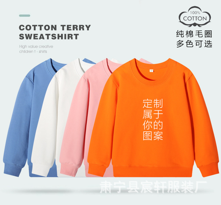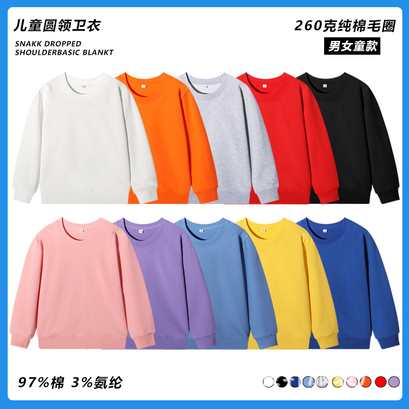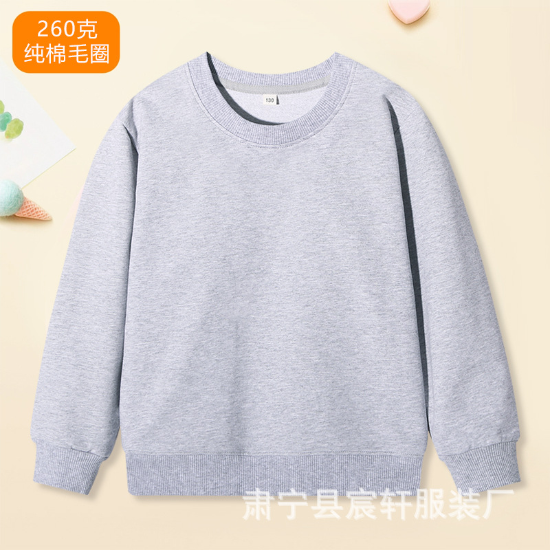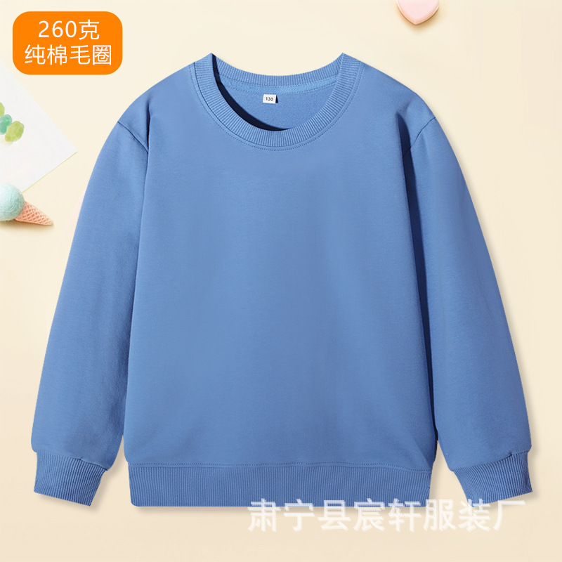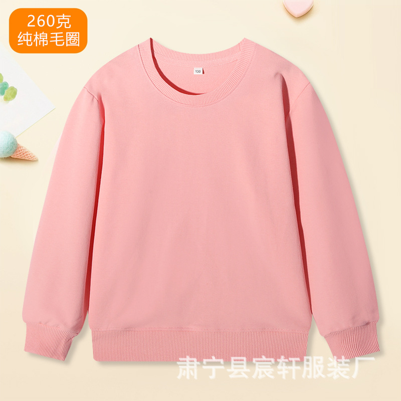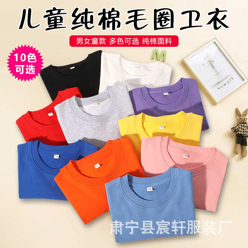 Детский однотонный свитшот, цельнохлопковый детский однотонный свитшот, топ с круглым вырезом из чистого хлопка для малышей и маленьких детей, весенне-осенняя детская базовая рубашка.