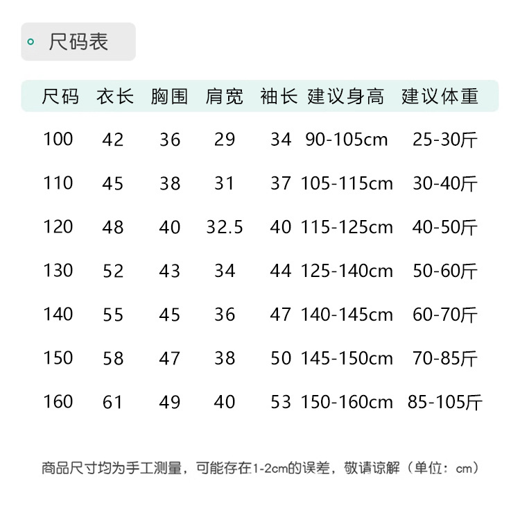 100cm; 110cm; 120cm; 130cm; 140cm; 150cm; 160cm
