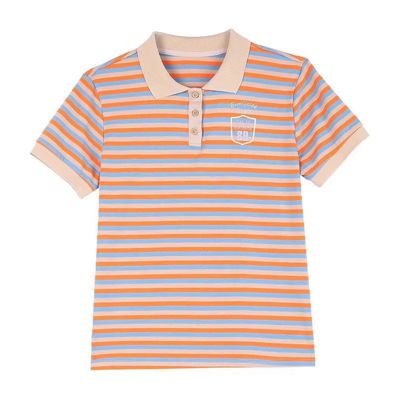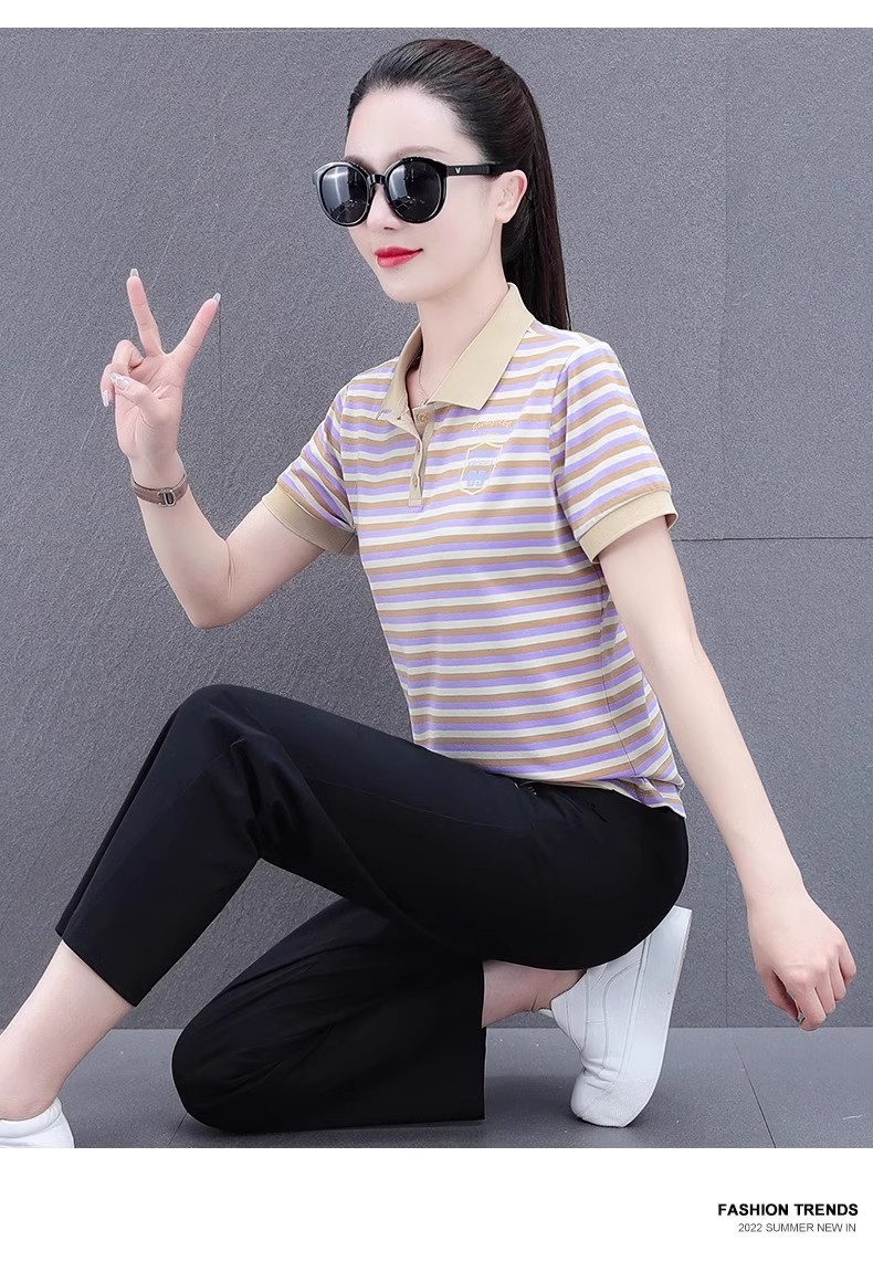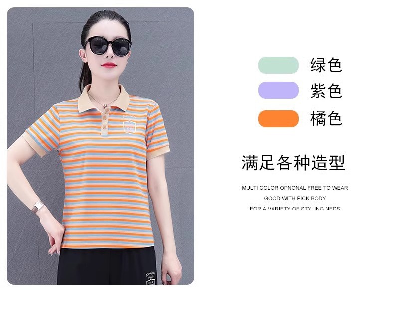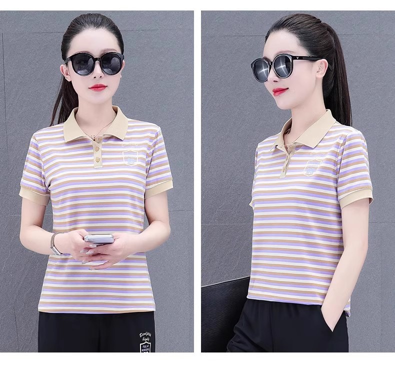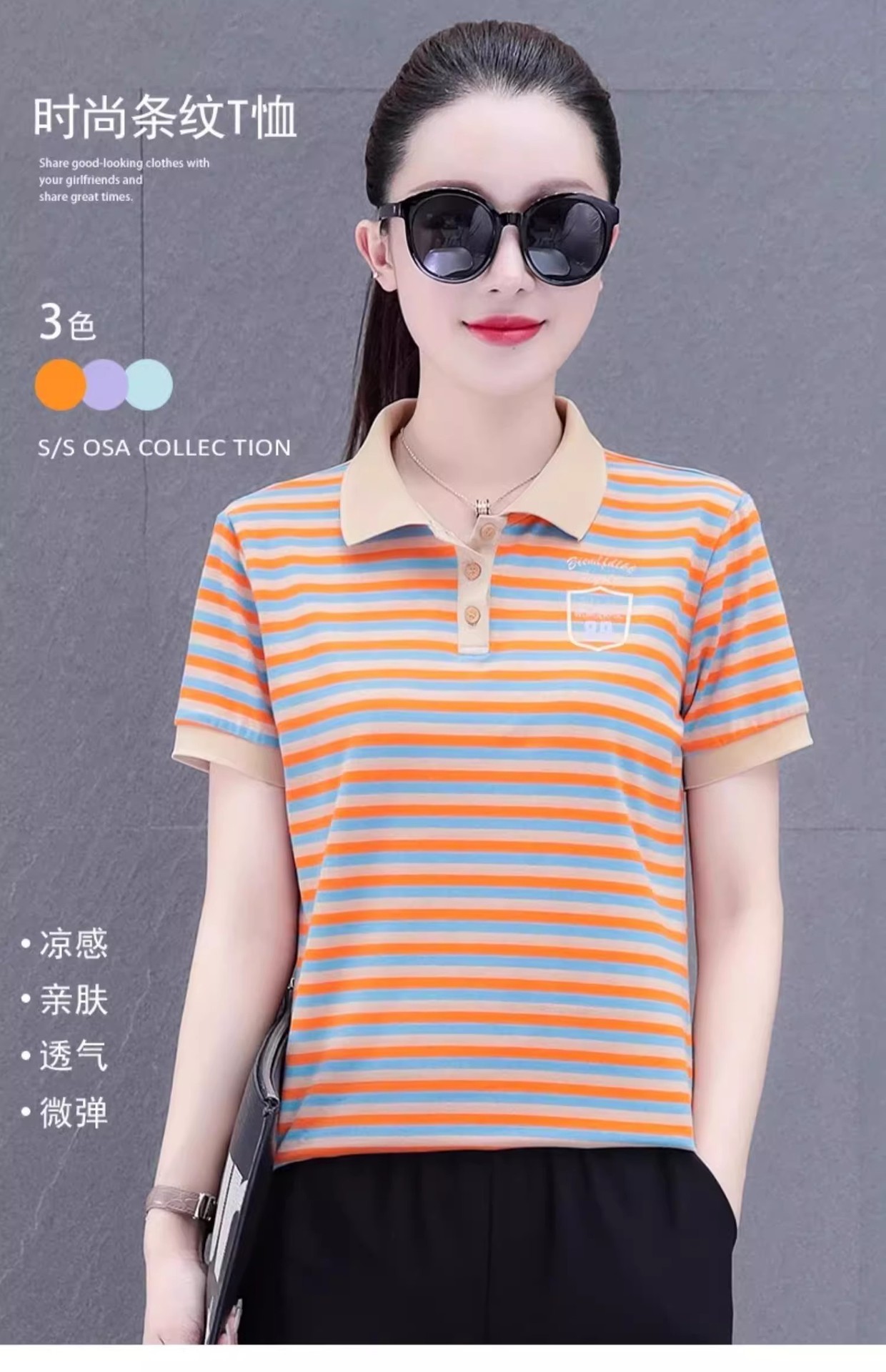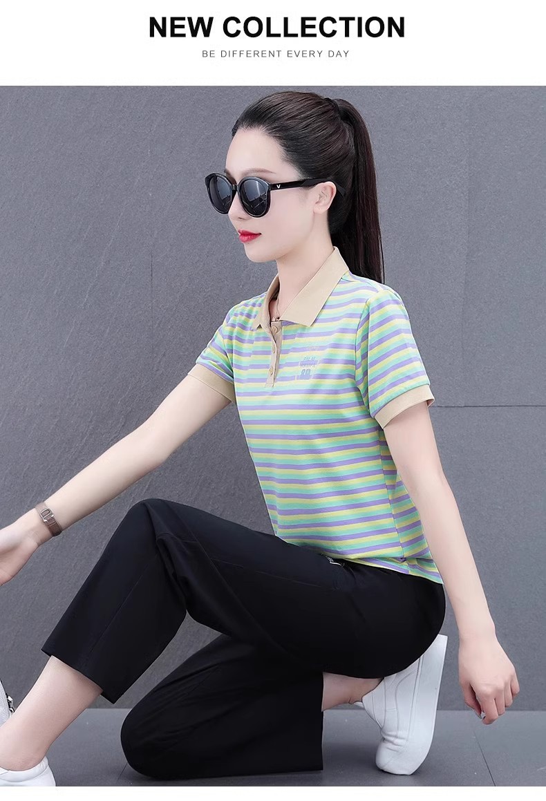 Летняя женская футболка с коротким рукавом, поло в полоску, повседневный свободный облегающий топ с воротником и короткими рукавами