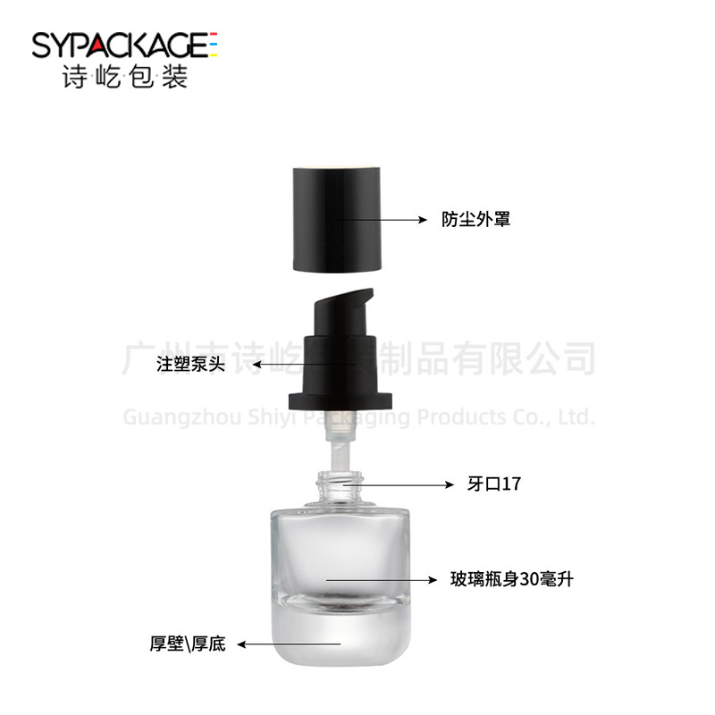 Оптовая продажа от производителя: новая стеклянная бутылка для жидкой основы 30 мл с круглым дном, толстым дном, дозатором-помпой, портативная бутылка для дозирования.
