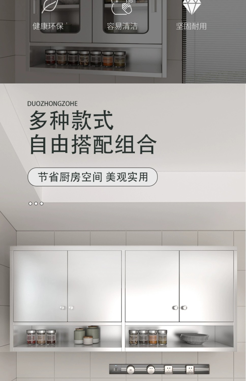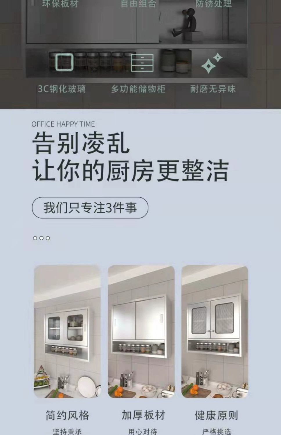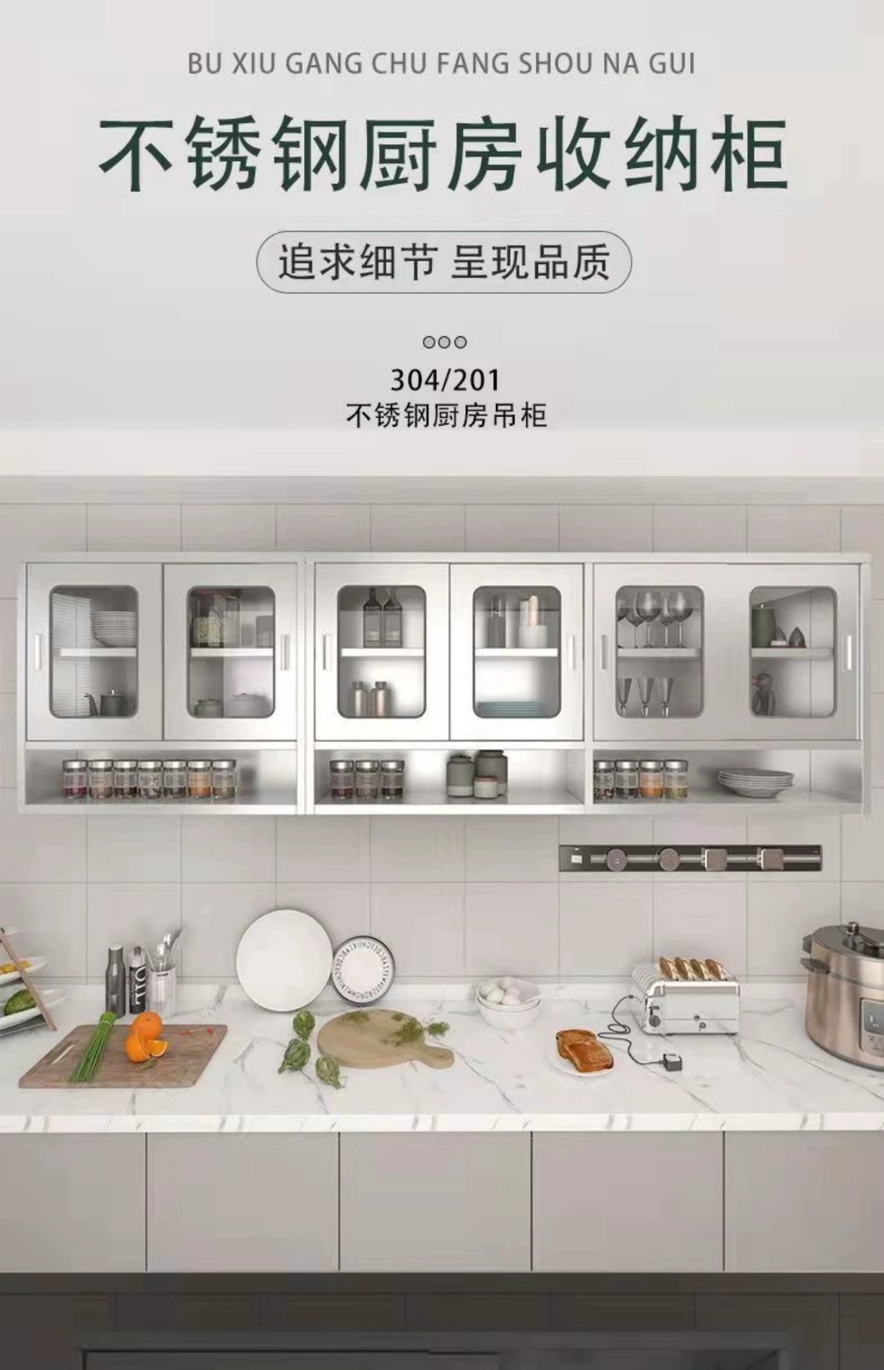 Утолщенный кухонный настенный шкаф из нержавеющей стали 304 с матовой отделкой, кухонный настенный шкаф для хранения.