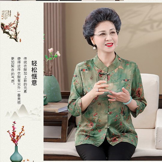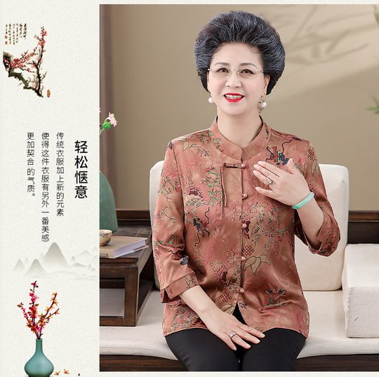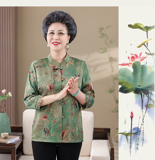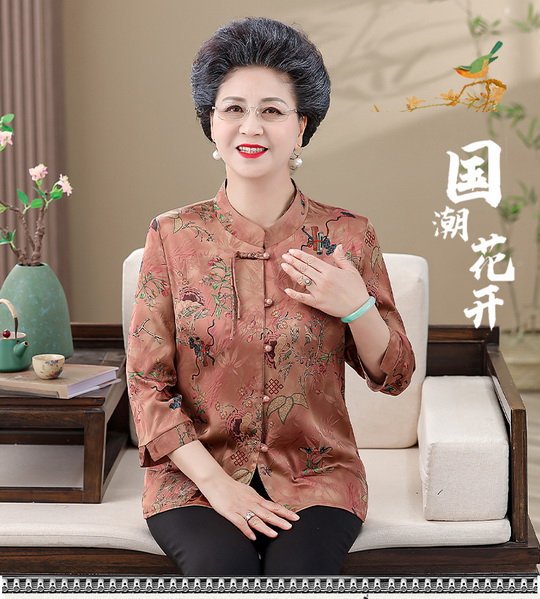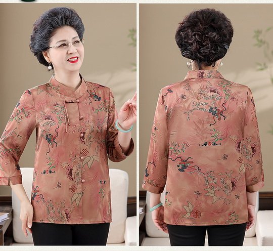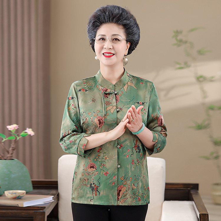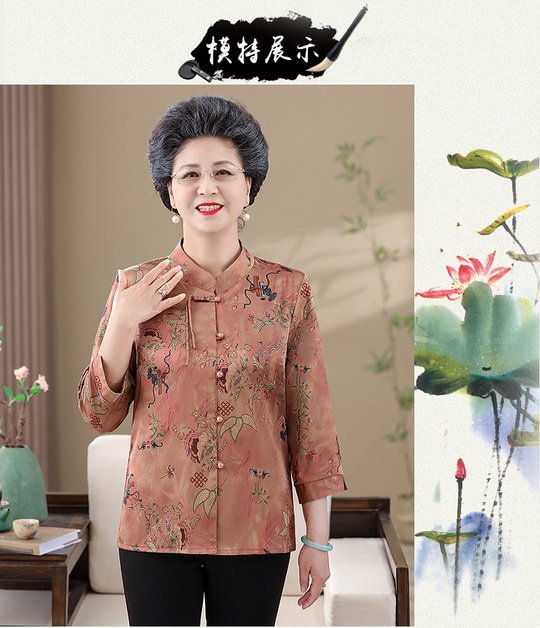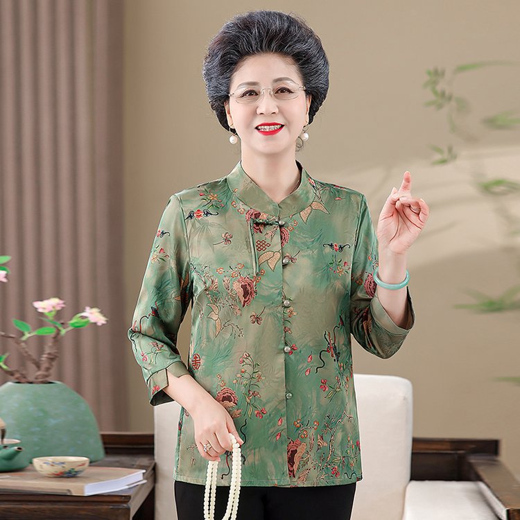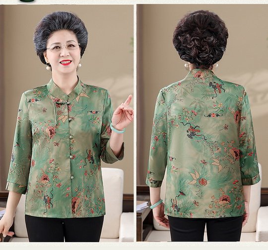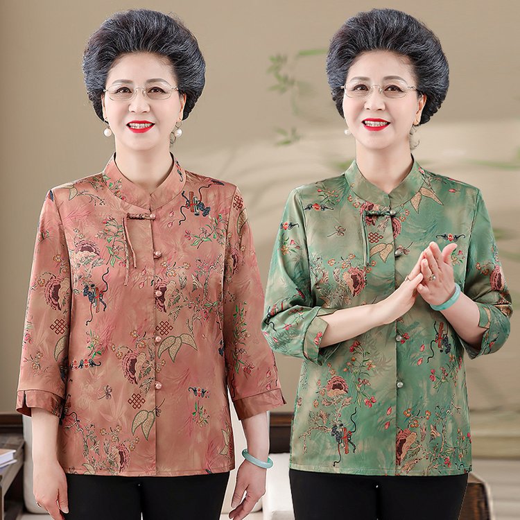 Весенняя рубашка бабушки с рукавом три четверти для 70-летних мам среднего и пожилого возраста, модная весенне-осенняя рубашка для женщин для старух