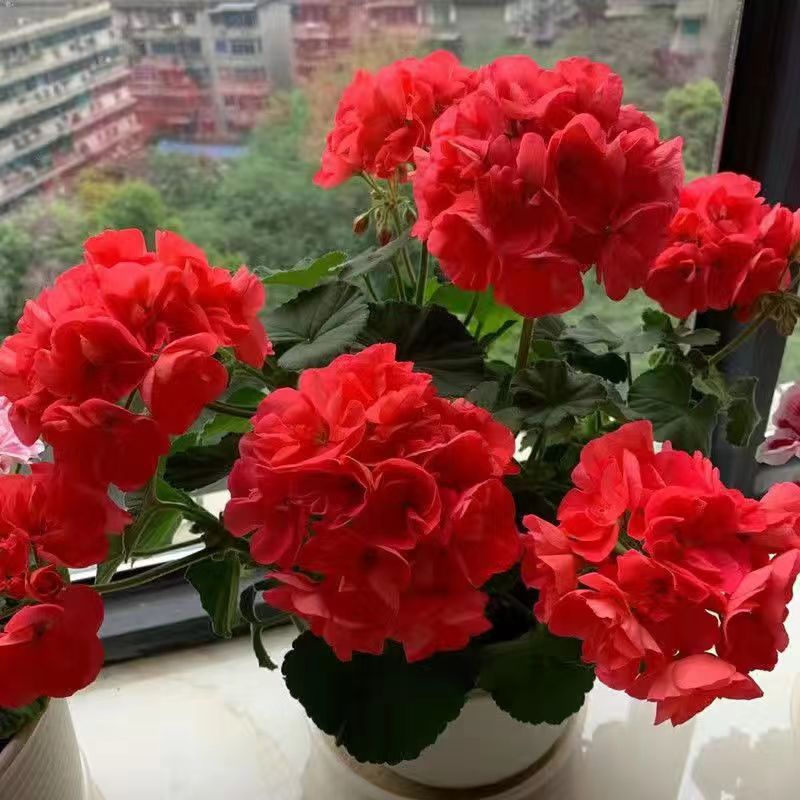 Саженцы цветов в горшках с двуцветковой гераницей цветут круглый год во дворе, на внутренних и наружных балконах, в легко выращиваемых цветочных горшках.
