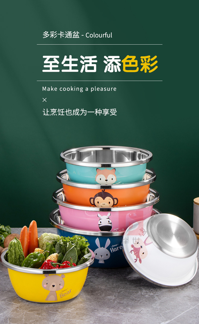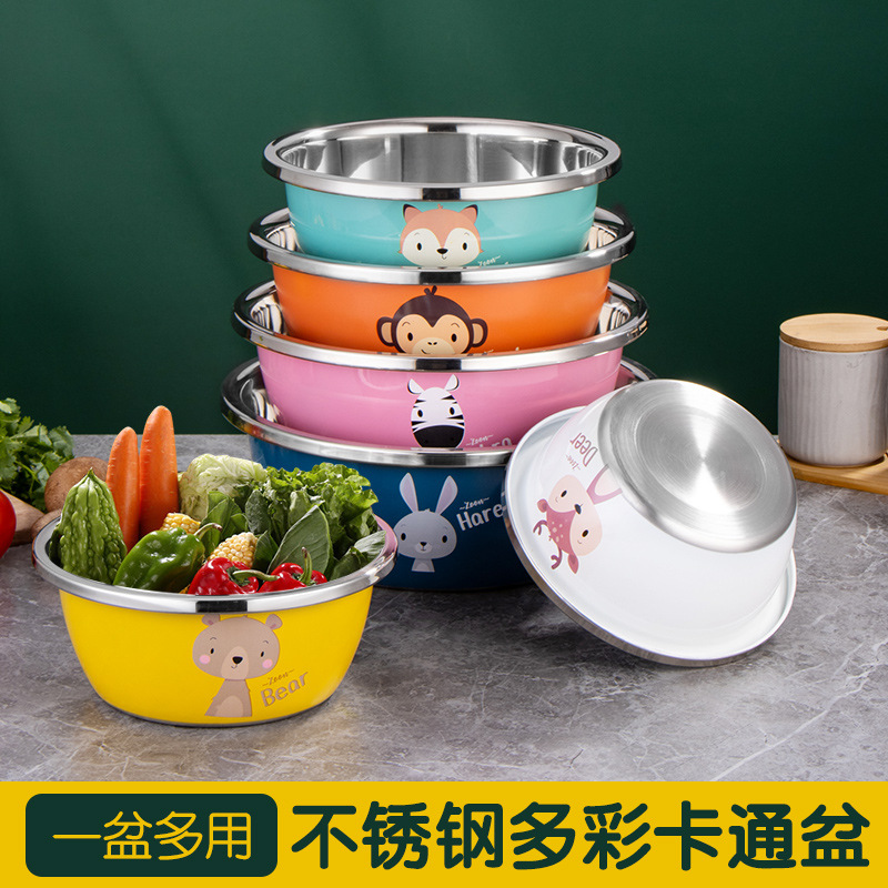 Утолщенная многофункциональная раковина из нержавеющей стали с мультяшным дизайном, бытовая цветная раковина из нержавеющей стали с мультяшным рисунком, кухонная раковина для мытья овощей, раковина для выпечки и замешивания теста.