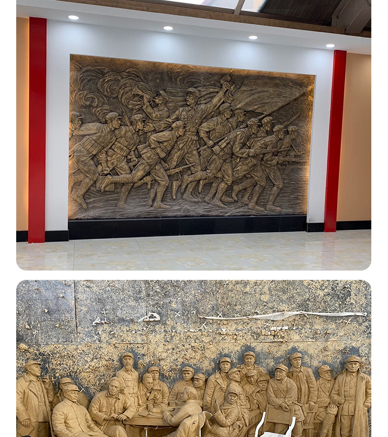 Рельефная скульптура из стекловолокна, имитация бронзы, литая бронзовая фигура, кованая бронза, резьба по песчанику, фоновая стена для выставочного зала в стиле красной культуры кампуса