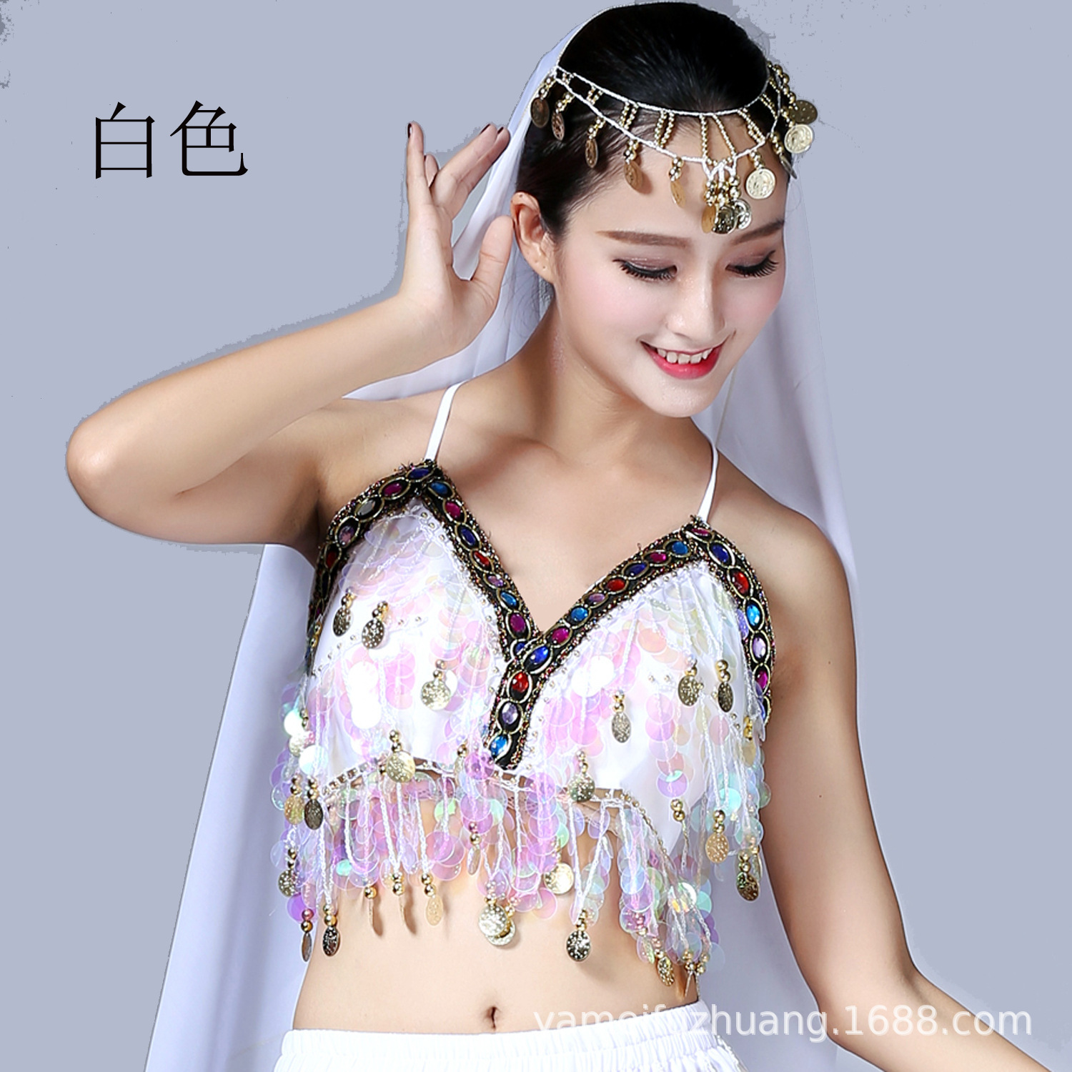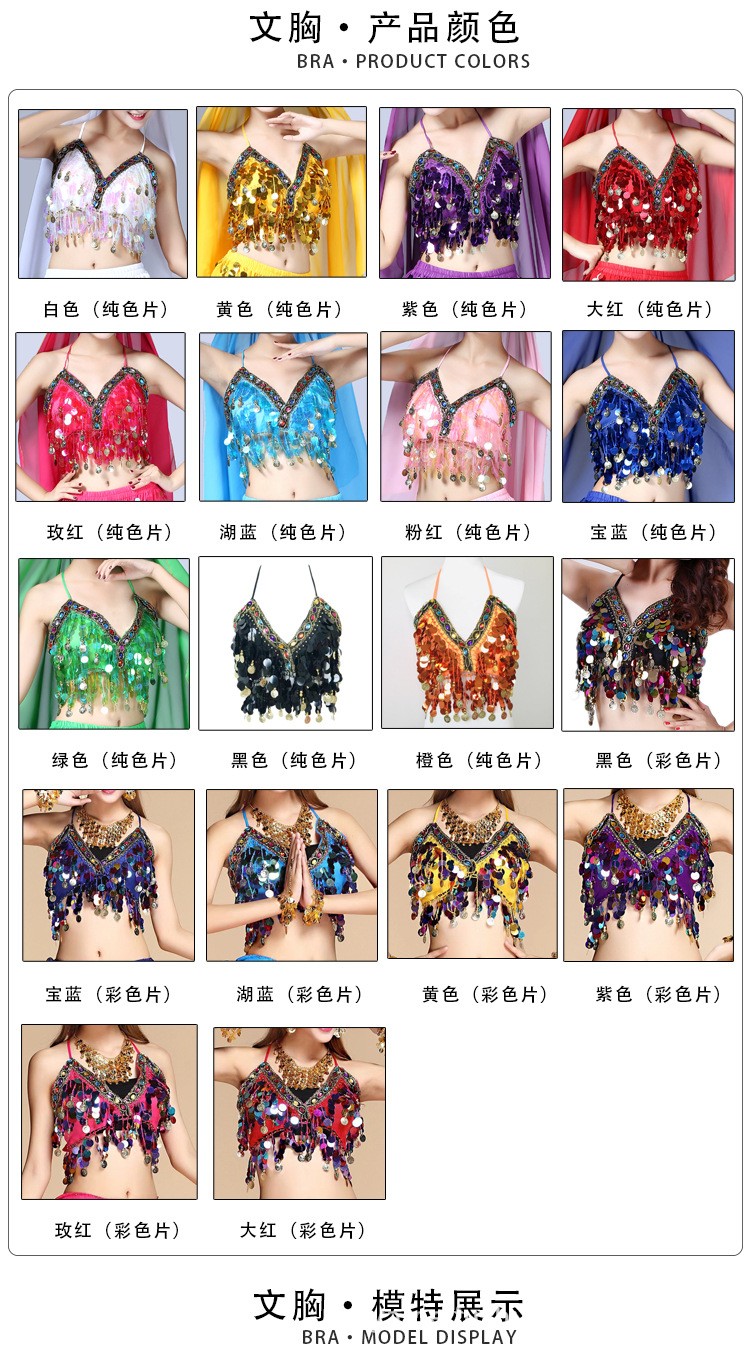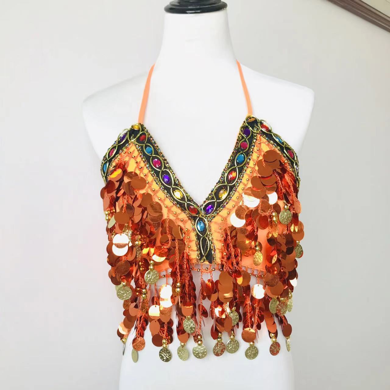Европейский и американский бюстгальтер с пайетками, красочный наряд для танца живота, бюстгальтер на шнуровке, танцевальная одежда для выступлений на сцене, топ с кисточками.