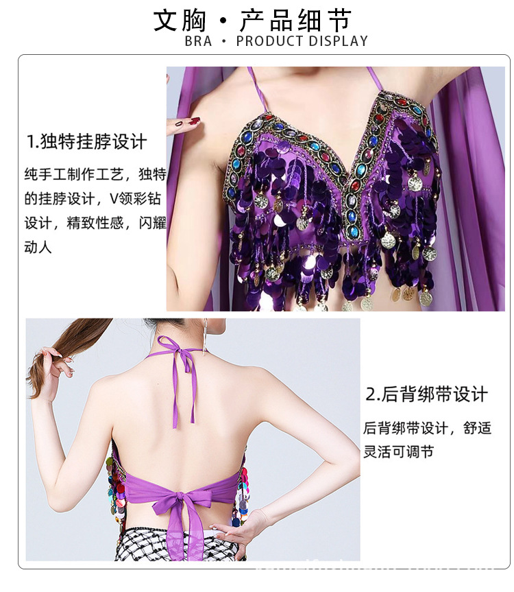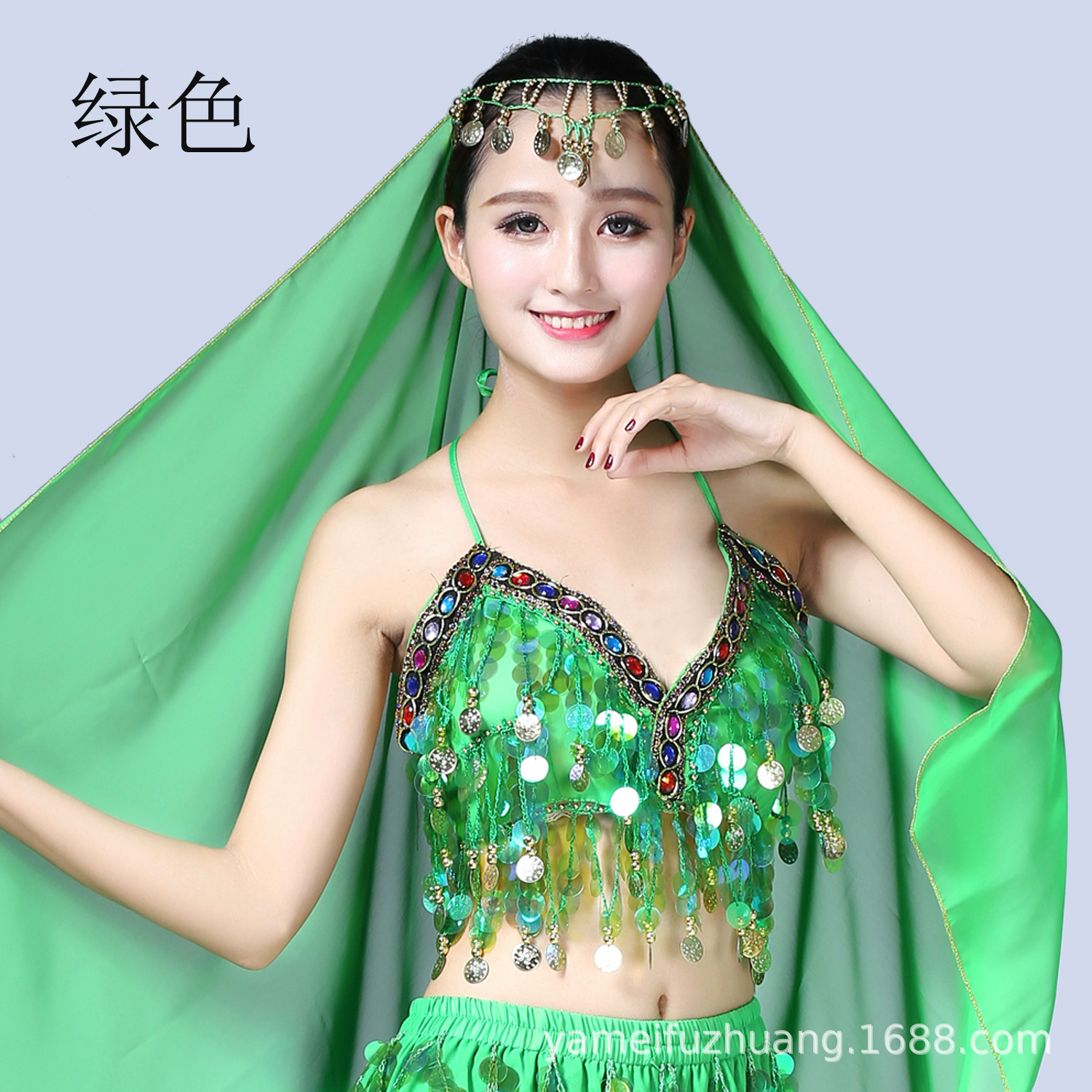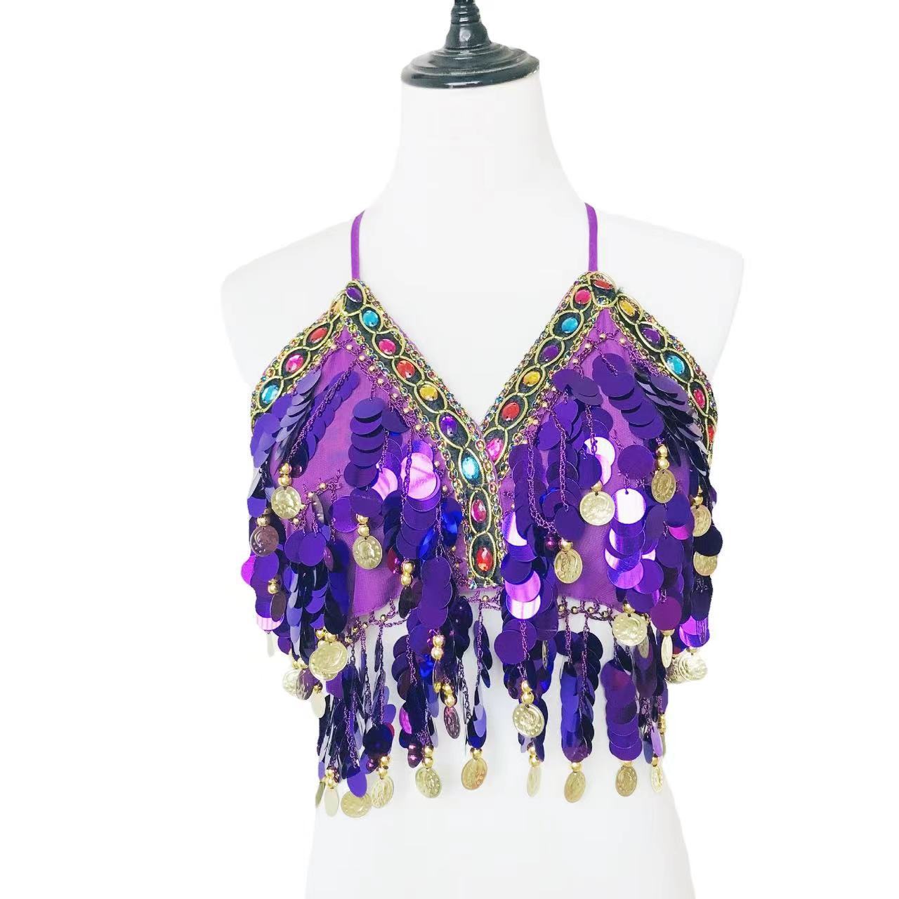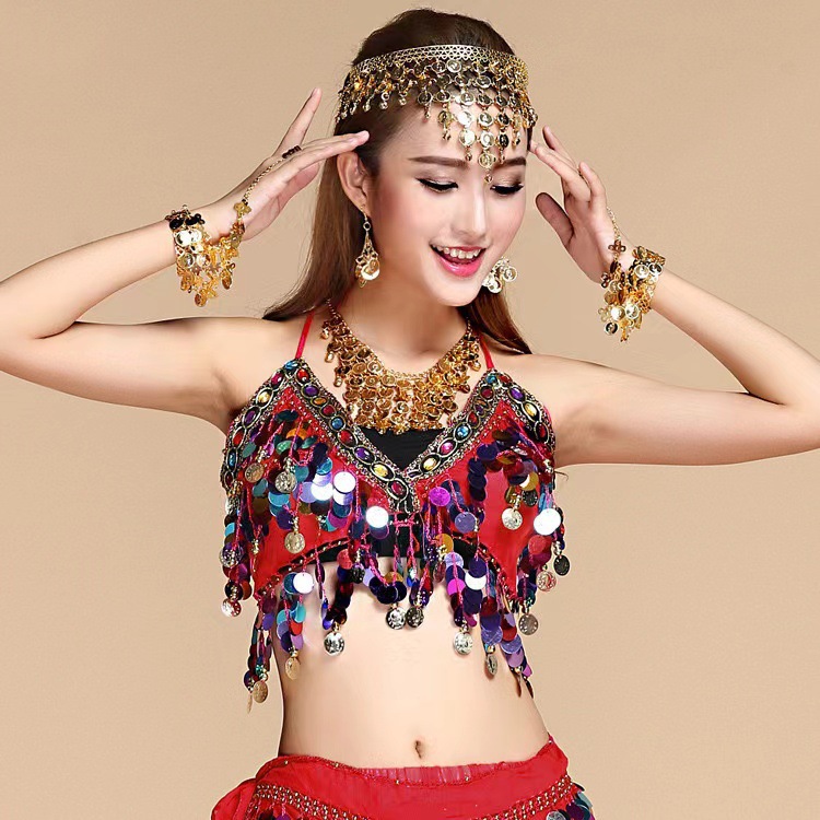 Европейский и американский бюстгальтер с пайетками, красочный наряд для танца живота, бюстгальтер на шнуровке, танцевальная одежда для выступлений на сцене, топ с кисточками.