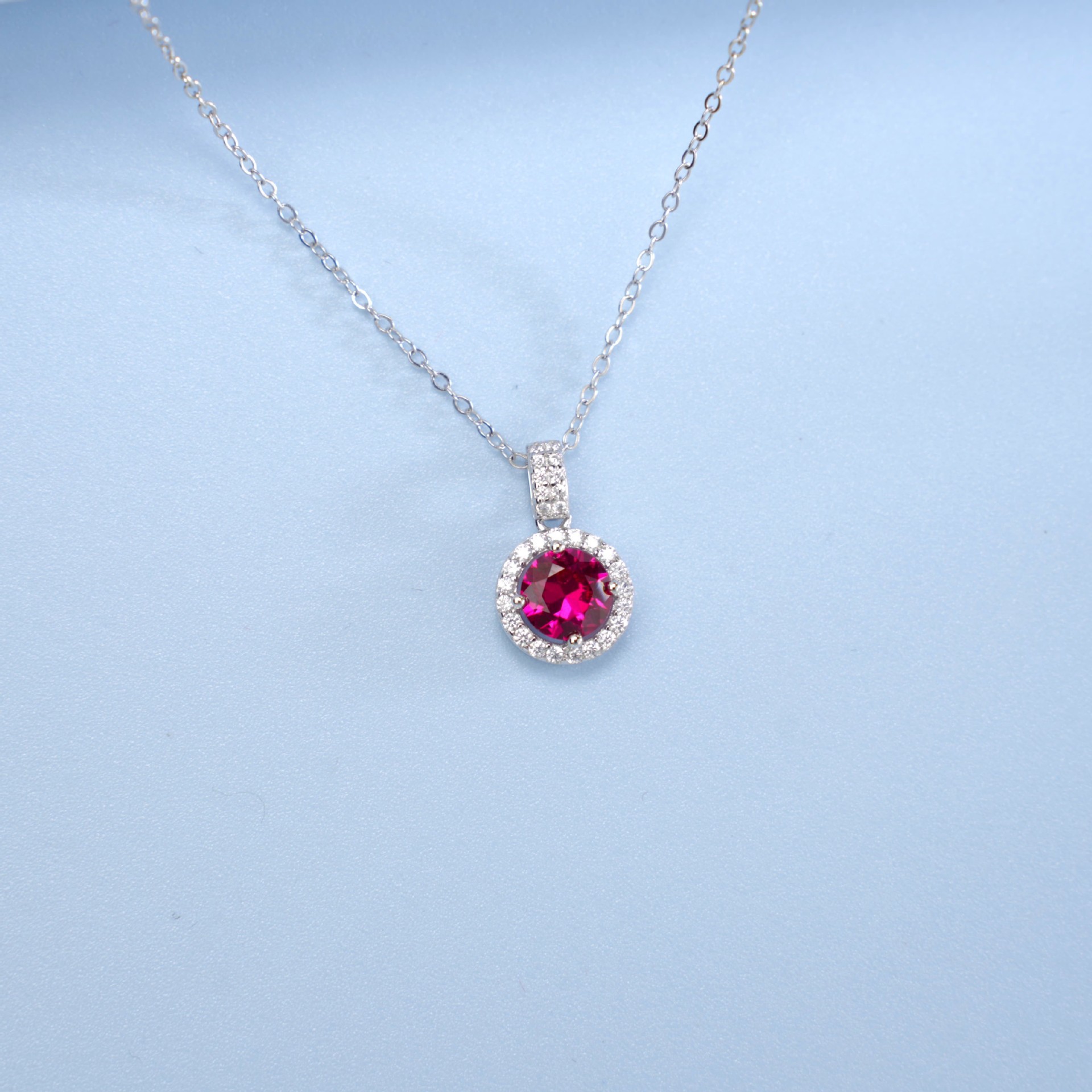 Ожерелье из серебра 925 пробы с культивированным рубином; Колье с круглым кулоном на четырехзубчатом держателе