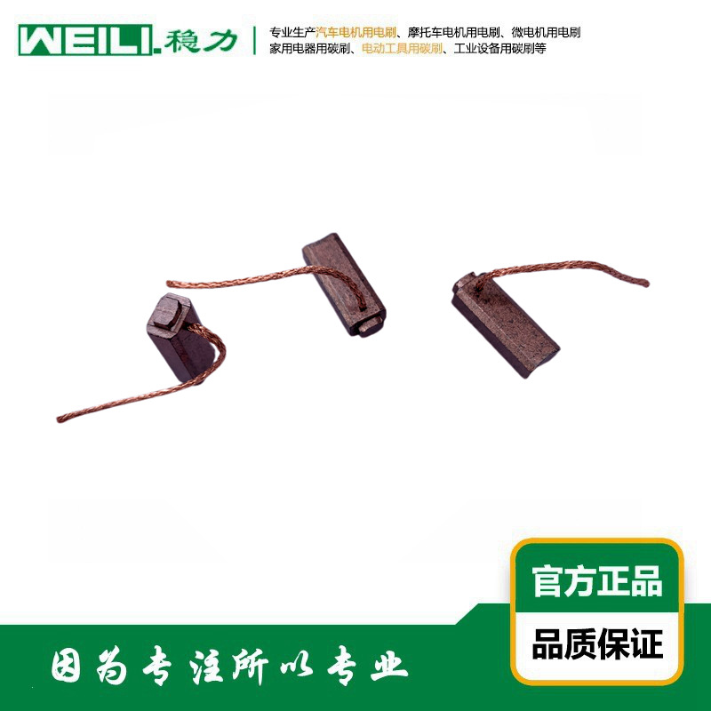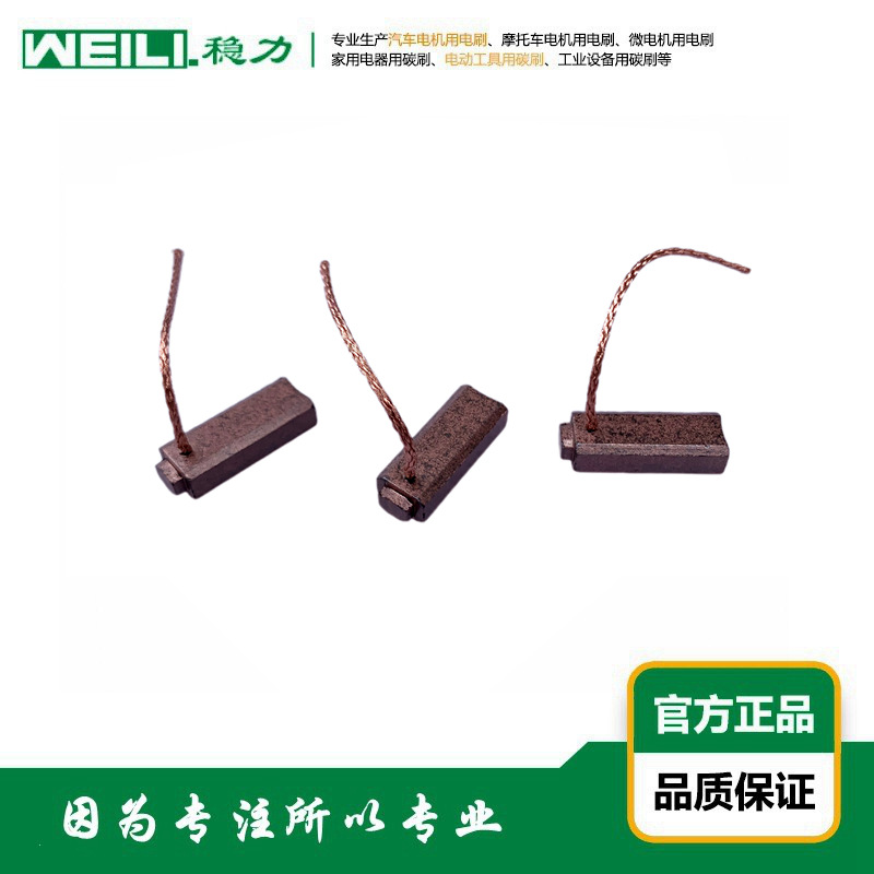 稳力碳制品是一家集研发、生产、销售和服务于一体的专业碳制品厂家。主要产品有:汽摩配电机用碳刷、微电机用碳刷、汽轮/水轮发电机用碳刷、起重/电动机用碳刷、铁路机车牵引电机用碳刷、工业智能机械设备用碳刷等。产品广泛应用到电力、冶金、化学、煤炭、轻纺、食品、运输交通、航空等行业。