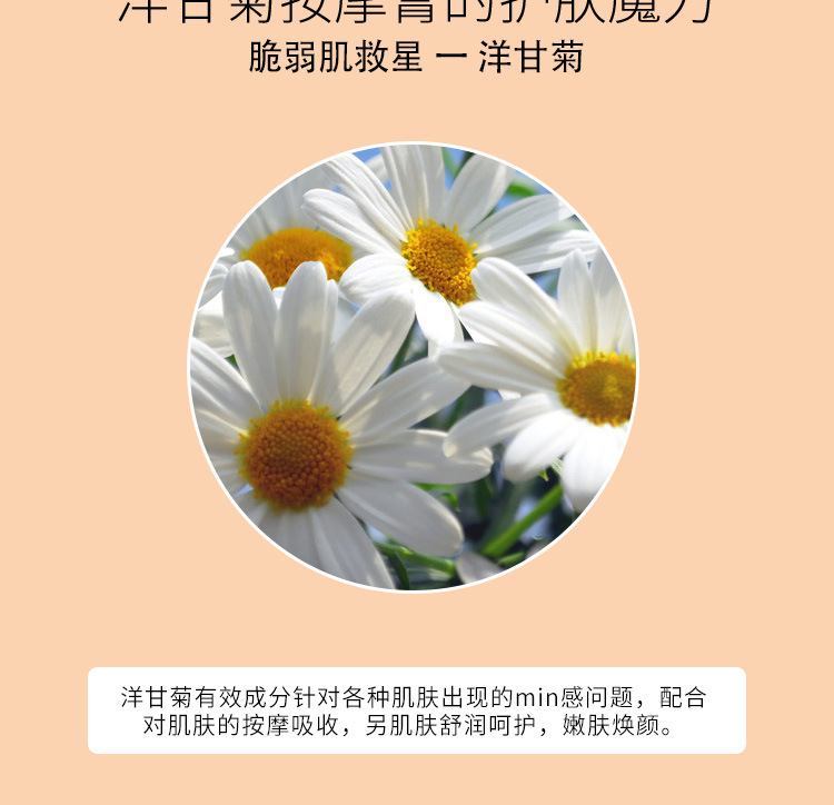 本链接产品改成更为滋润,细腻、更容易推开的洋甘菊舒护按摩膏,