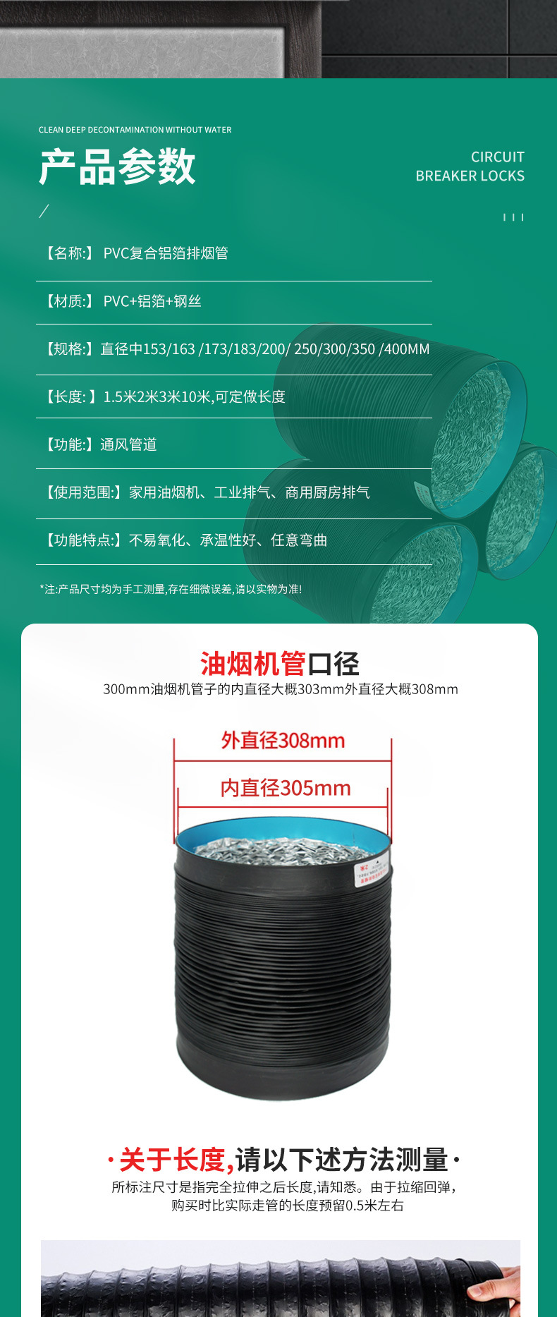 Выхлопная труба из ПВХ, утолщенная маслостойкая вытяжка, выхлопная труба, общественная вытяжка, труба, кухонная вытяжка, выхлопная труба