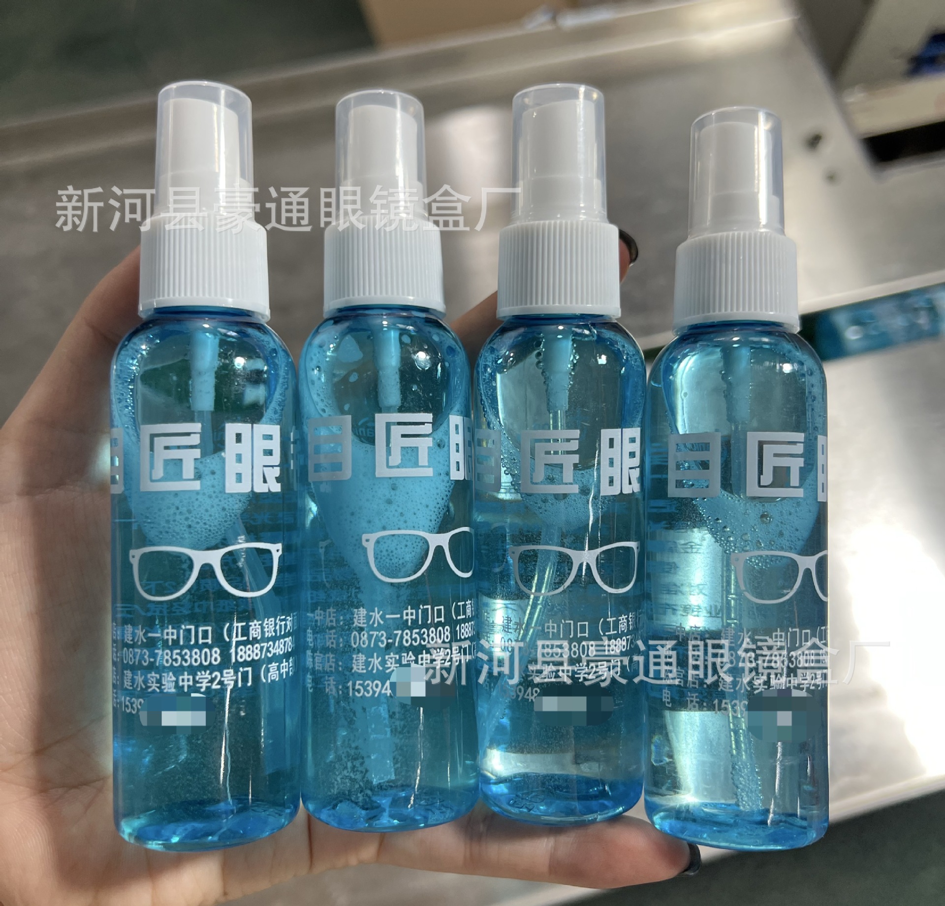 Оптовая продажа готового раствора для чистки очков, очиститель для очков, средство для ухода за линзами, прозрачный уходящий за собой воздух раствор, можно нанести на него логотип, жидкость для очков.