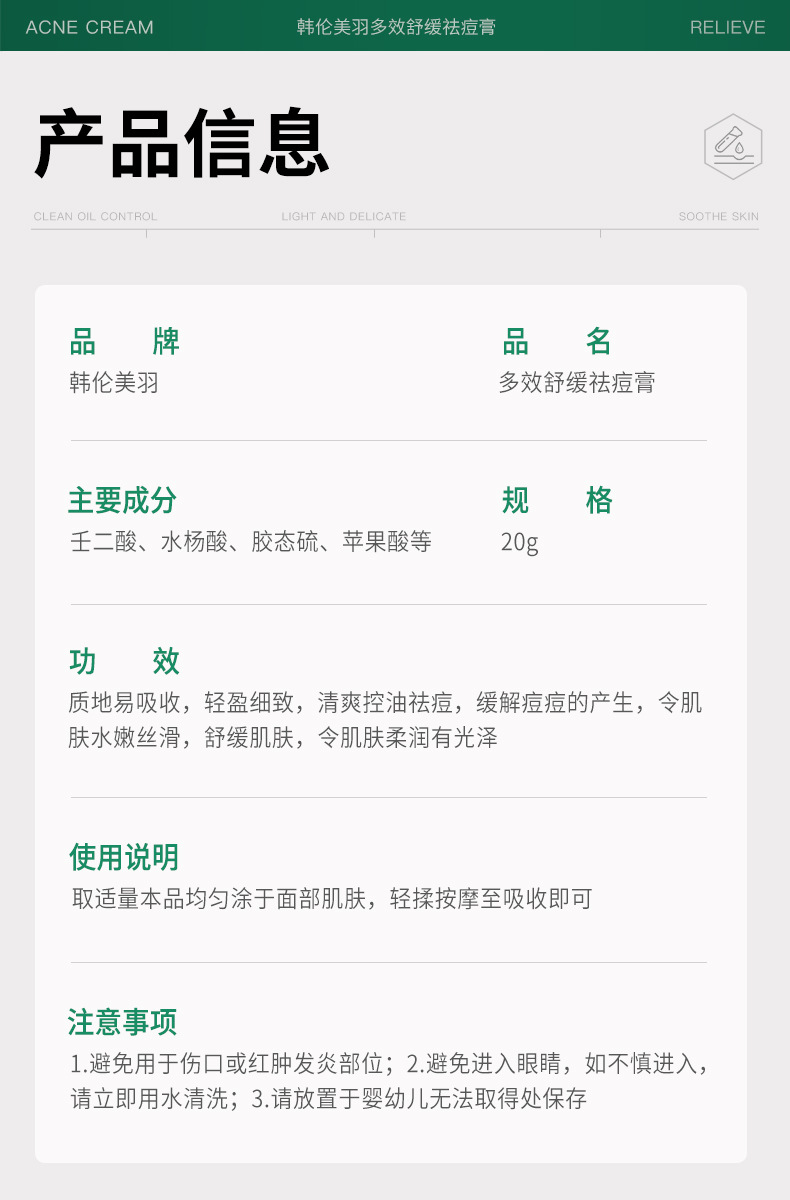 Многофункциональный успокаивающий крем от прыщей 20г [очищение и контроль жирности]