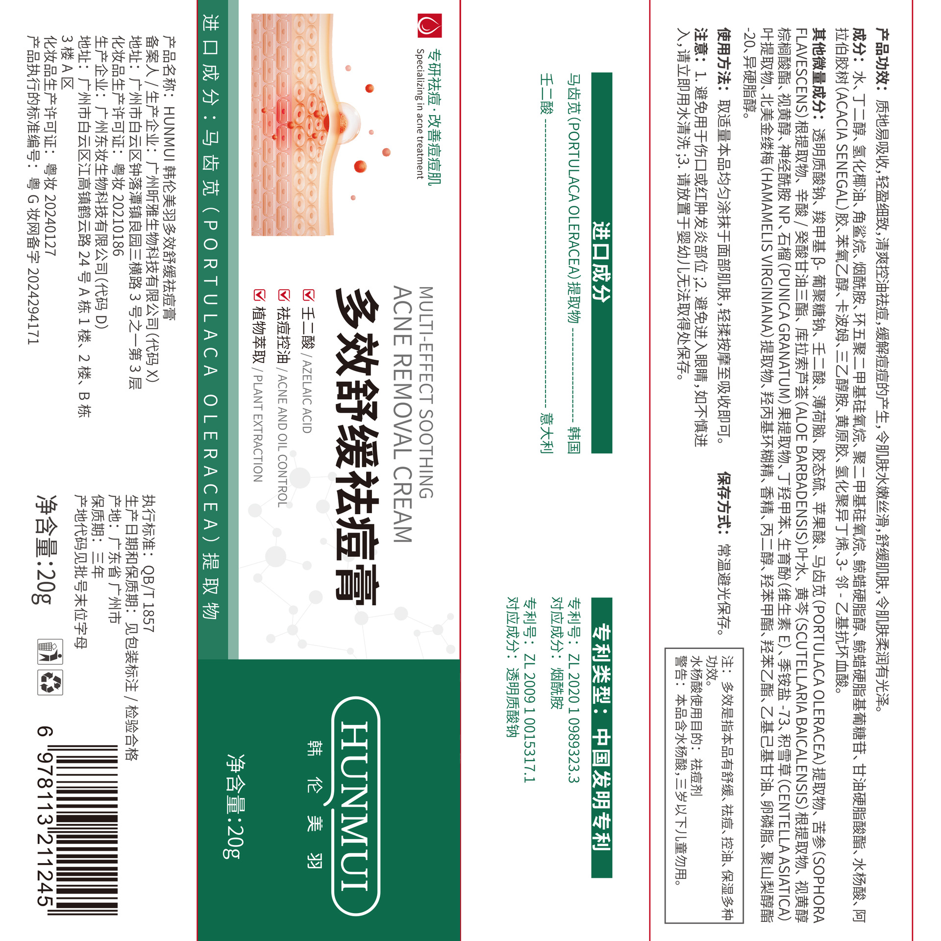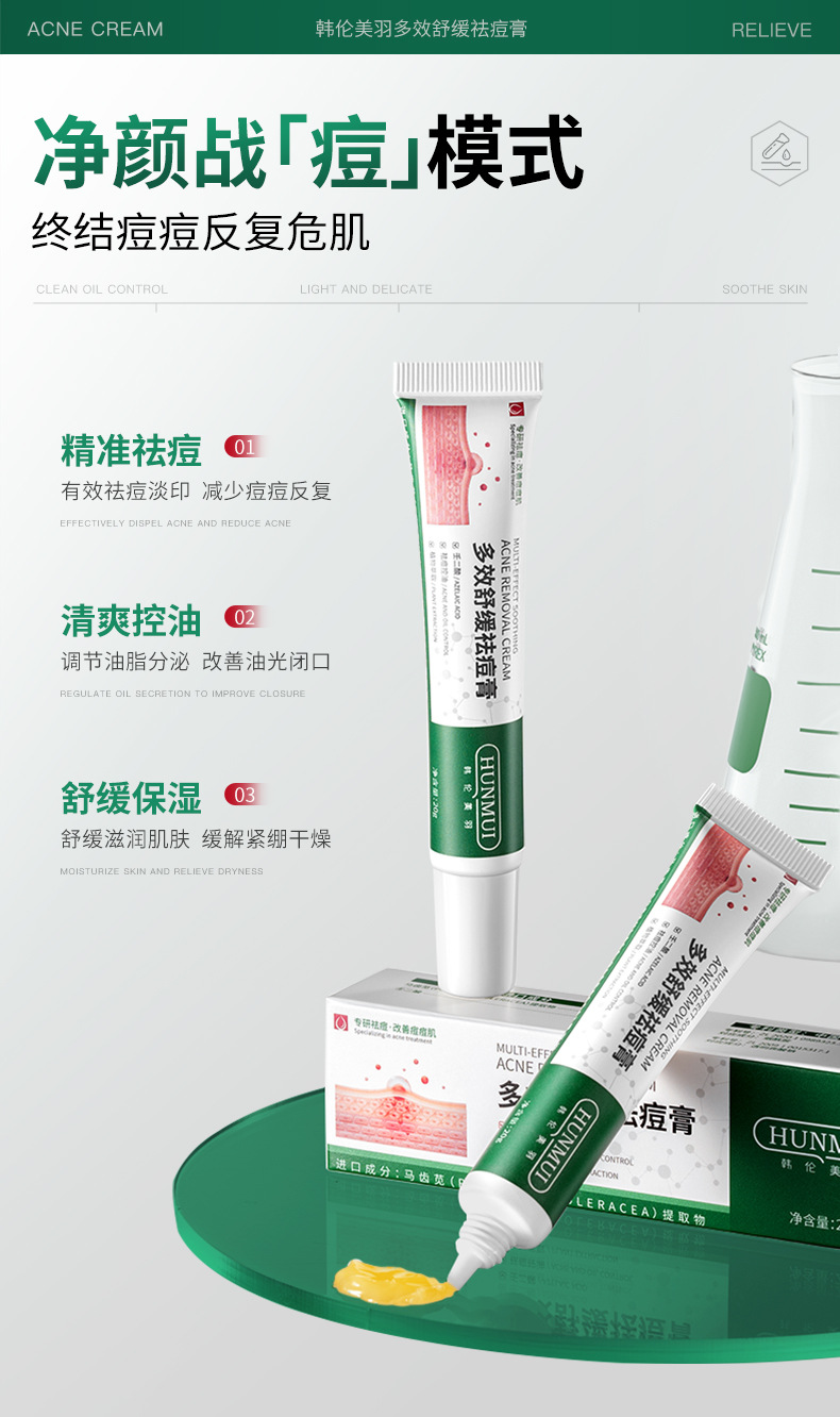 Многофункциональный успокаивающий крем от прыщей Han Lun Meiyu уменьшает следы от прыщей, прыщи, которые долго держатся, восстановление прыщей, ямки от прыщей, крем от прыщей для студентов