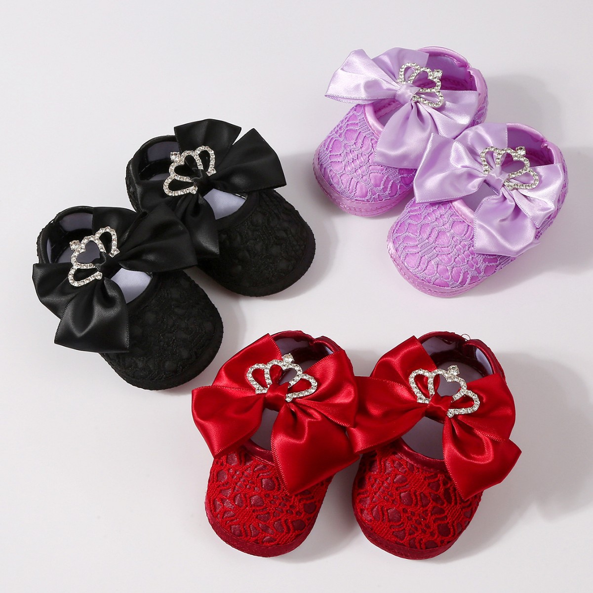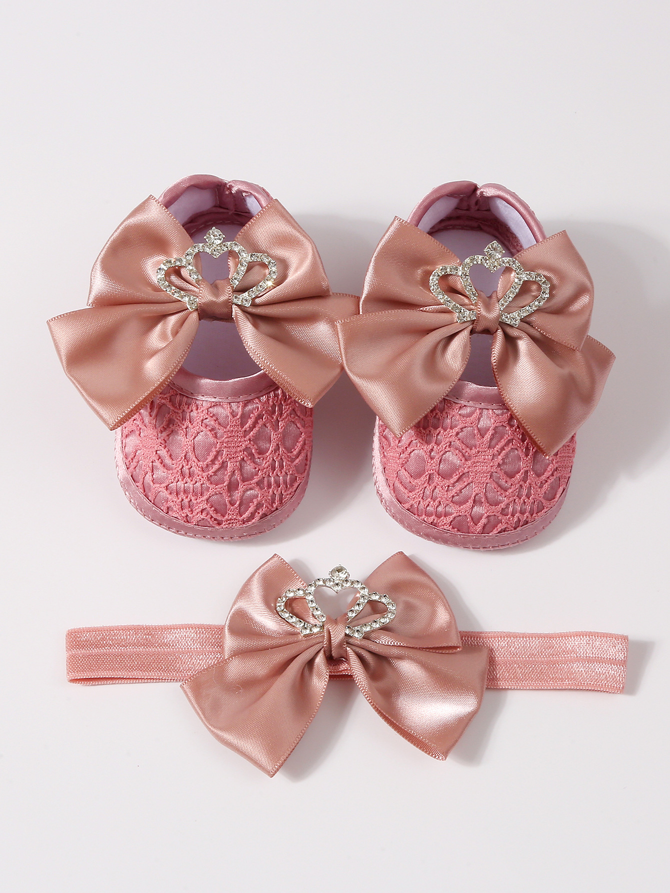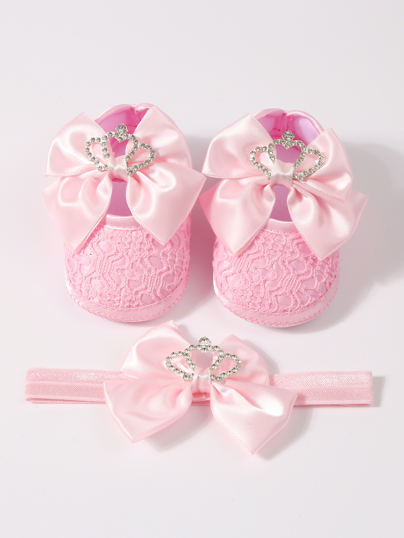 Туфли-балетки с кружевной короной и бантом для малышей, для прогулок, для детей 0-1 года, с мягкой нескользящей подошвой, праздничные туфли на сто дней