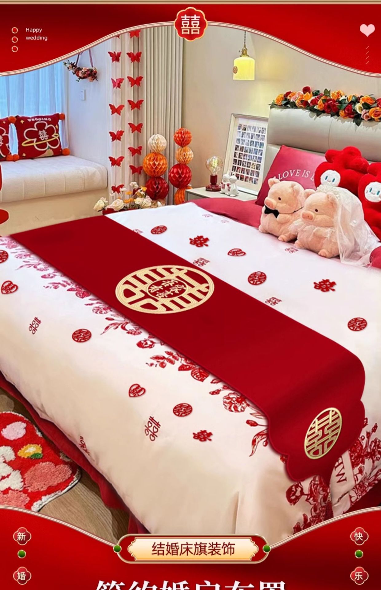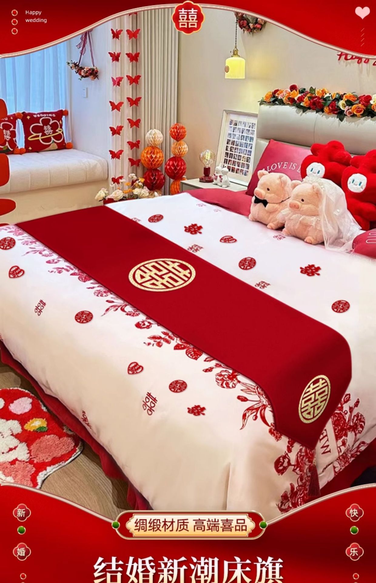 Красный флаг кровати, свадебная комната, расположение постельного белья, полотенце, постельное белье для новобрачных
